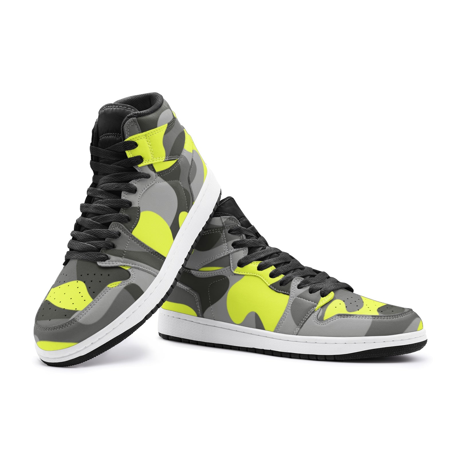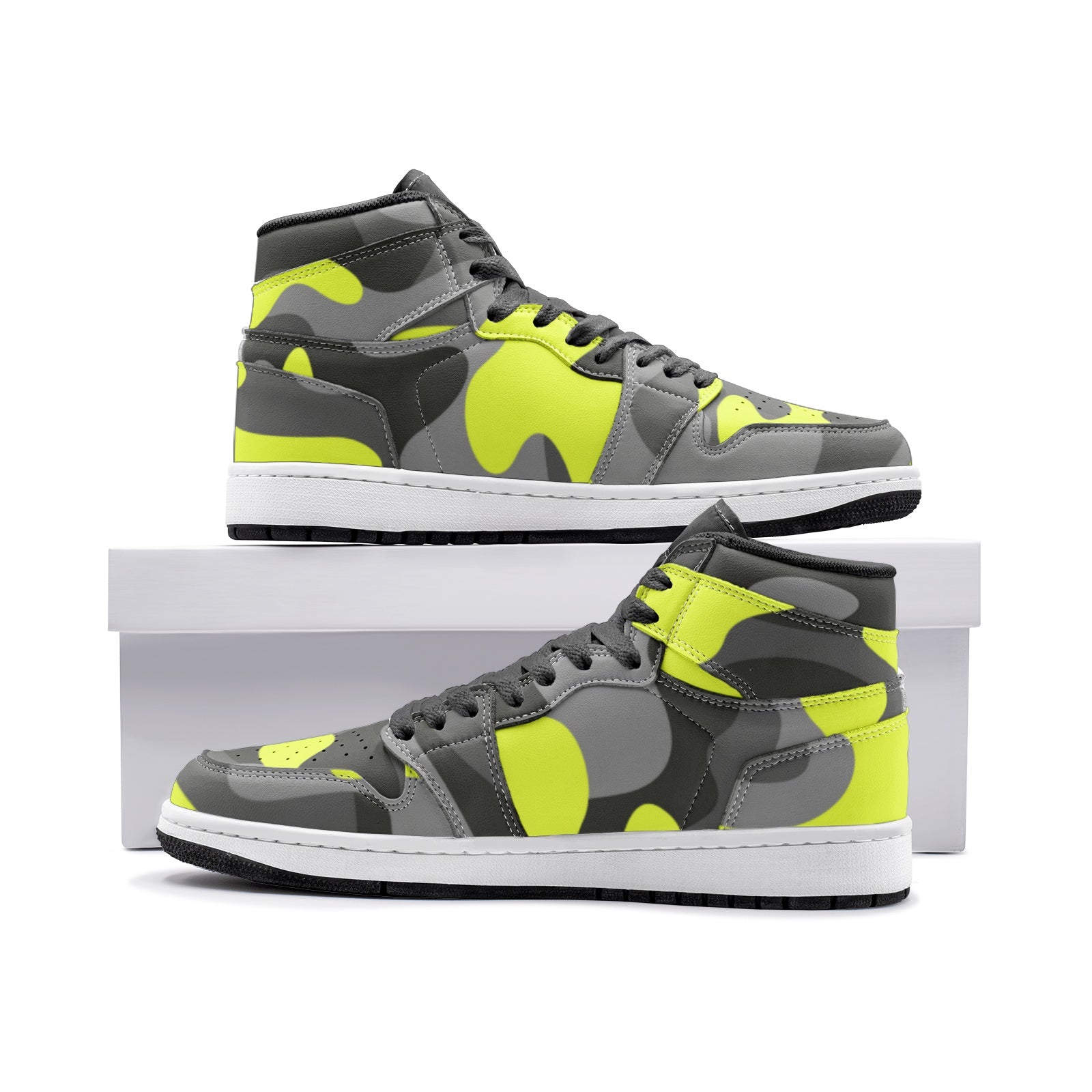 Camo Sneakers AJ1 Style | High-Top | Yellow, Black & Gray Camouflage