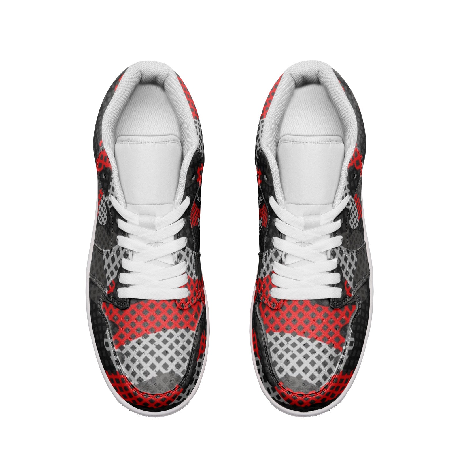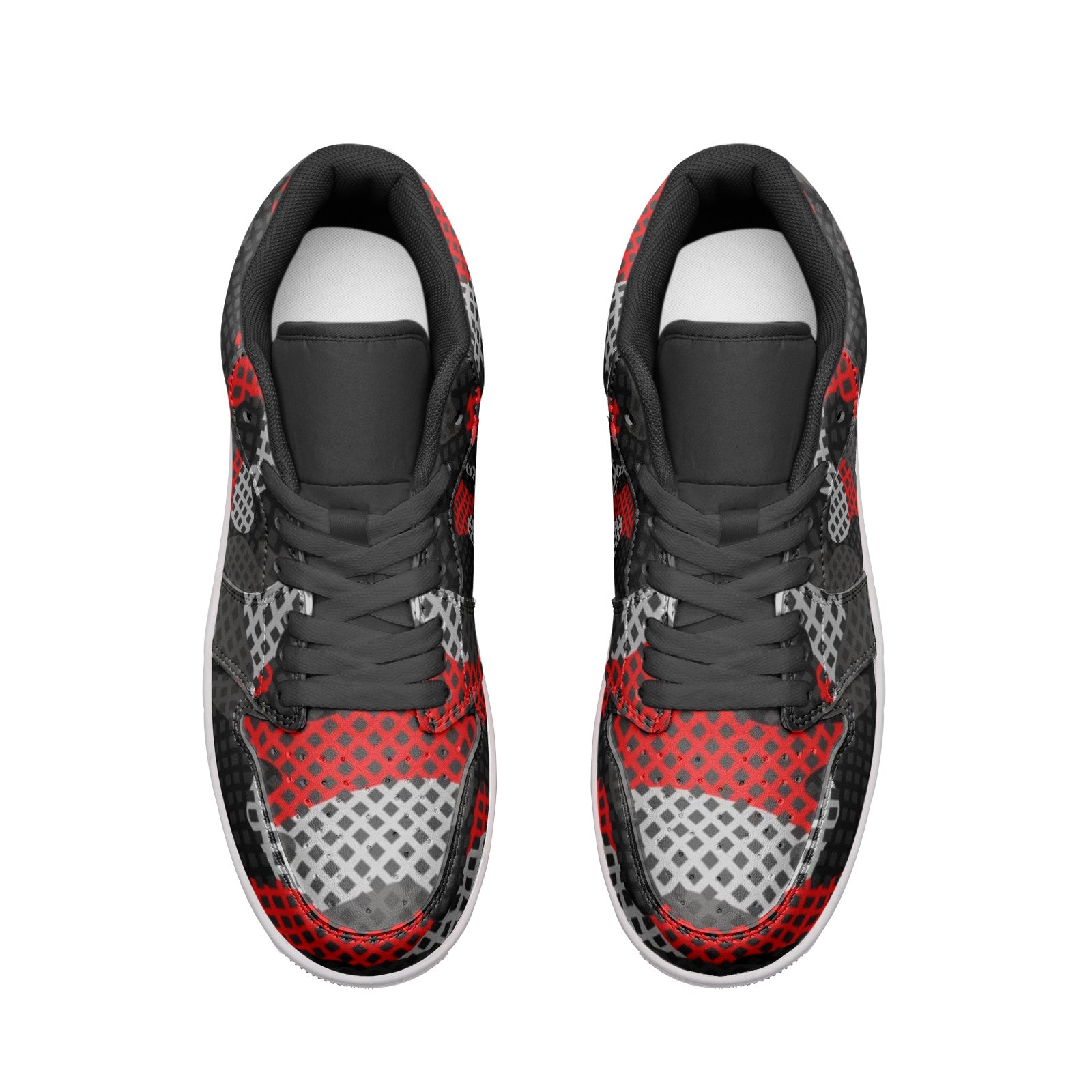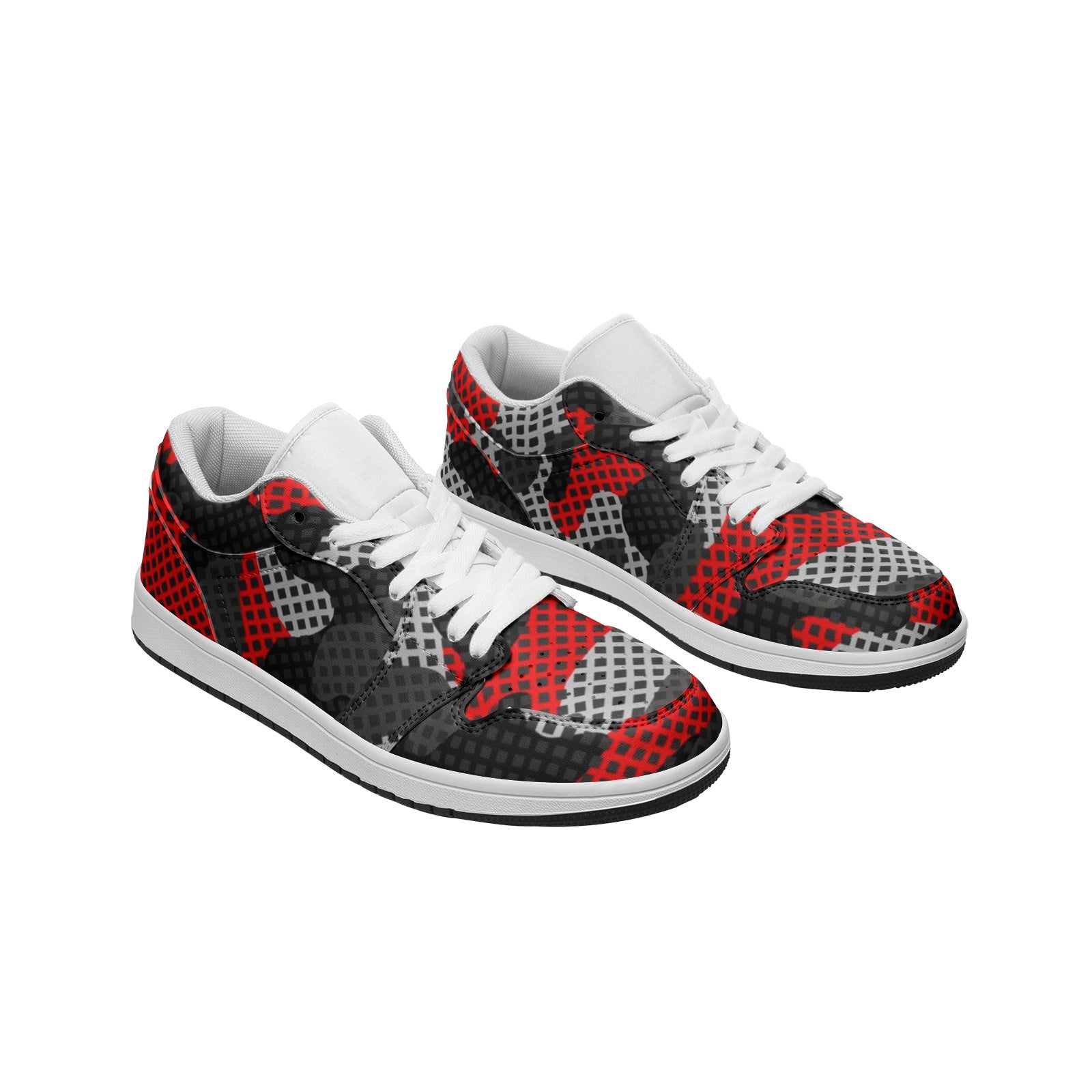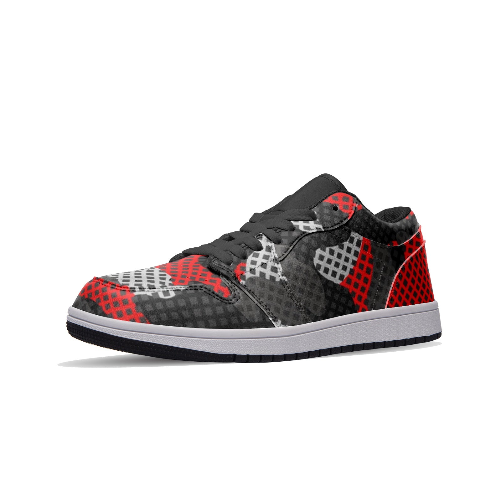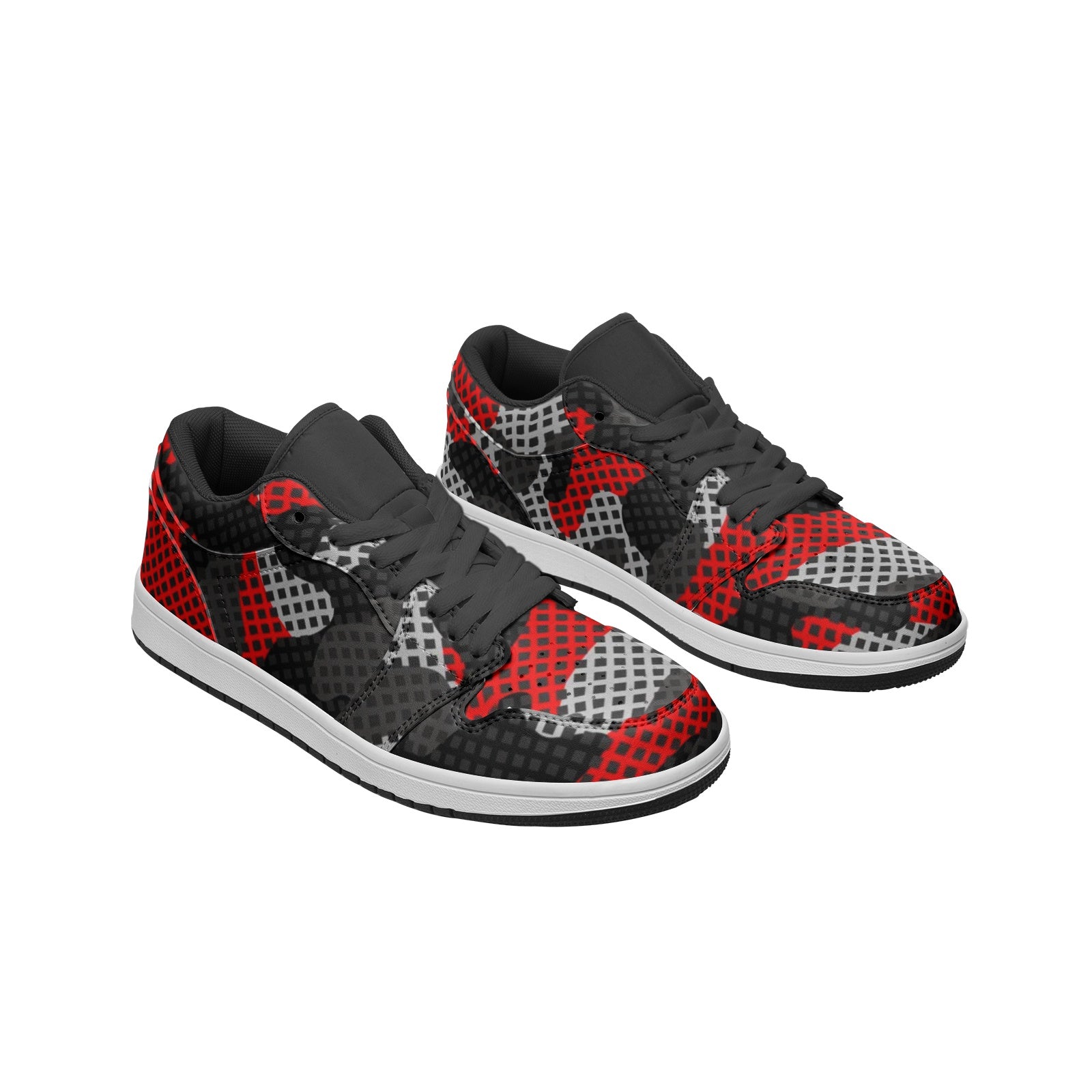 Camo Sneakers | Red, Black, and Gray Pixel | Unisex Low Top