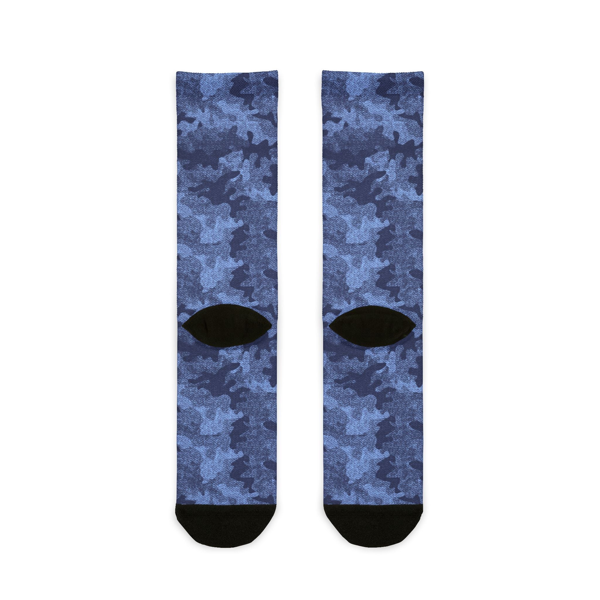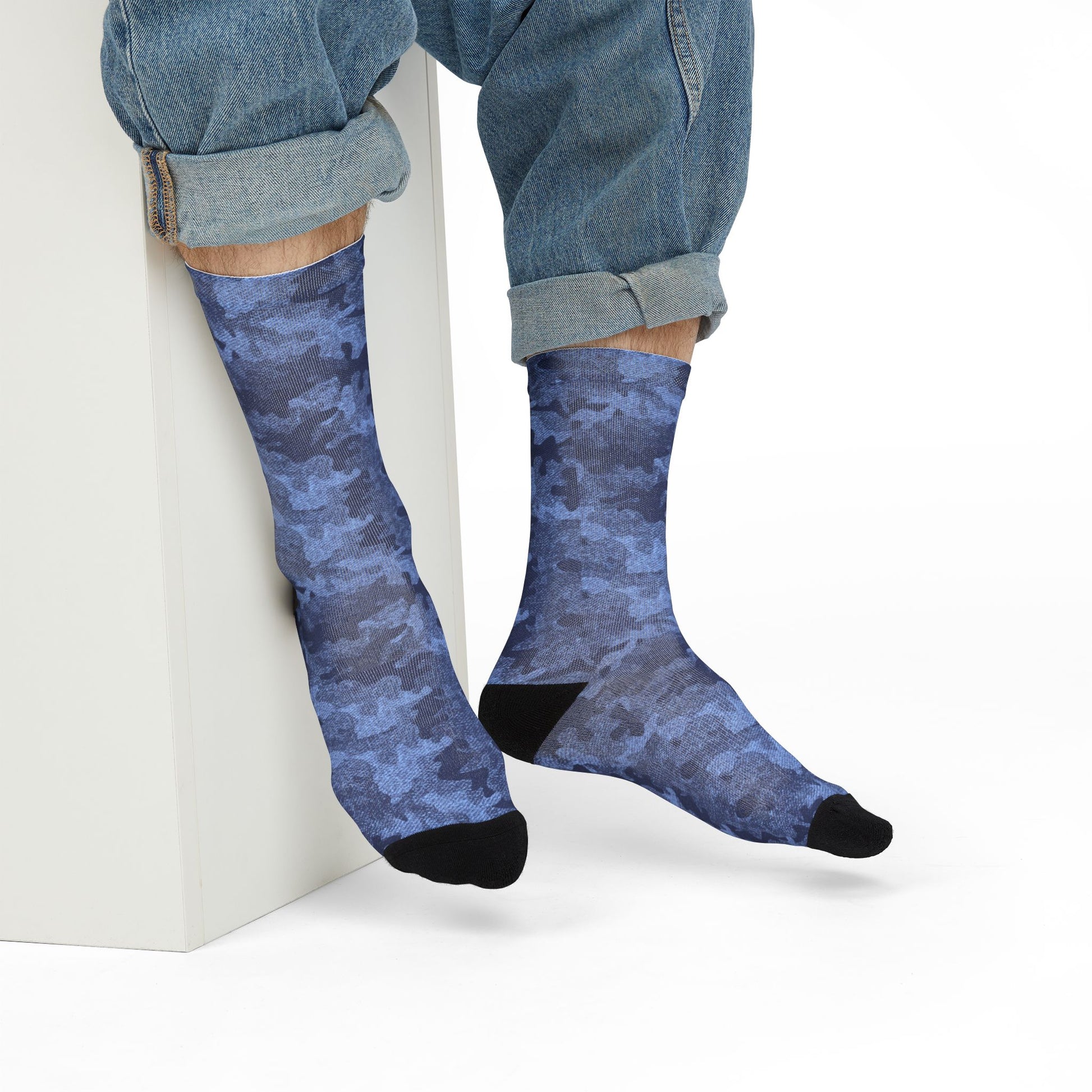 Introducing our Camo Socks in Denim Blue! These Sublimation Crew socks combine style and comfort, featuring a unique camouflage design and durable denim blue material. Made for everyday wear, these socks are sure to make a statement while keeping your feet cozy and supported all day long.