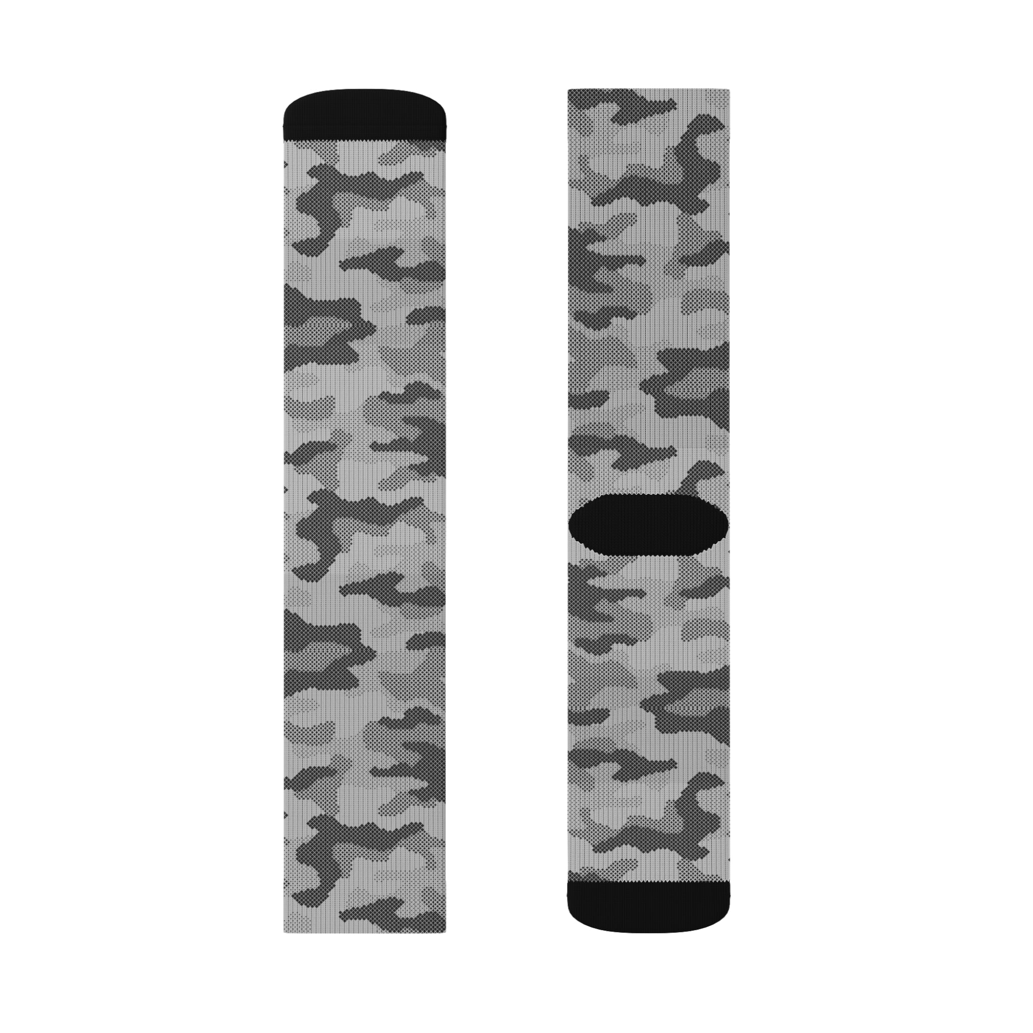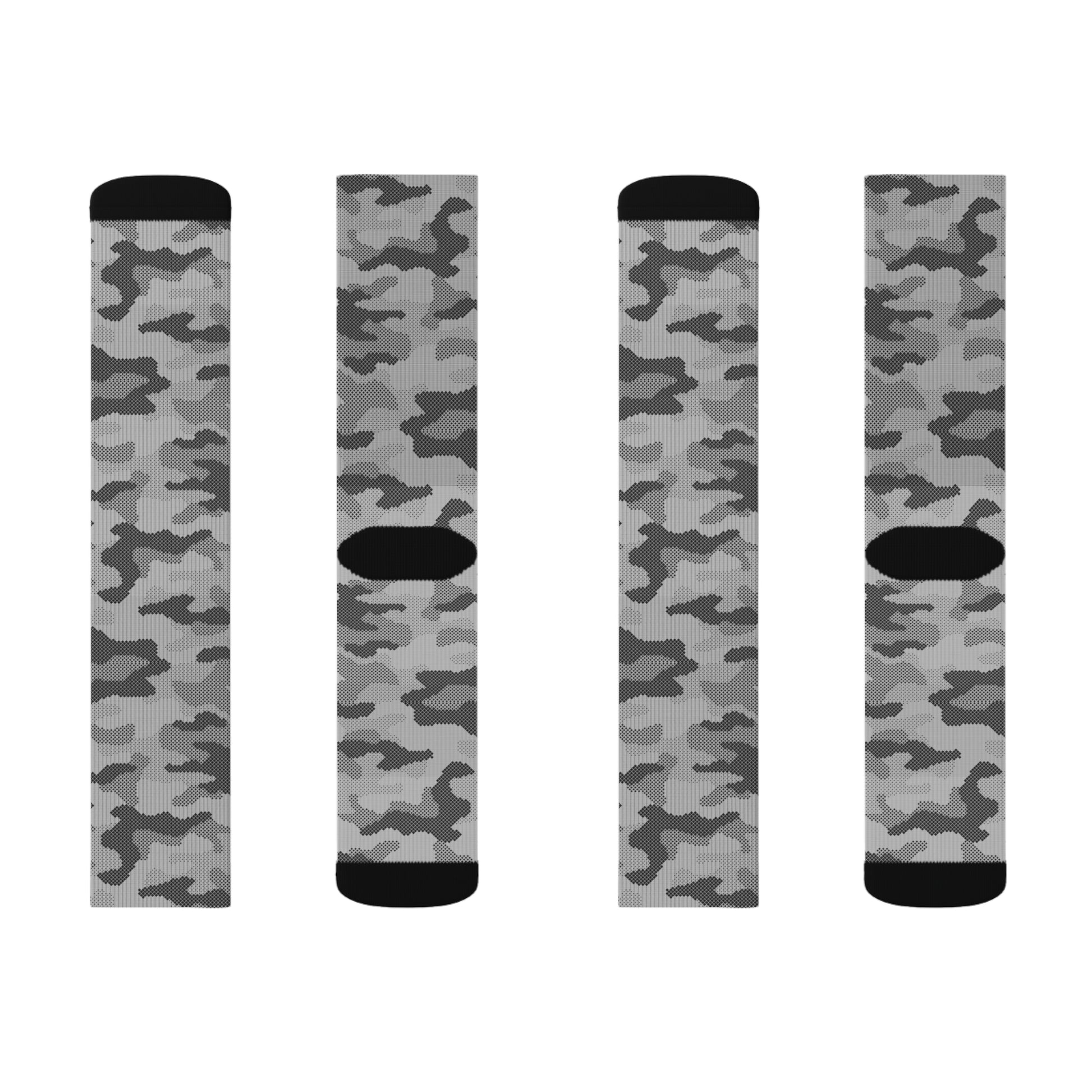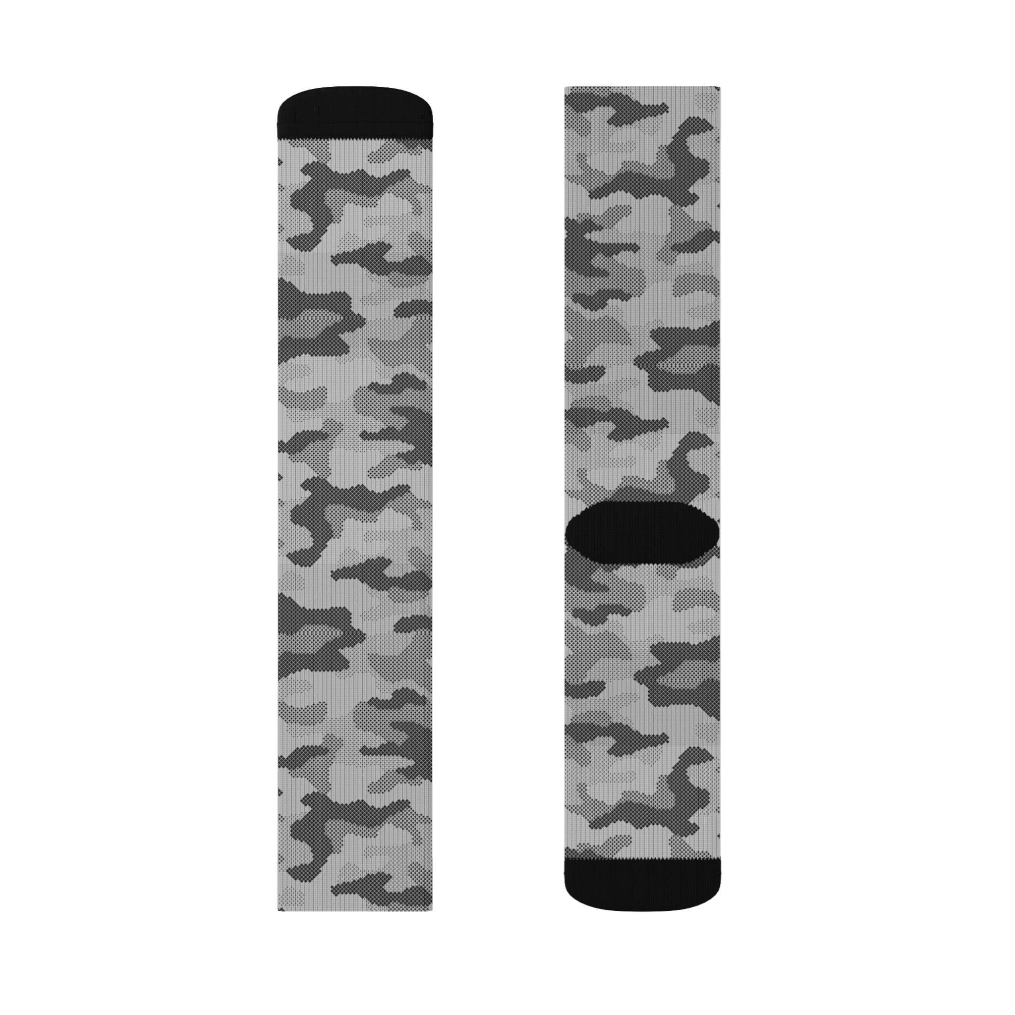 Upgrade your sock game with our Camo Socks in Gray Digital Camouflage. Made with a soft and durable material, these socks offer comfort and style. The unique camo design adds a touch of edginess to any outfit. Step out in confidence with these must-have socks.