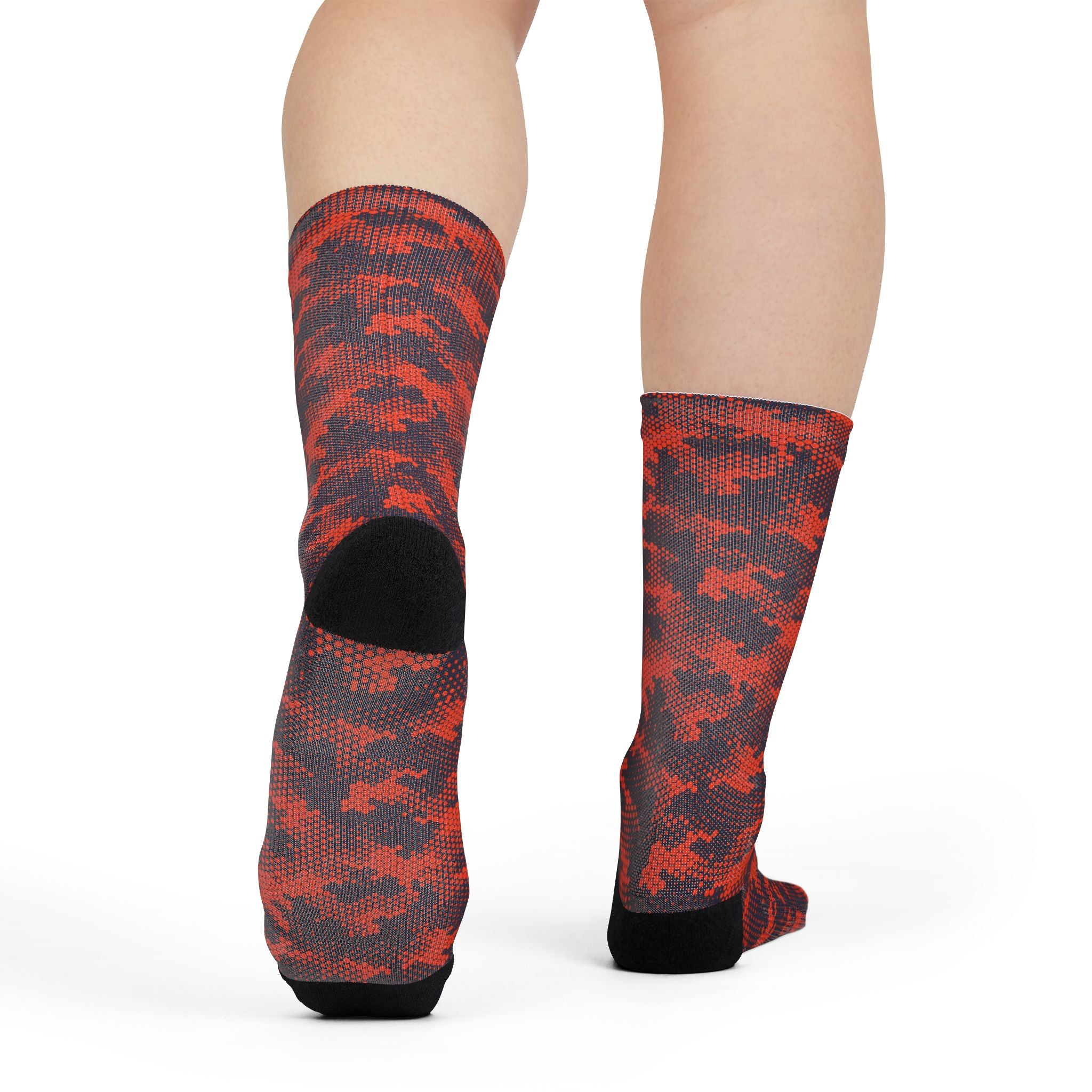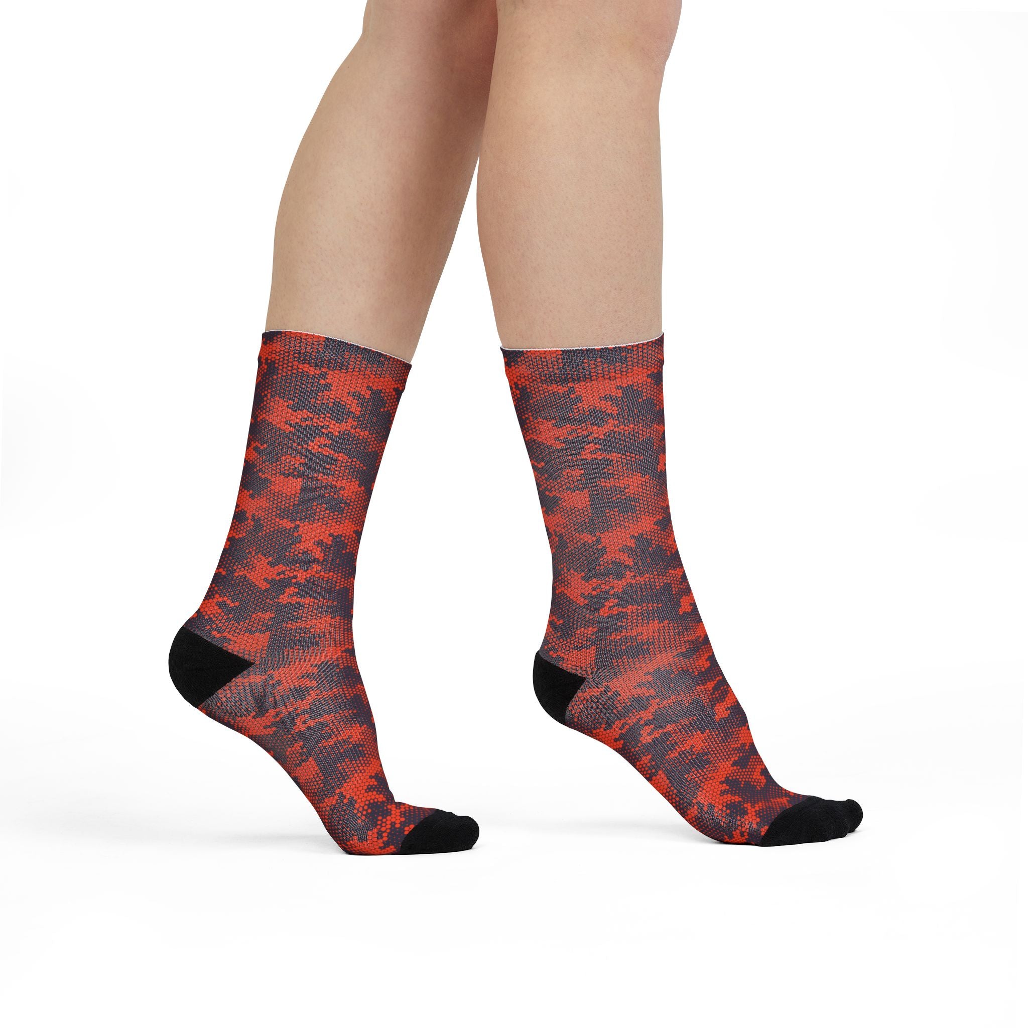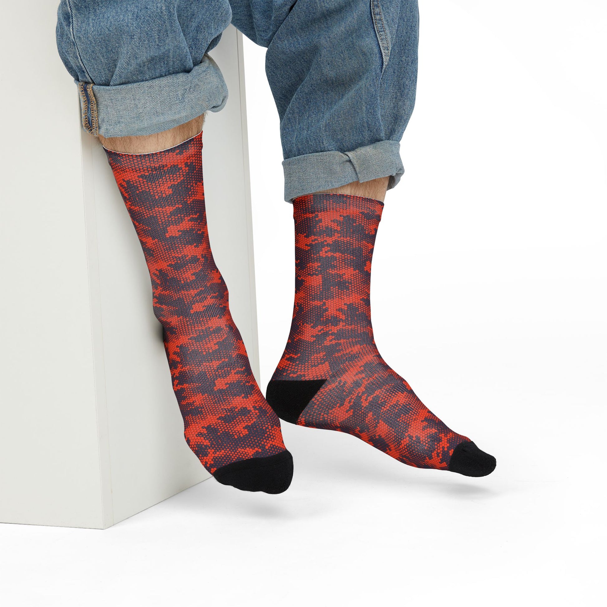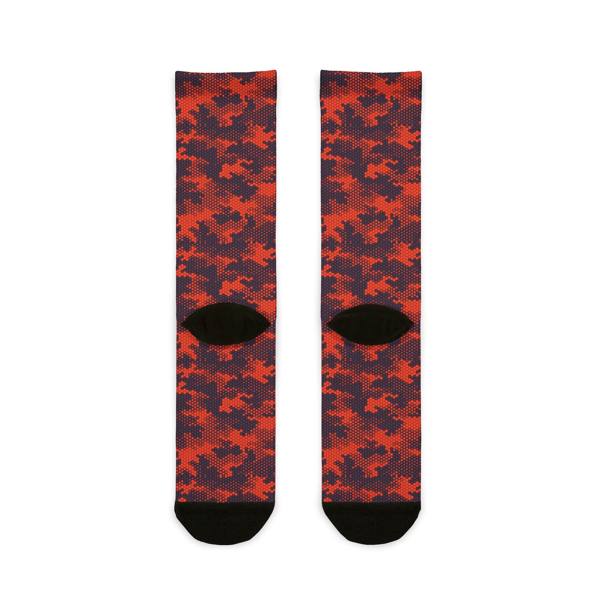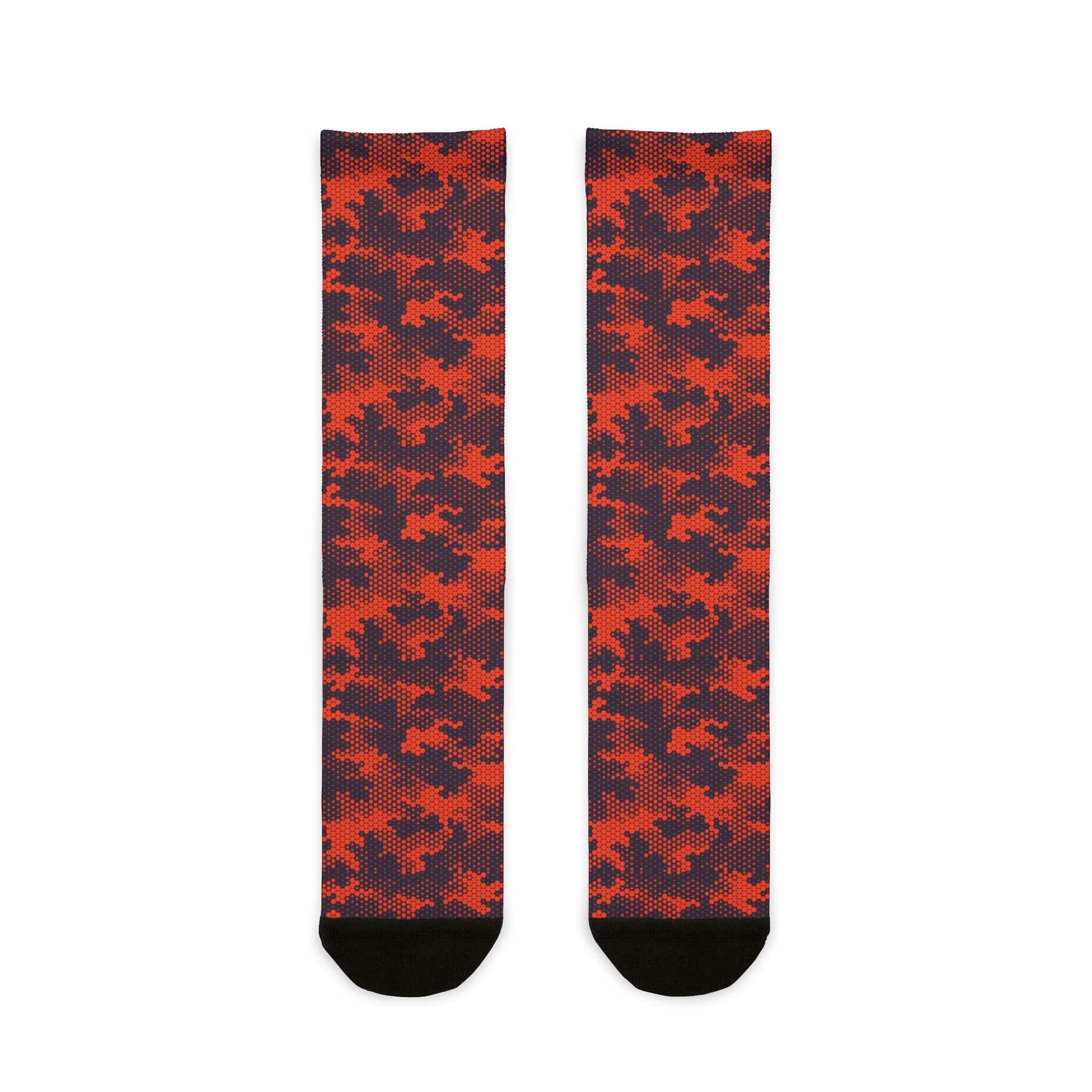 Introducing our Camo Socks in Orange & Blue, featuring sublimation technology for vibrant colors and a comfortable crew fit. Stand out on or off the field with these high-quality, durable socks. Made for athletes and outdoor enthusiasts, these socks are a must-have for those who value style and performance.