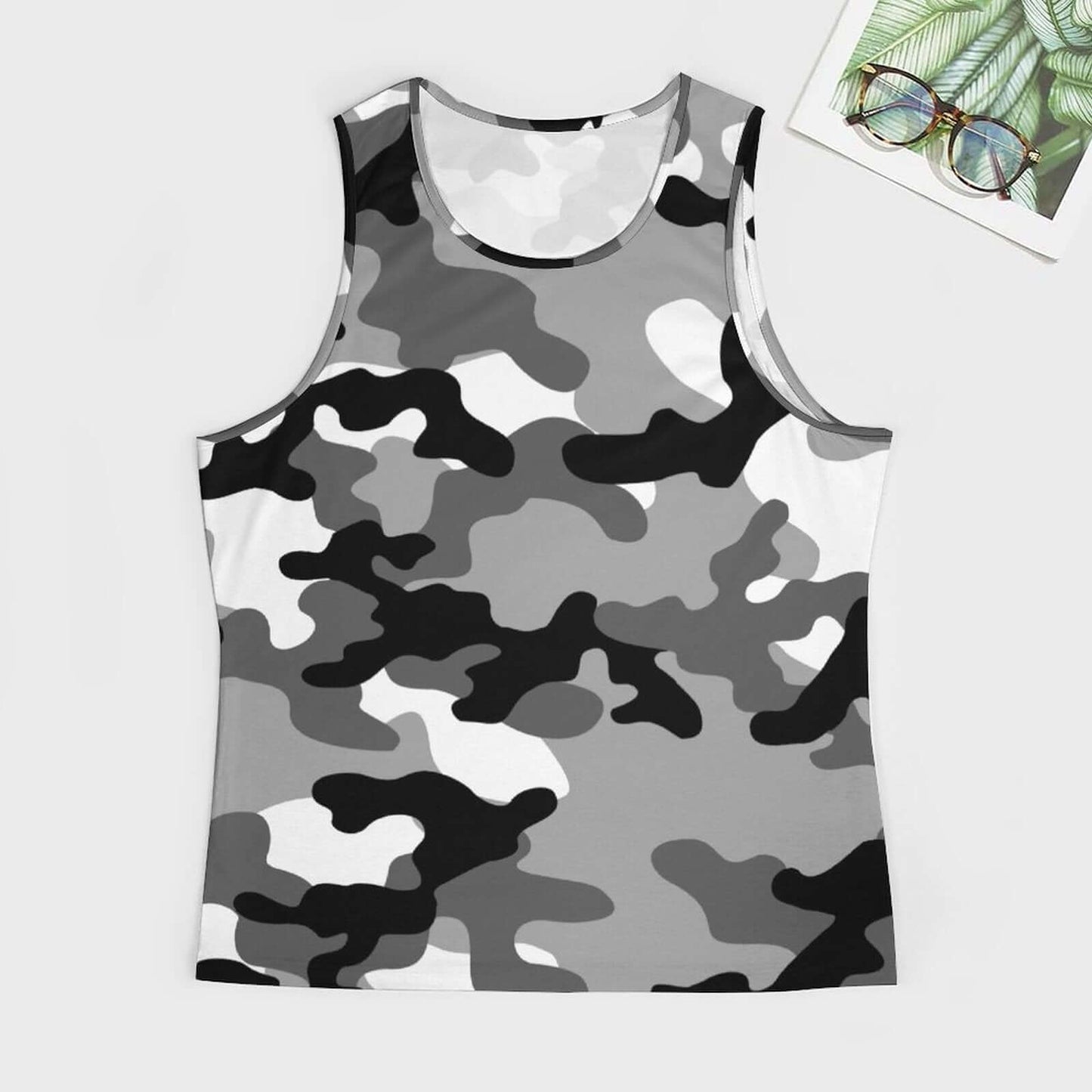 Introducing our Camo Tank Top in Black, Gray, and White Camouflage. Made from high-quality materials, it offers a comfortable and stylish fit. The camo design adds a unique touch to any outfit. Perfect for outdoor activities or casual wear. Available in a variety of sizes.