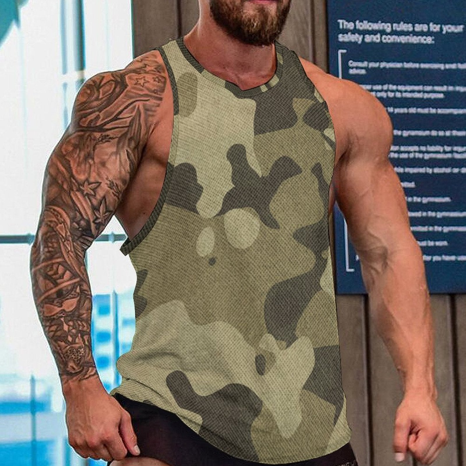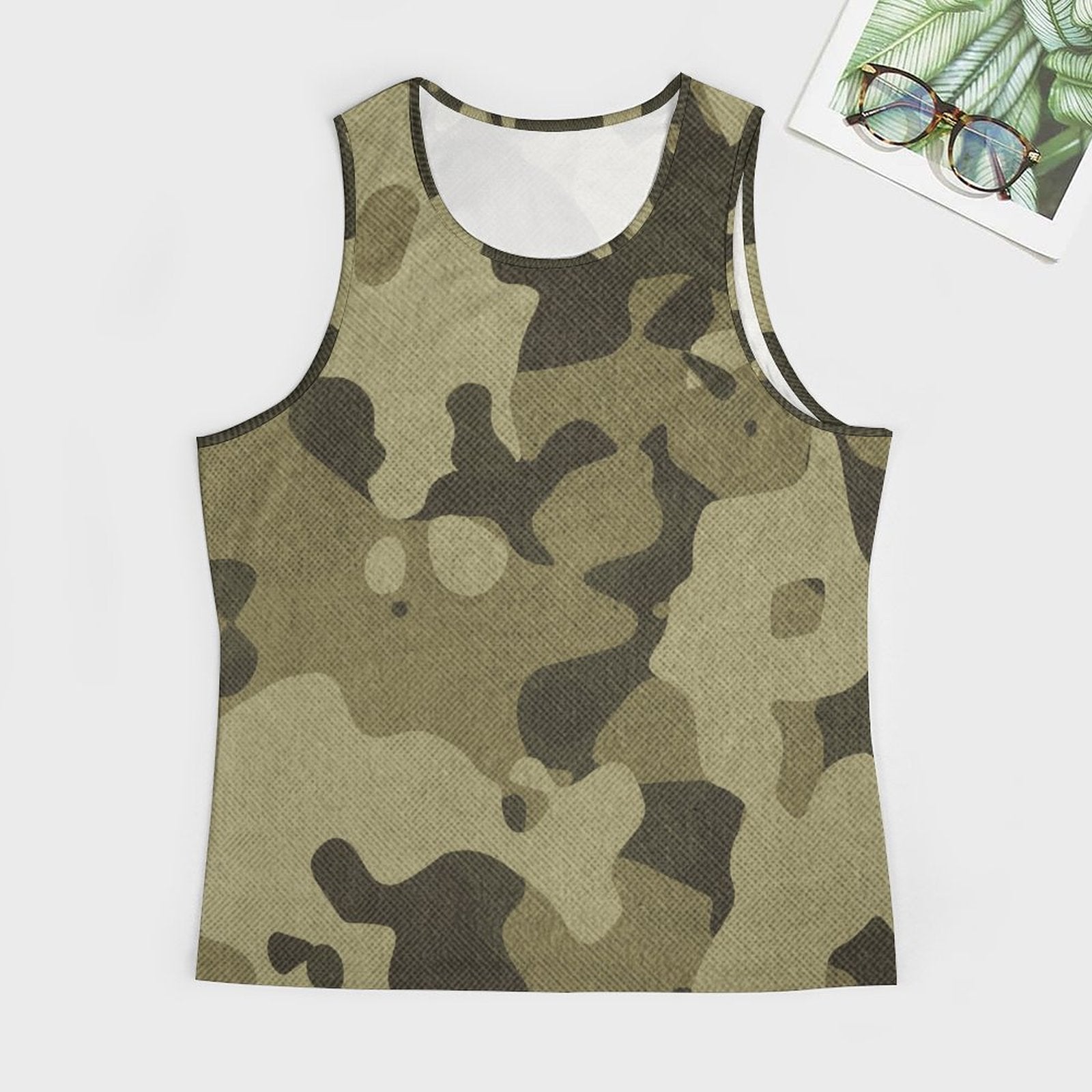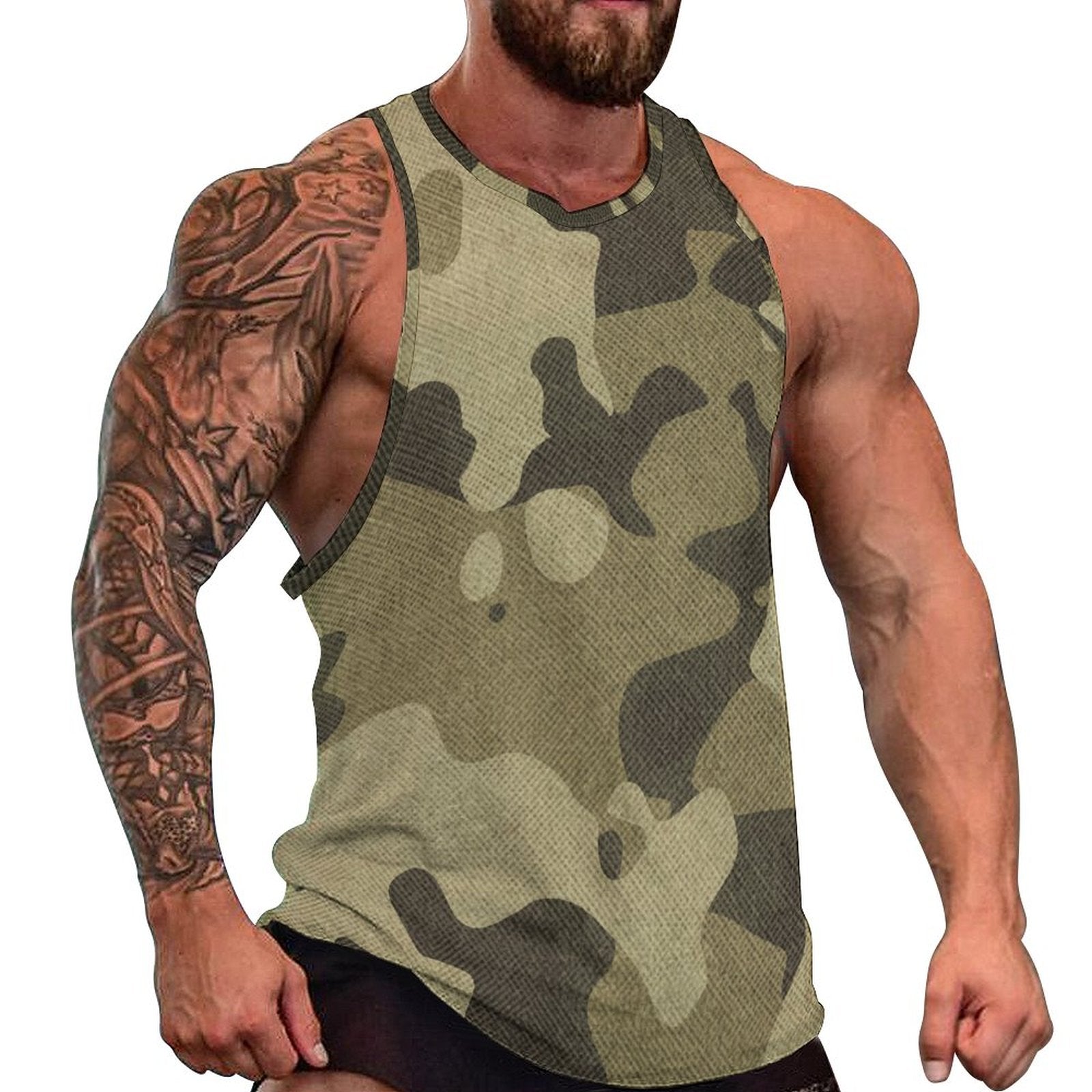 This Camo Tank Top features a green fabric camouflage, perfect for blending in with nature or making a fashion statement. Made with high-quality materials, offering both comfort and style. Upgrade your wardrobe with this versatile tank top.