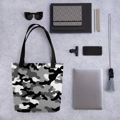 Camo Tote Bag | Black, Gray, and White Camouflage