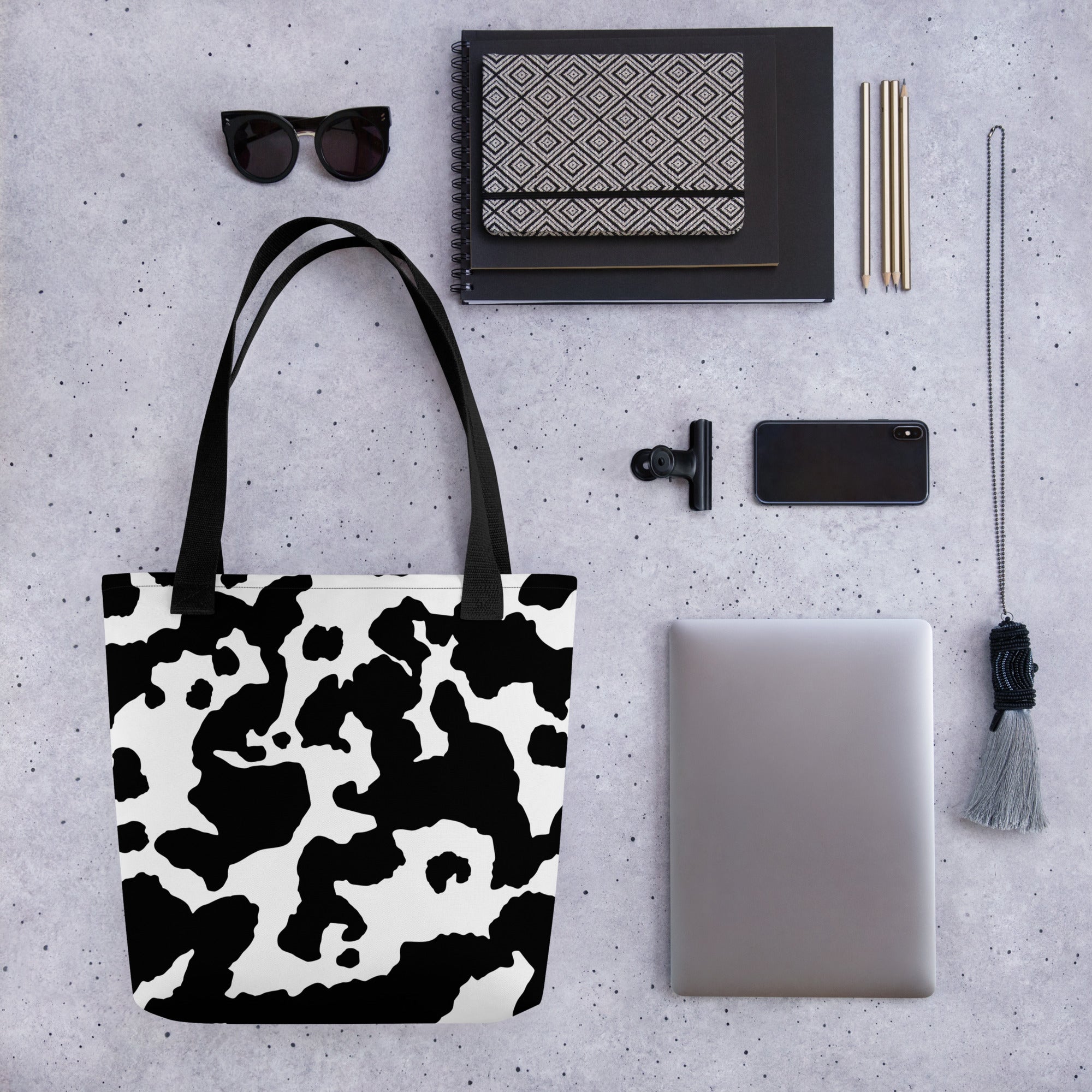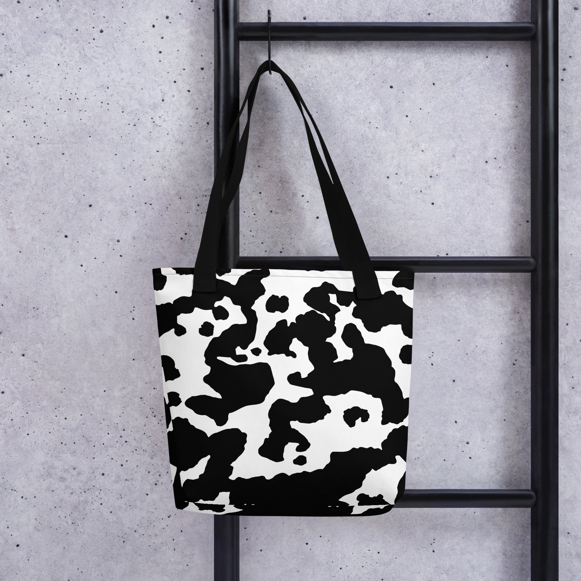 Camo Tote Bag | Black & White Cow Camouflage