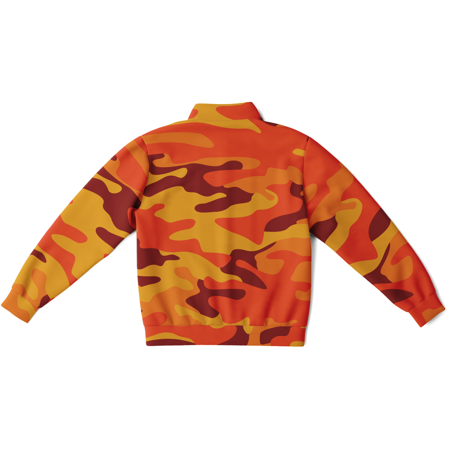 Stay stylish and functional with our Camo Track Jacket in Orange & Red Camouflage. Made with high-quality materials, this jacket offers both comfort and durability. Its camouflage design adds a touch of uniqueness to any outfit. Perfect for outdoor activities, this jacket will keep you warm and on-trend.