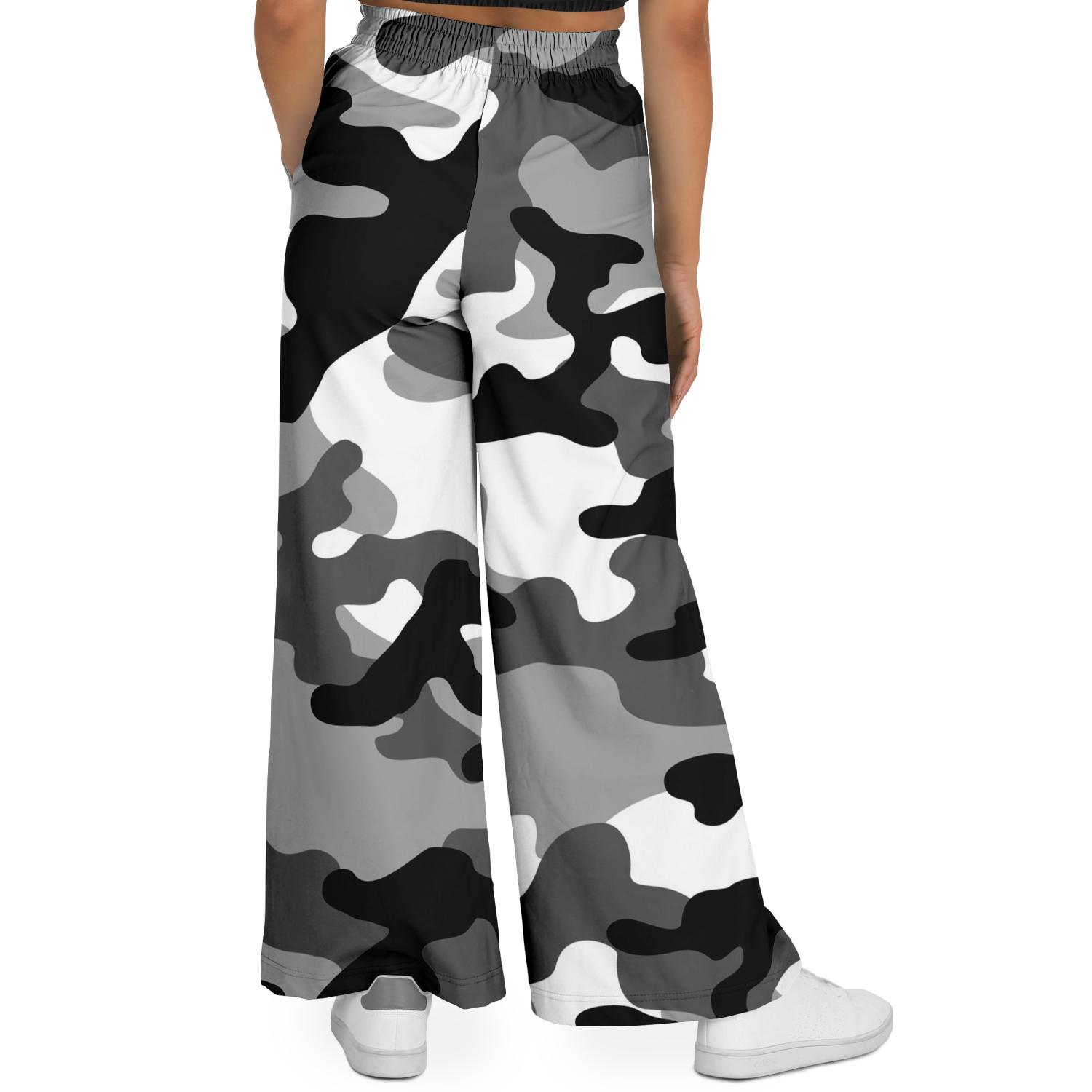 Camo Wide Leg Pants | Black, White & Gray Camouflage