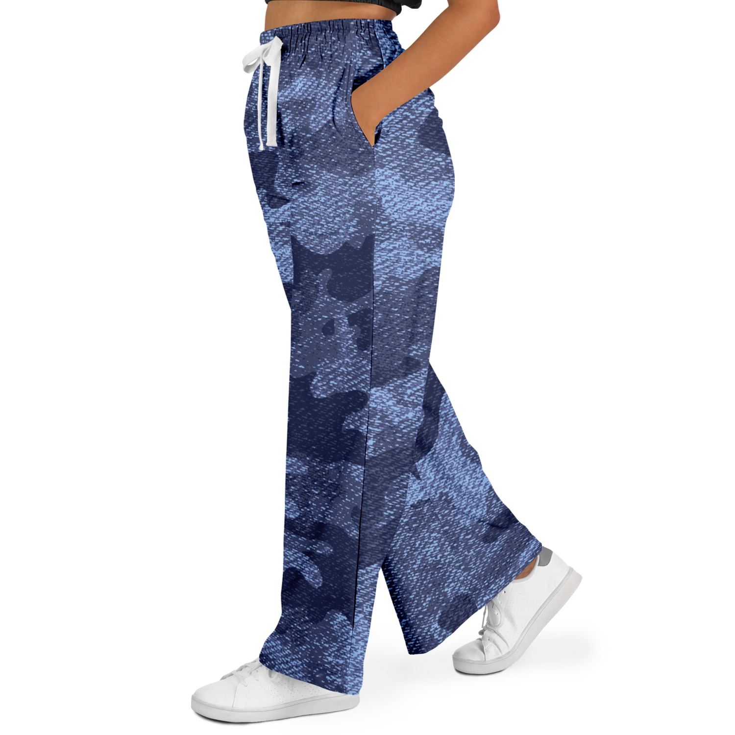Camo Wide Leg Pants | Blue Denim Camouflage