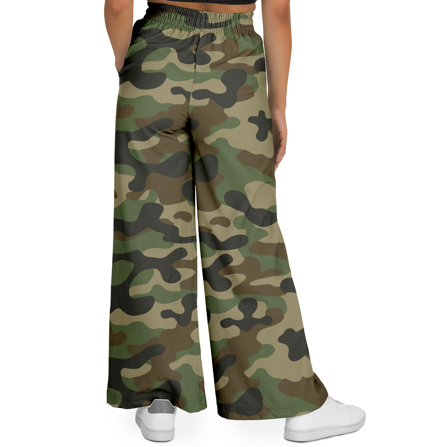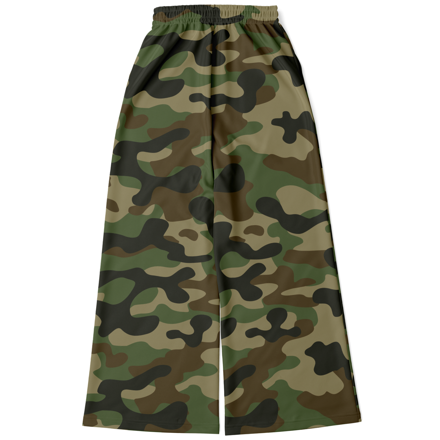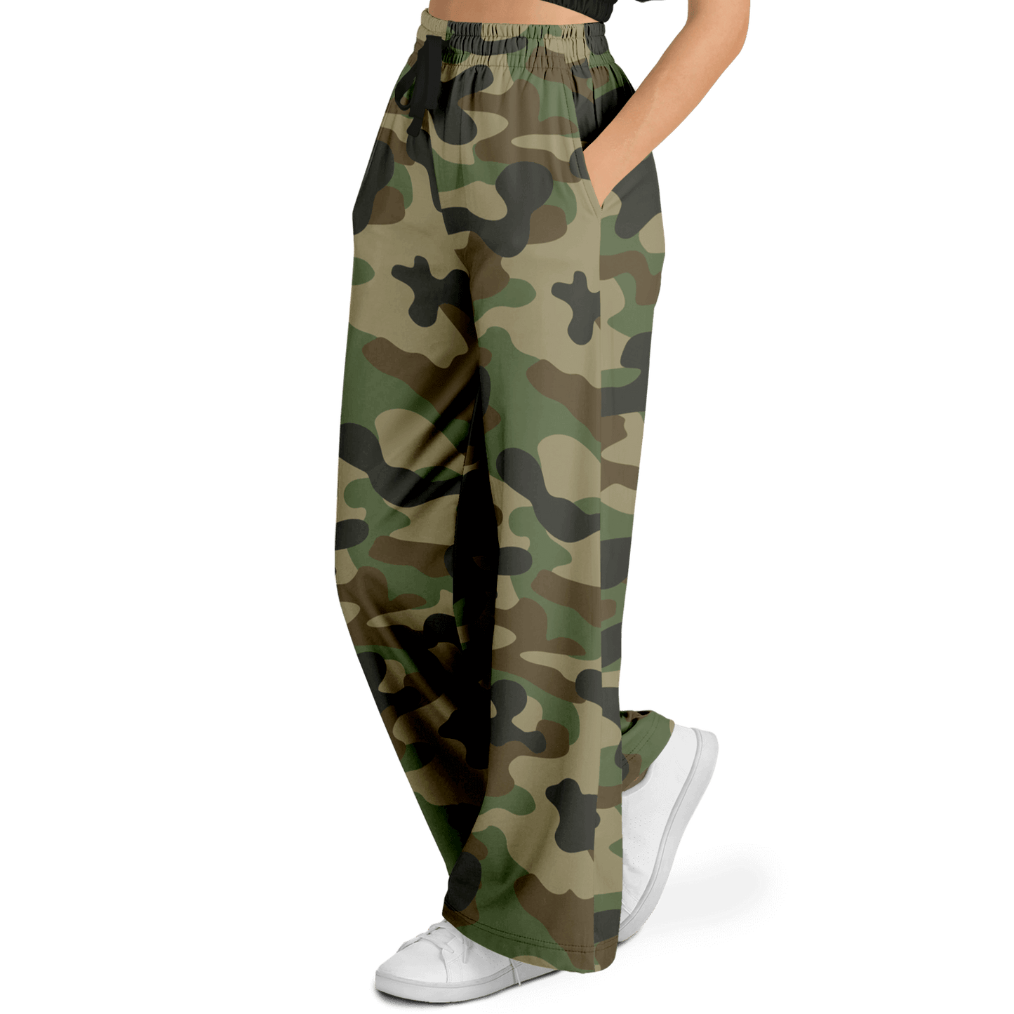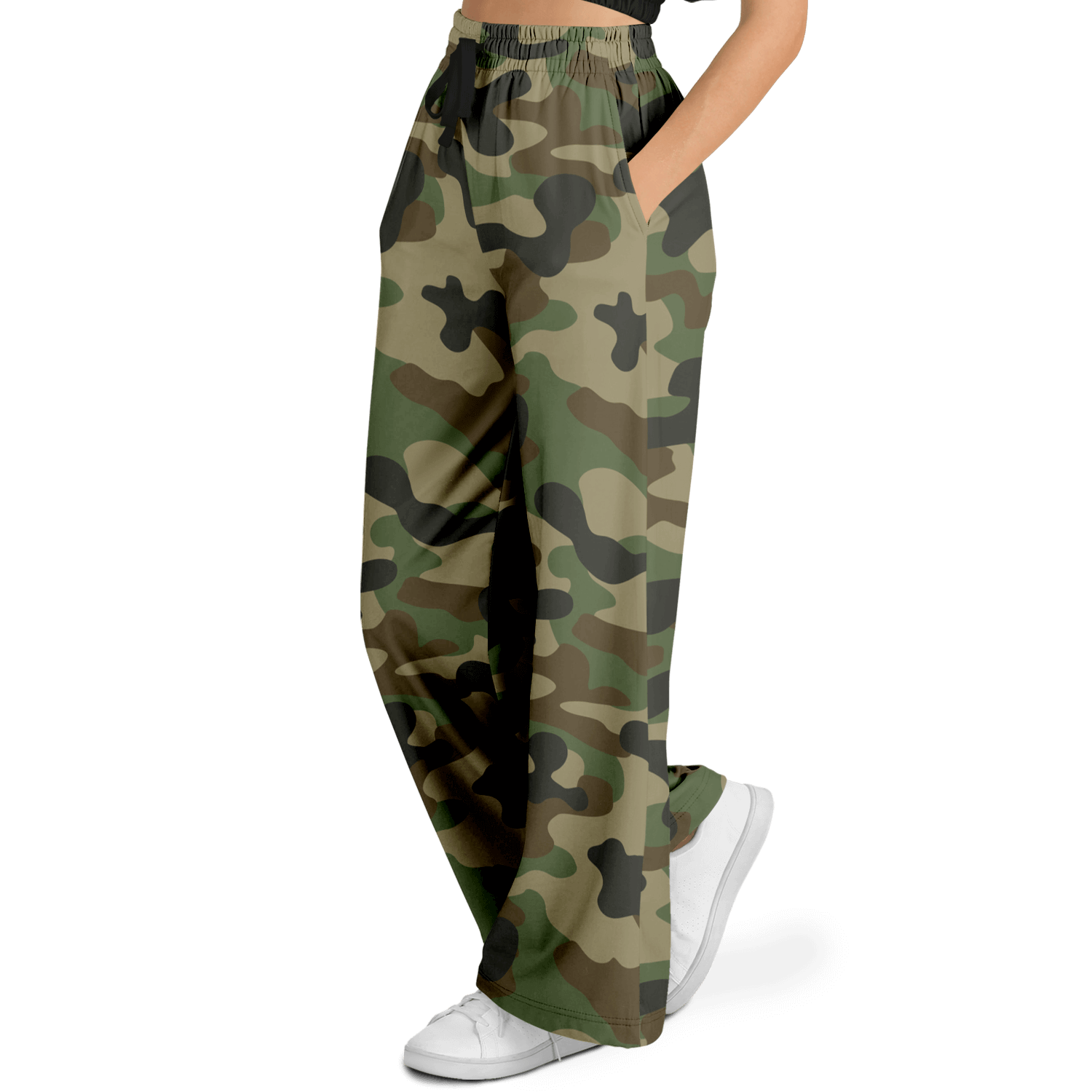 These Camo Wide Leg Pants in a classic green shade are perfect for making a statement. The wide leg design provides a comfortable and trendy fit, while the camo print adds a touch of edge to any outfit. With these pants, you can easily elevate your style game while staying comfortable.