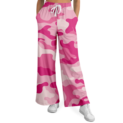 Elevate your style with our Camo Wide Leg Pants in Lavender Pink Camouflage. Made with high-quality materials, these pants offer a comfortable fit and trendy design for any occasion. Let your unique sense of fashion shine with these must-have pants.