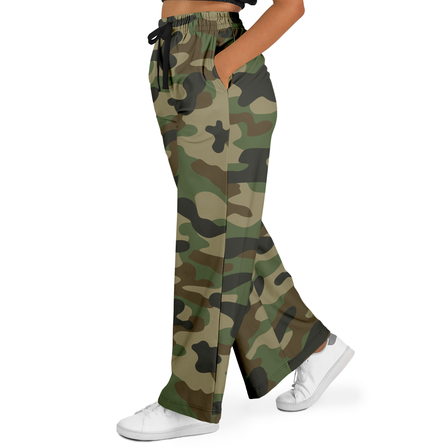 Discover ultimate comfort and style with our Camo Wide Leg Pants in Military Brown Camouflage. Made from durable fabric, these pants offer a wide leg fit for maximum movement. Perfect for any outdoor adventure, these pants also provide a trendy, military-inspired look.
