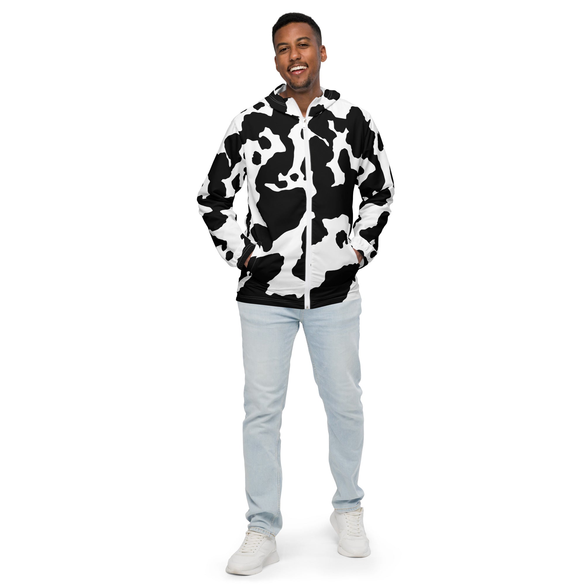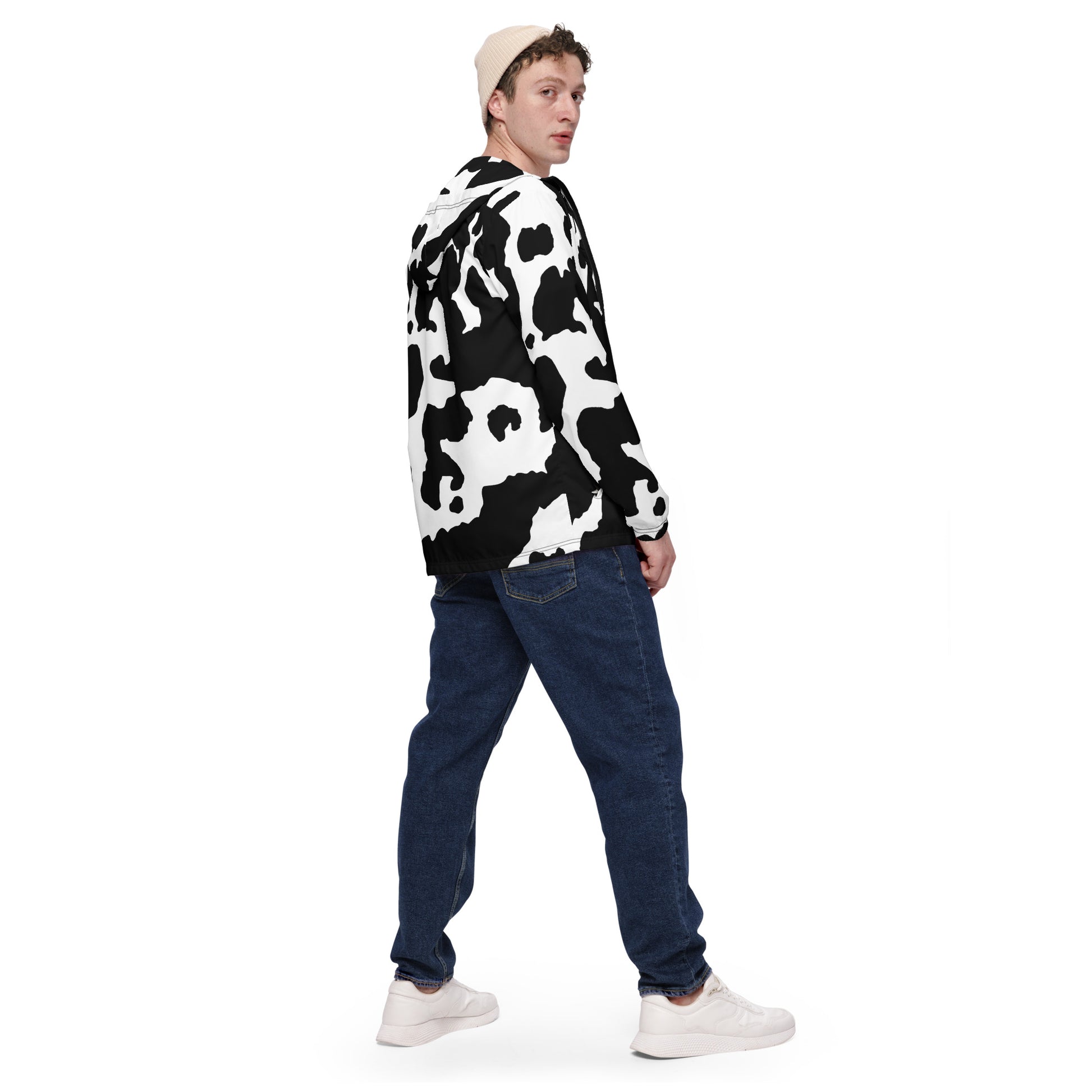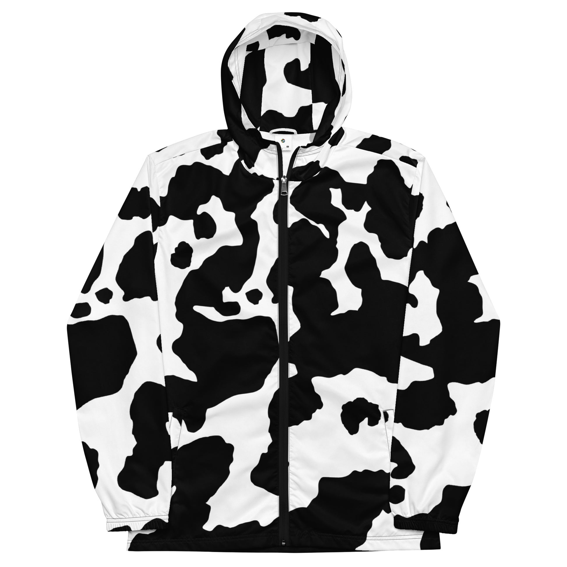 This camo windbreaker for men features a unique black and white cow camouflage design. Made with durable materials, it provides both style and functionality, keeping you protected from the elements. Embrace a rugged, outdoorsy look with this versatile and eye-catching windbreaker.