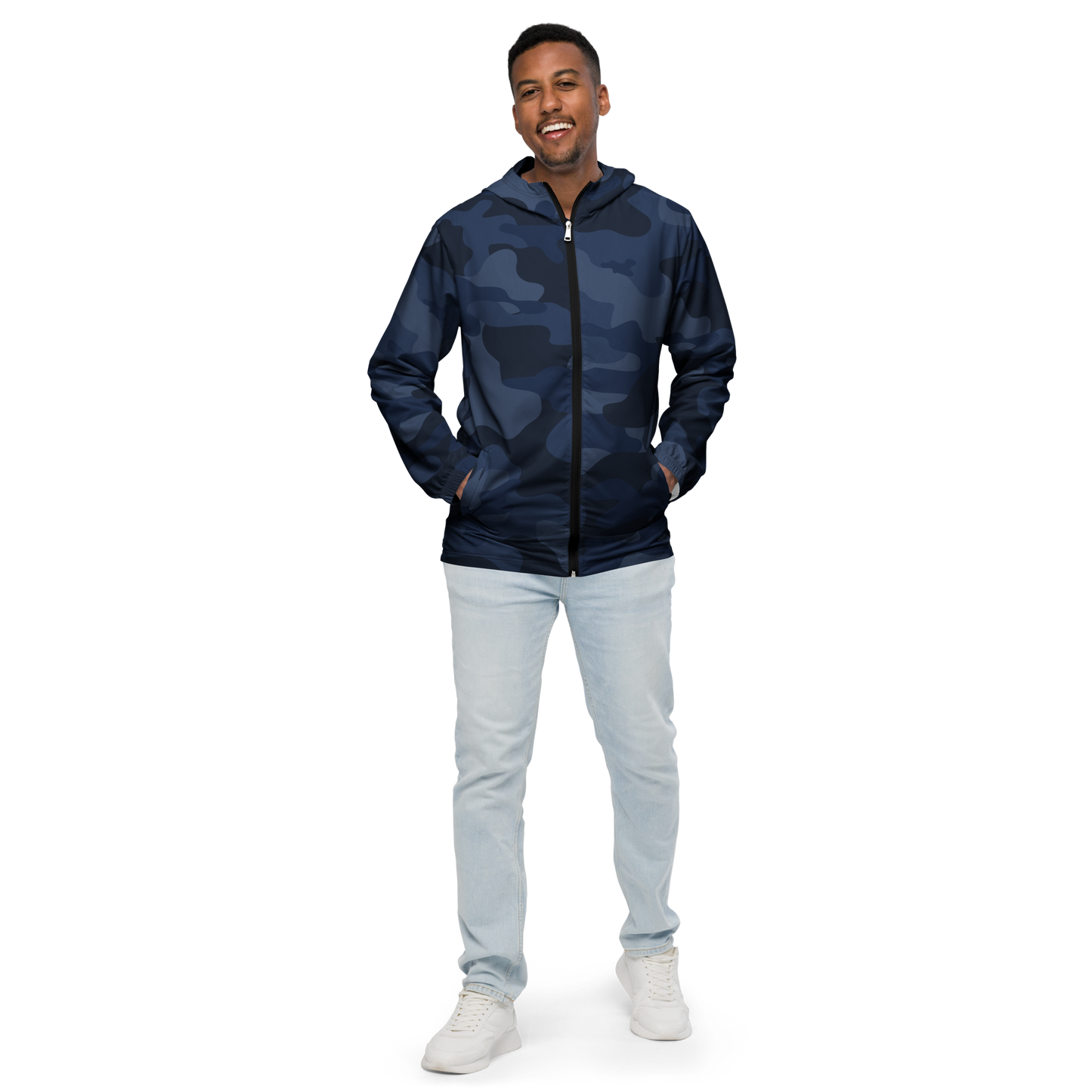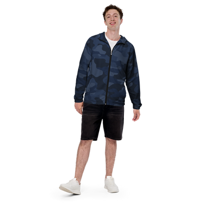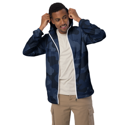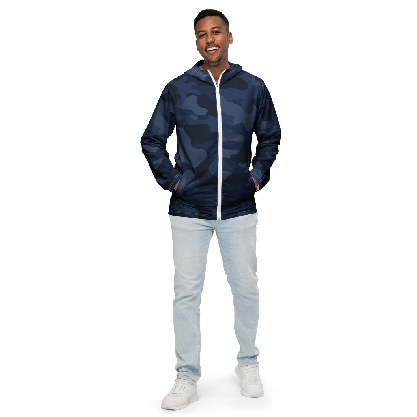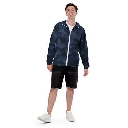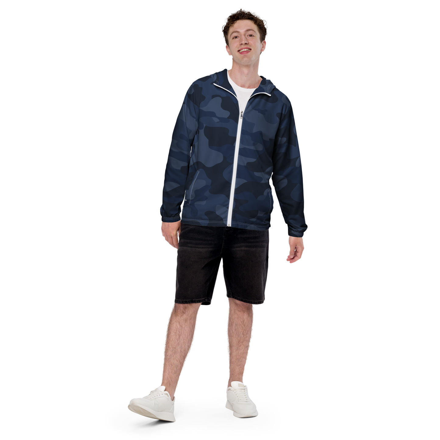 Stay protected from the elements in style with our Camo Windbreaker for Men in Deep Blue. Made with high-quality materials, this windbreaker features a unique camouflage design that will keep you looking cool and sophisticated. With its lightweight and durable construction, you'll stay comfortable and dry no matter the weather. Perfect for any outdoor adventure, whether it's hiking, camping, or just running errands.