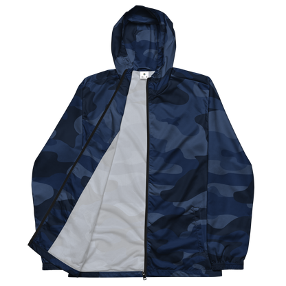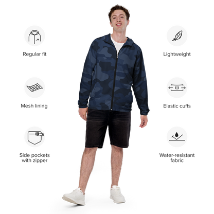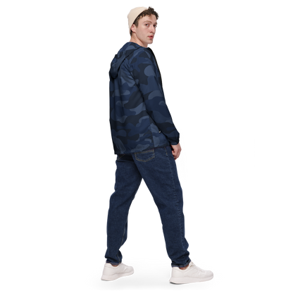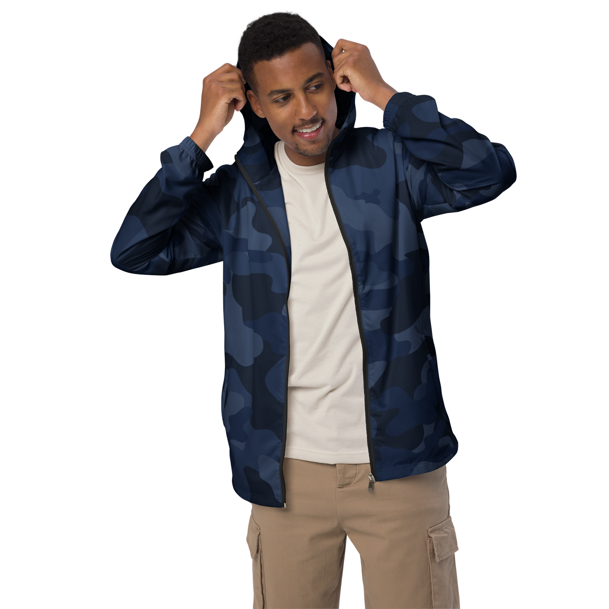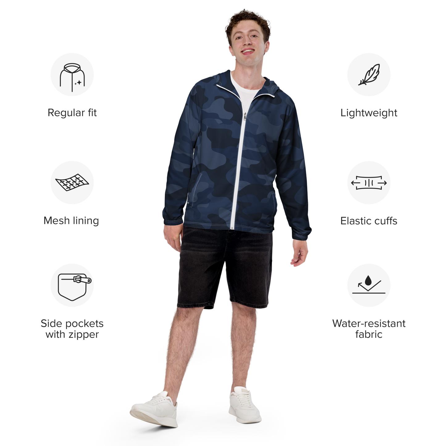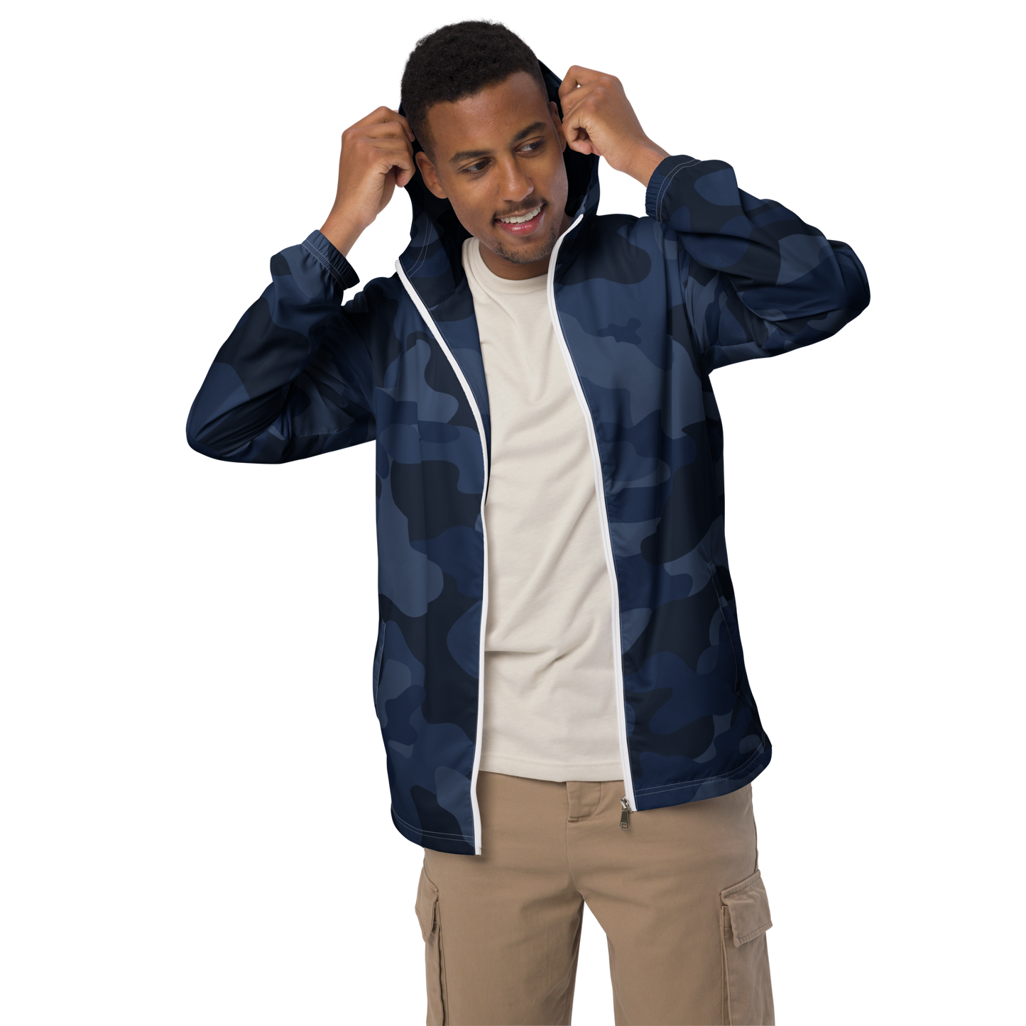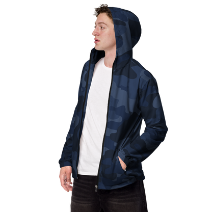 Stay protected from the elements in style with our Camo Windbreaker for Men in Deep Blue. Made with high-quality materials, this windbreaker features a unique camouflage design that will keep you looking cool and sophisticated. With its lightweight and durable construction, you'll stay comfortable and dry no matter the weather. Perfect for any outdoor adventure, whether it's hiking, camping, or just running errands.