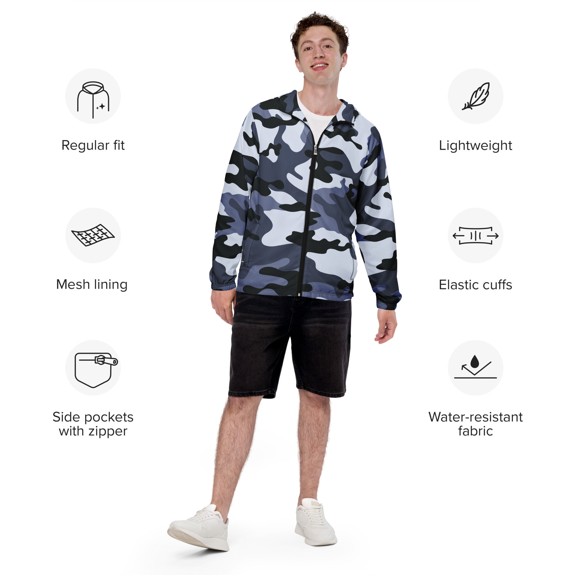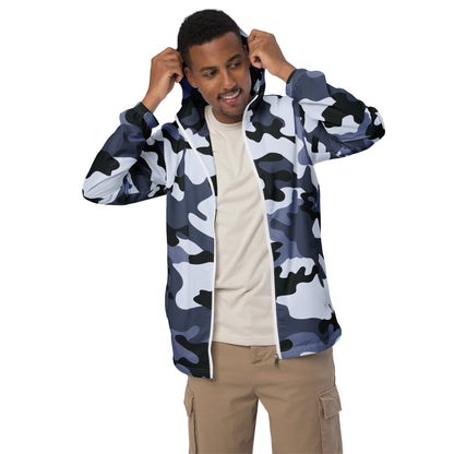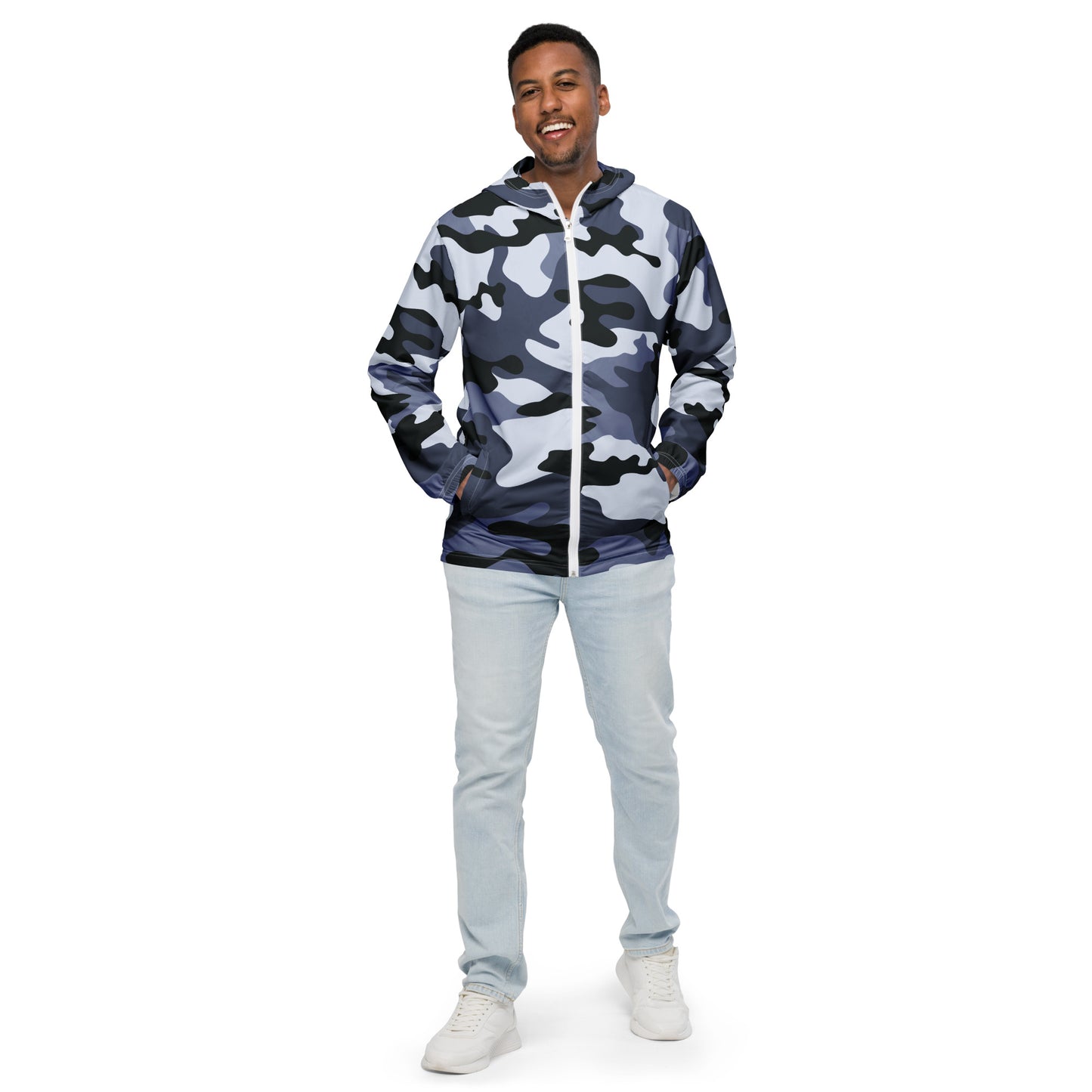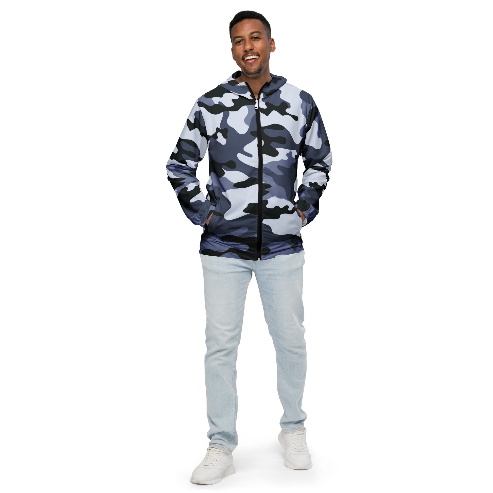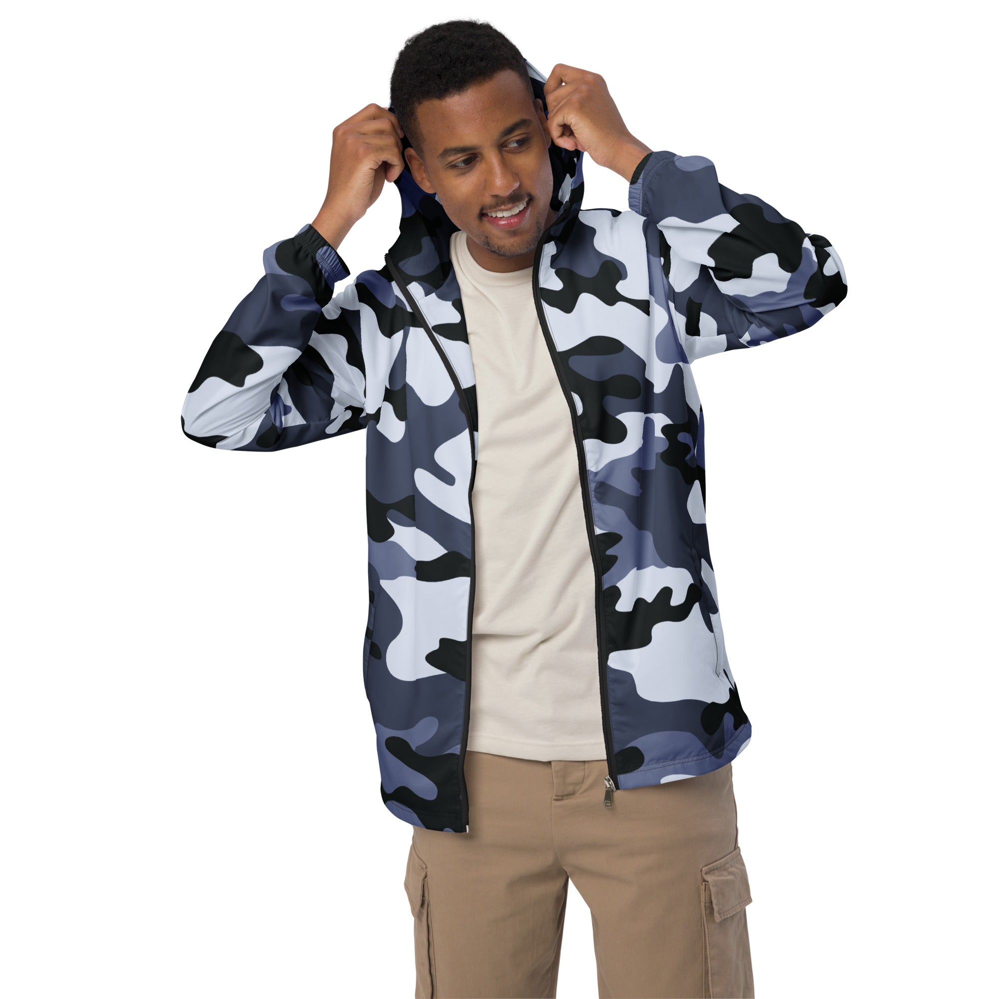 Designed for the fashion-conscious man, this light blue Camo Windbreaker adds a stylish touch to any outfit. Made with high-quality materials, it is both durable and comfortable. The camo pattern adds a rugged edge to the classic windbreaker design. Perfect for any outdoor adventure.
