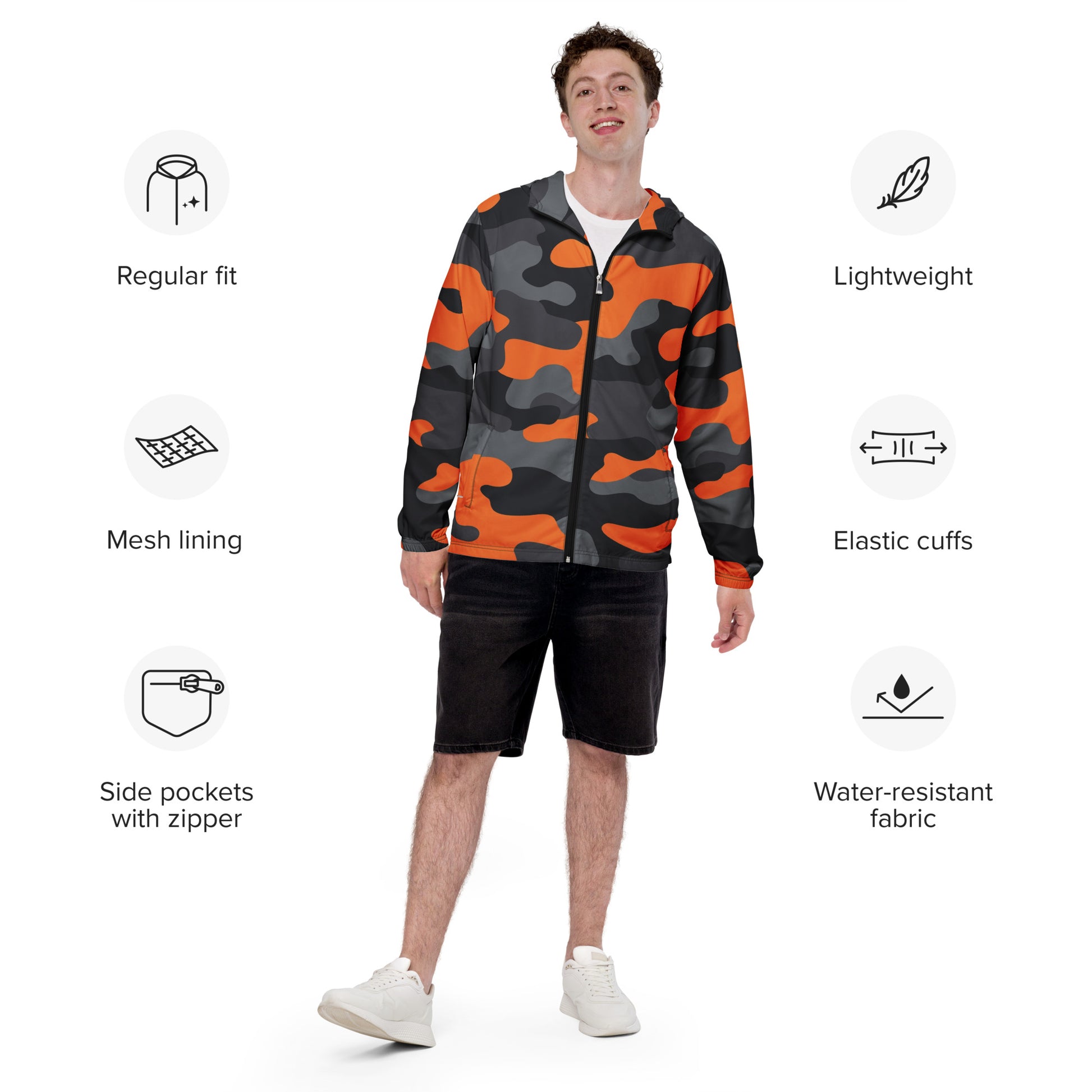 Stay ahead of the game with our Camo Windbreaker for Men in bold orange, gray, and black. Made for ultimate comfort and style, our windbreaker is your perfect go-to for any adventure. Its camo design adds an extra edge, while its durable fabric protects you from the elements. Get yours today!