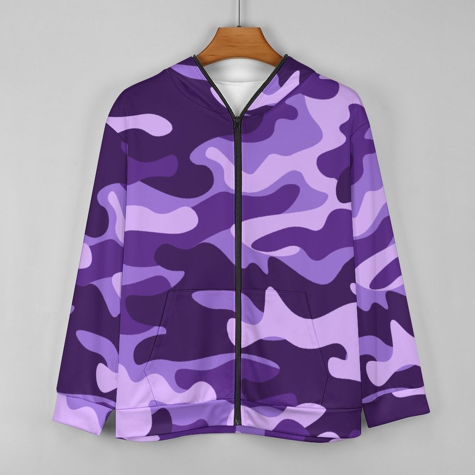 Zip Camo Hoodie | Purple, Blue and Mauve Camouflage