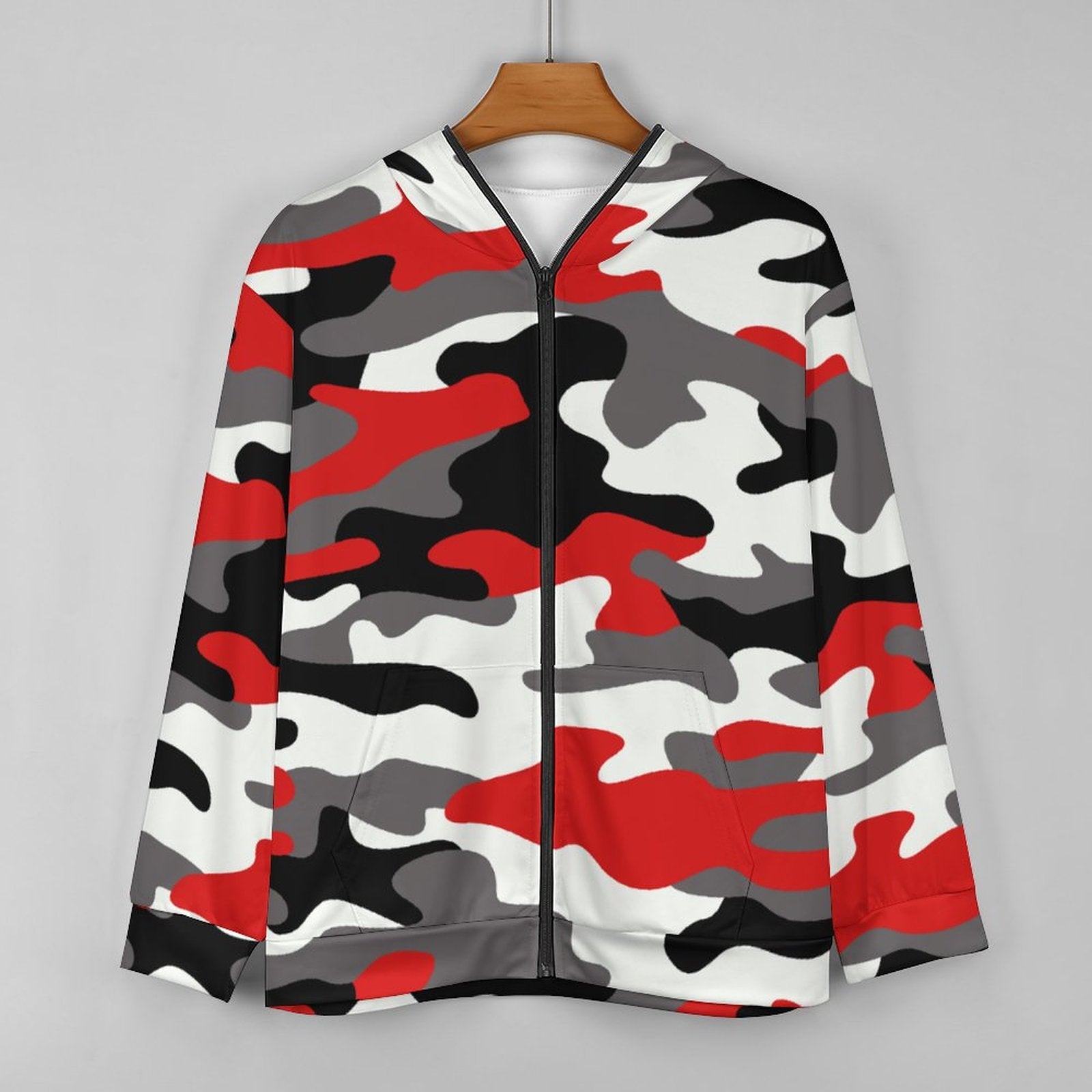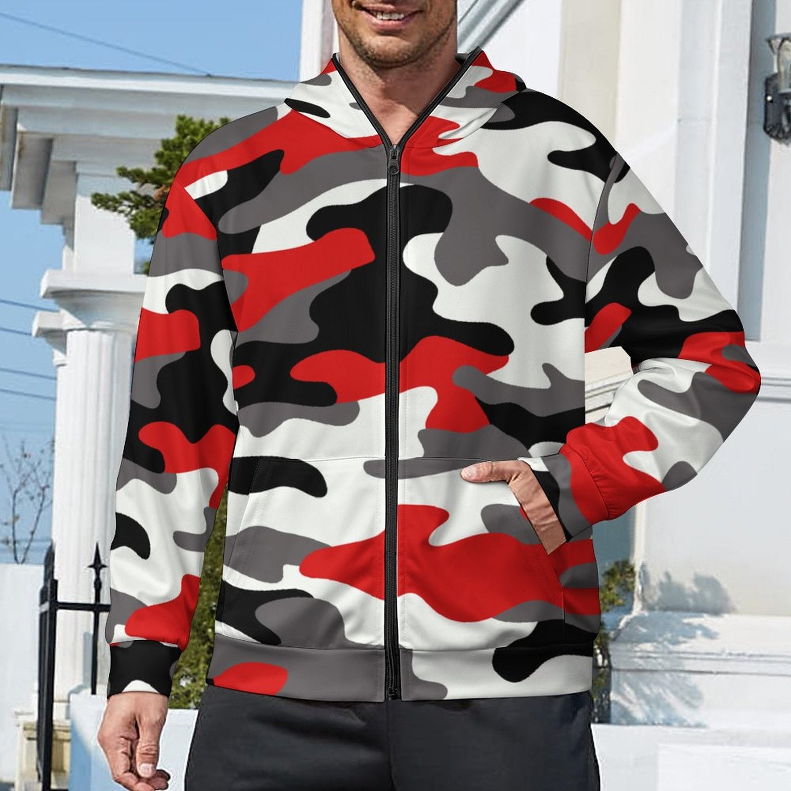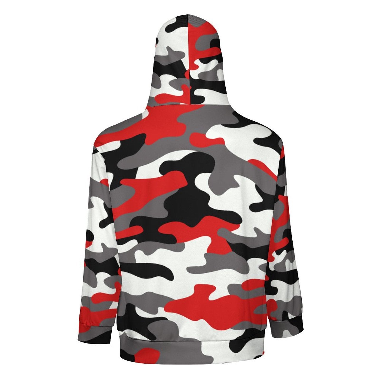 Zip Camo Hoodie | Red, Black, and White Camouflage
