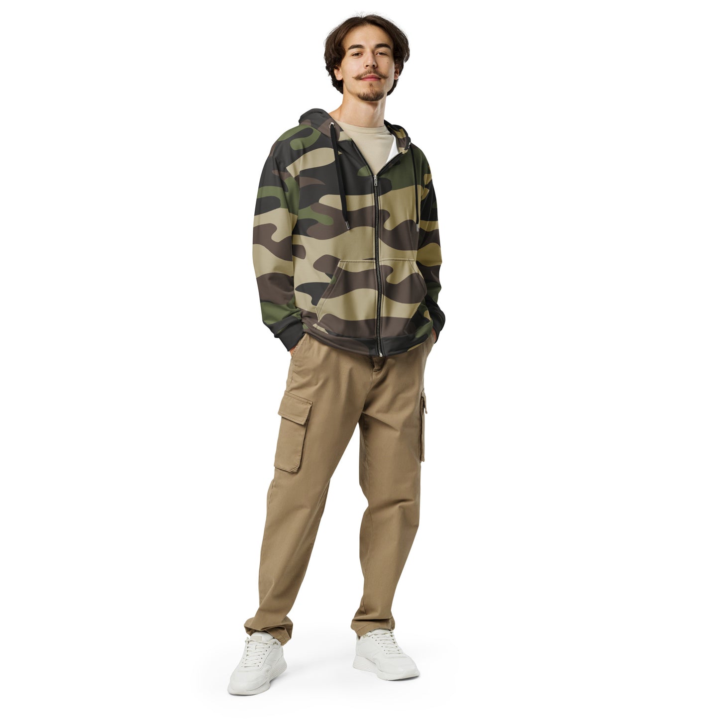 Enhance your street style with our Camo Zip Hoodie – Classic Green Combat Style. Made with durable, high-quality material, this hoodie is both stylish and functional. The classic green camouflage design adds an edgy touch to any outfit. Stay comfortable and on trend with our Camo Zip Hoodie.