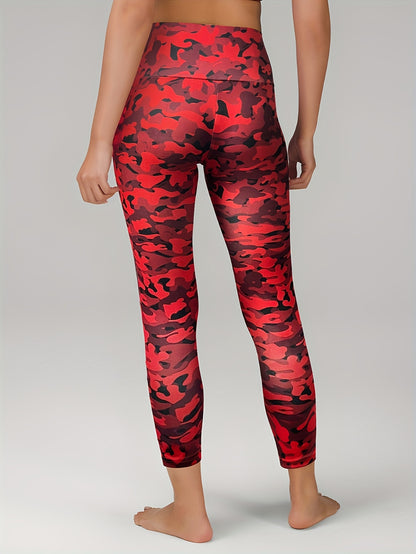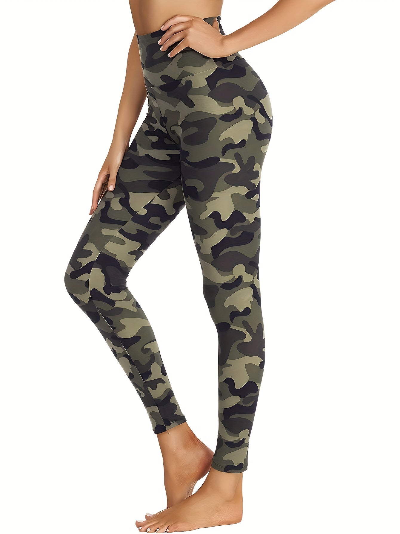 Camouflage Pattern High Waist Sports Leggings, Yoga Running Fitness Tight Pants, Women's Activewear