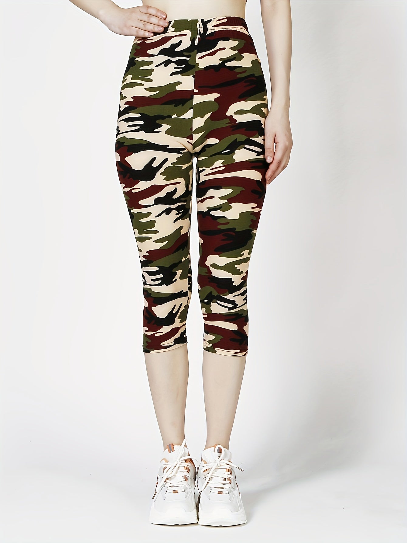 Camouflage Print Skinny Leggings, Casual High Waist Capris Leggings, Women's Clothing