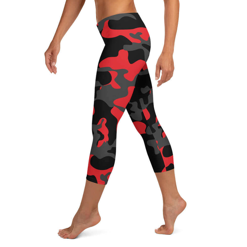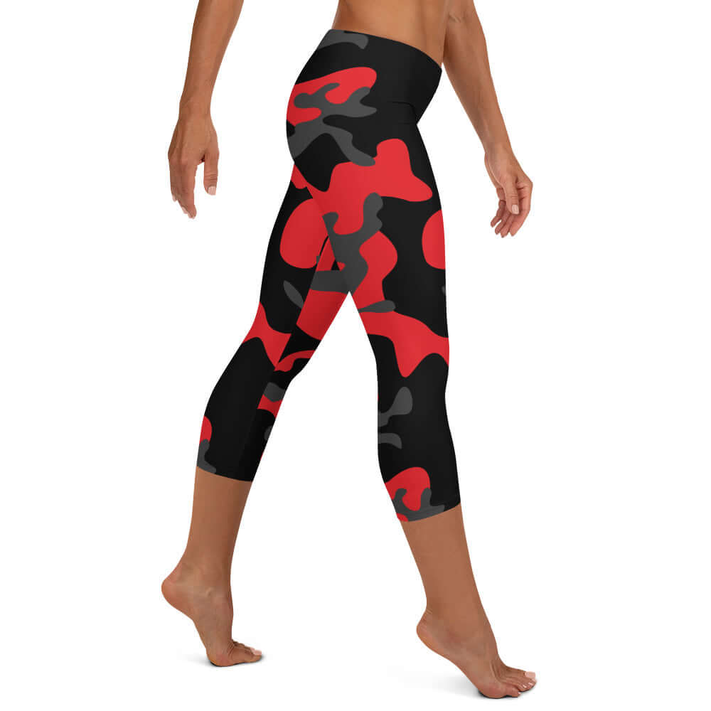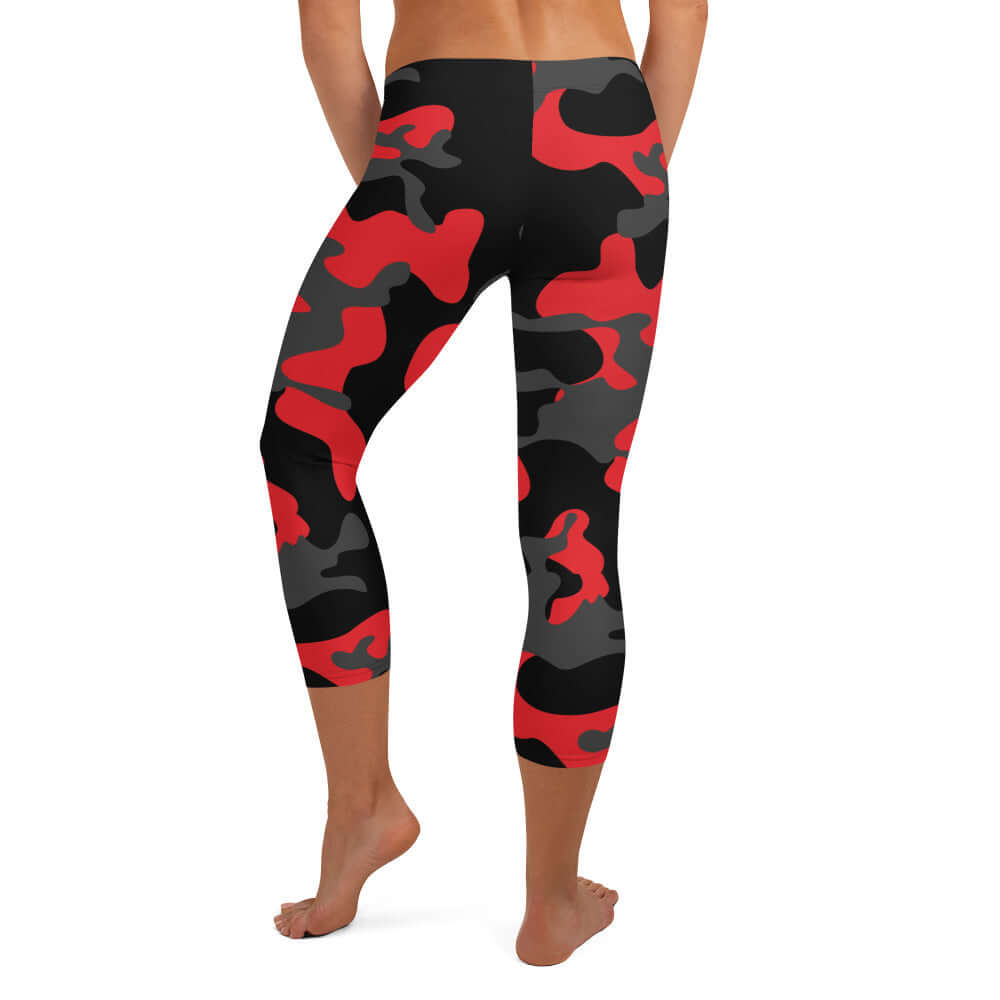 These Capri Leggings in Army Style Red & Black Camouflage are perfect for adding a unique touch to your workout or everyday wardrobe. Made with high-quality materials and a comfortable fit, these leggings provide both style and functionality. Upgrade your look with a touch of boldness and stand out from the crowd.