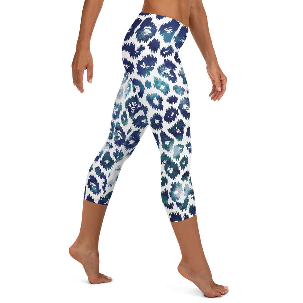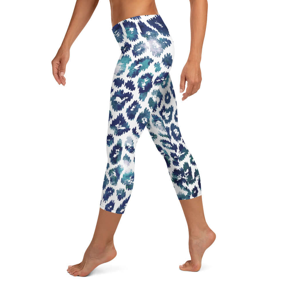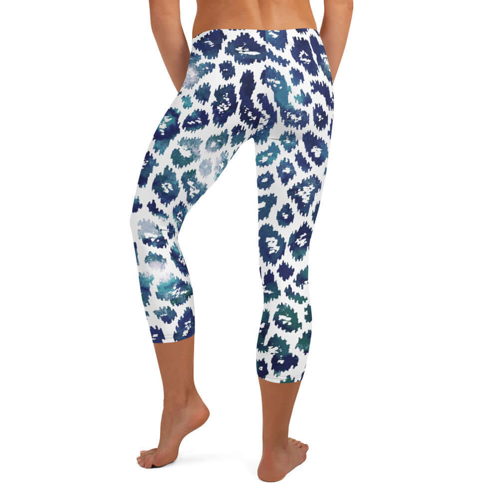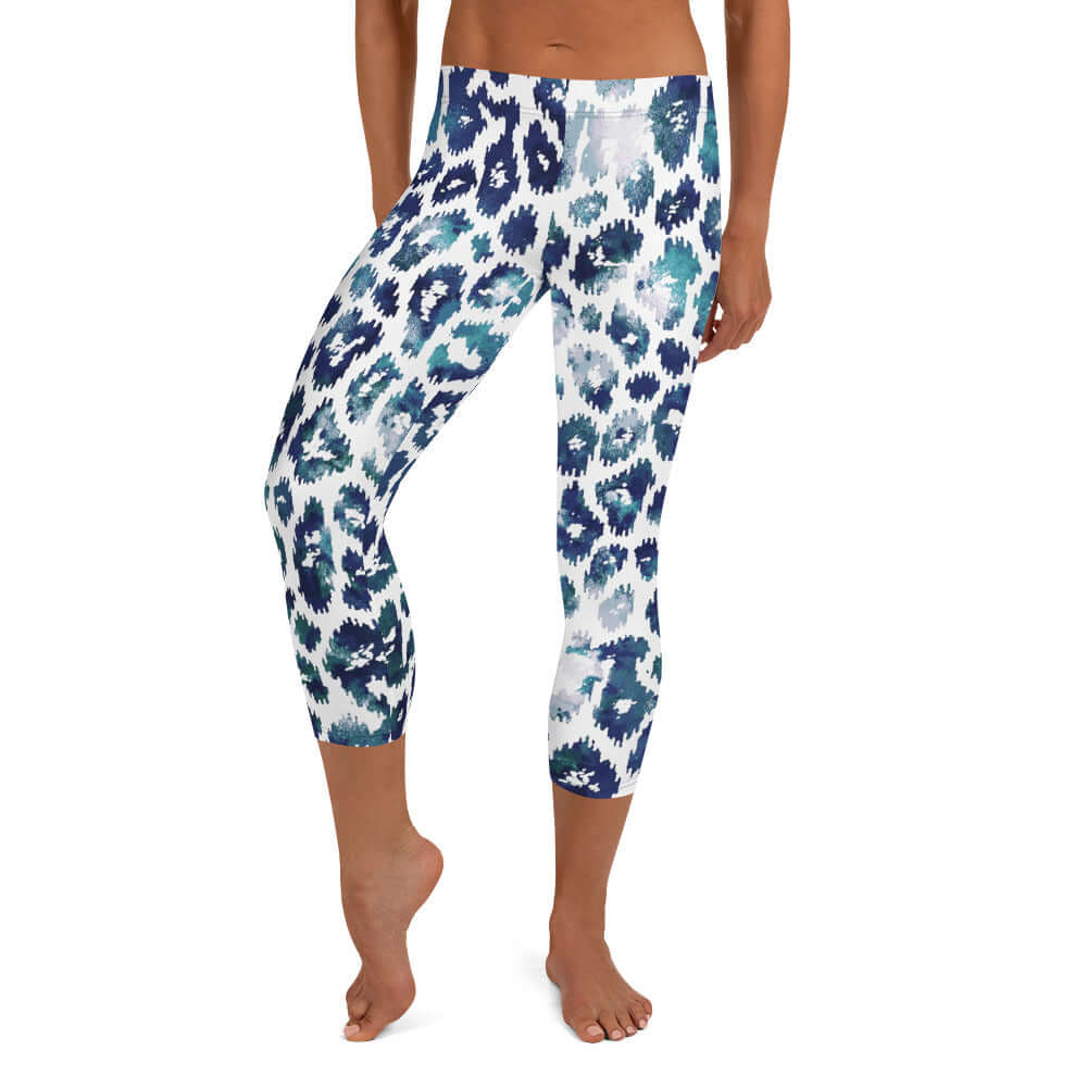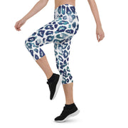 Capri Leggings | Blue and White Leopard Print