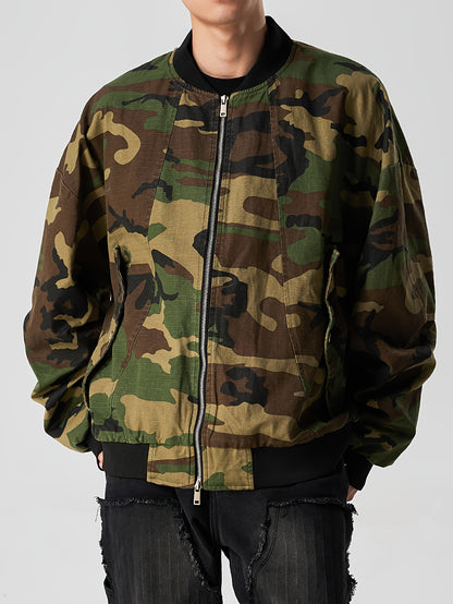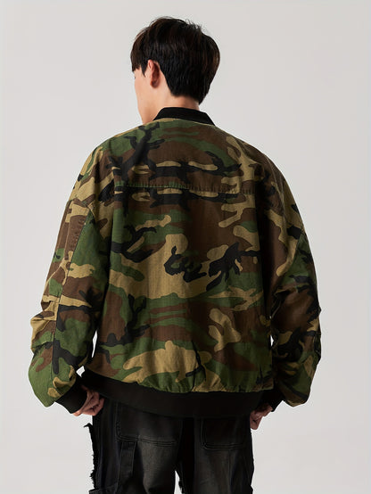 Casual Camo Print Bomber Jacket for Women, Zip-Up Outerwear
