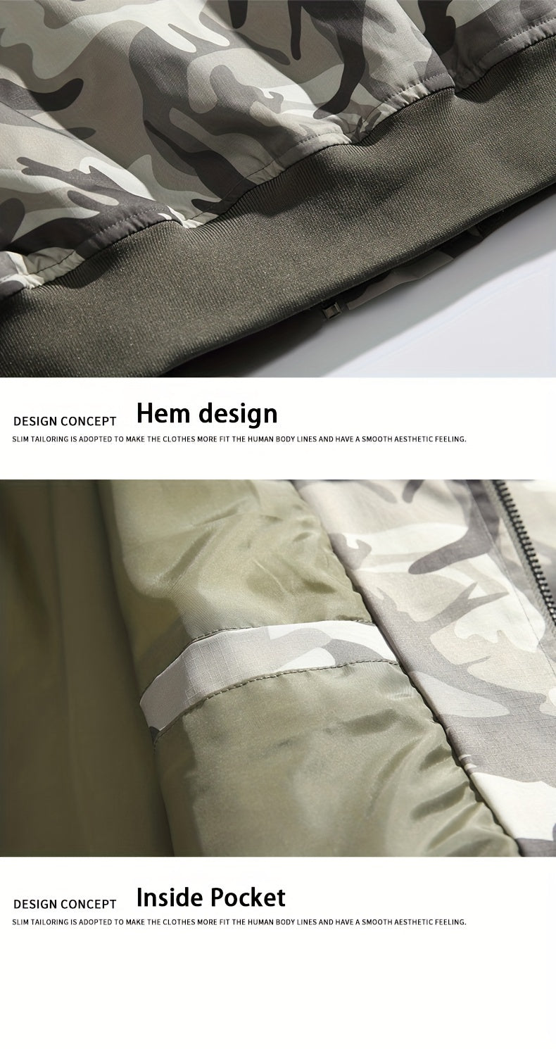 Casual Men's Camo Bomber Jacket, Polyester, for Outdoor Activities