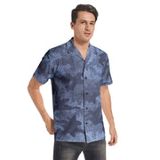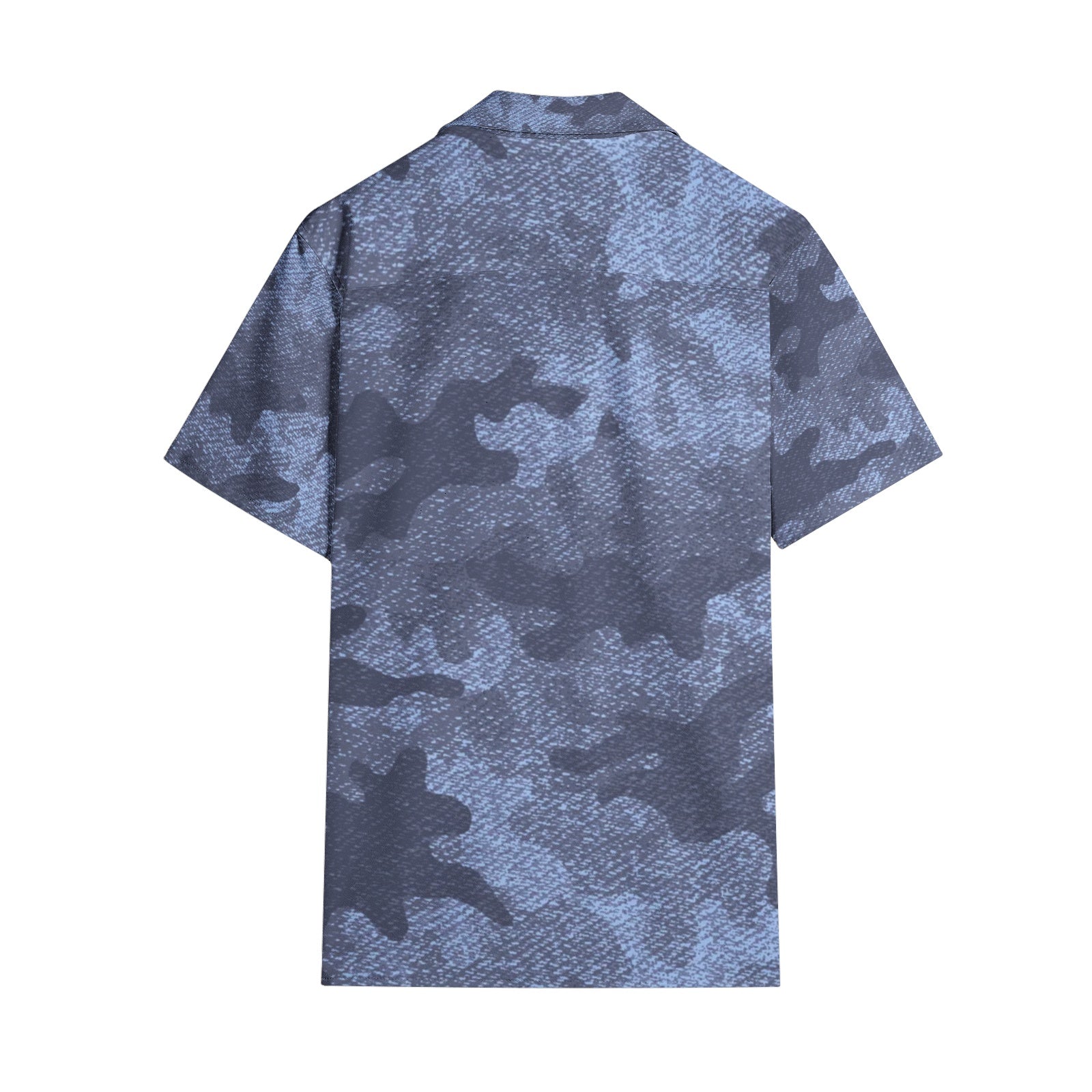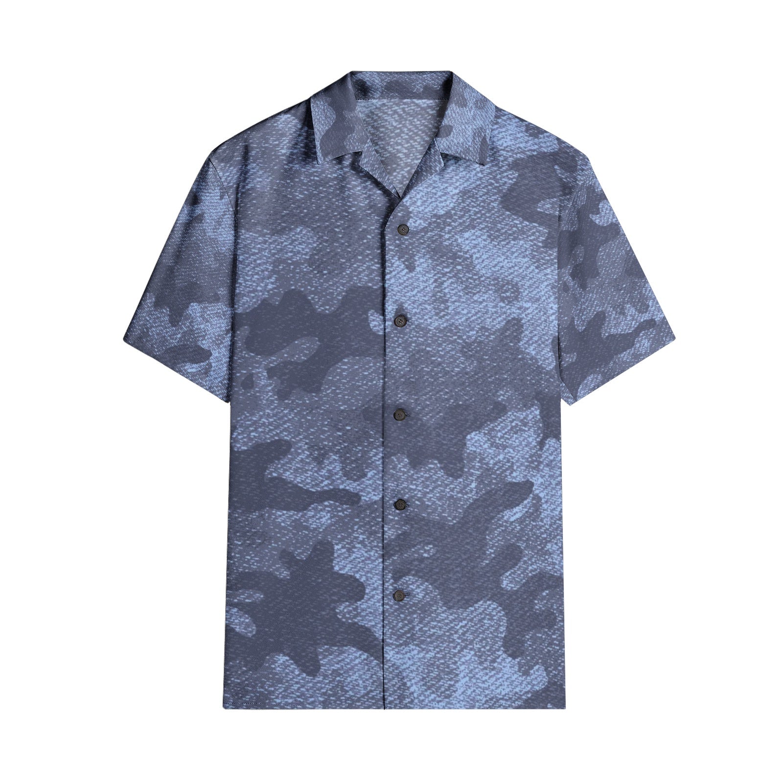 Cotton Camo Shirt For Men | Denim Blue Short-Sleeve