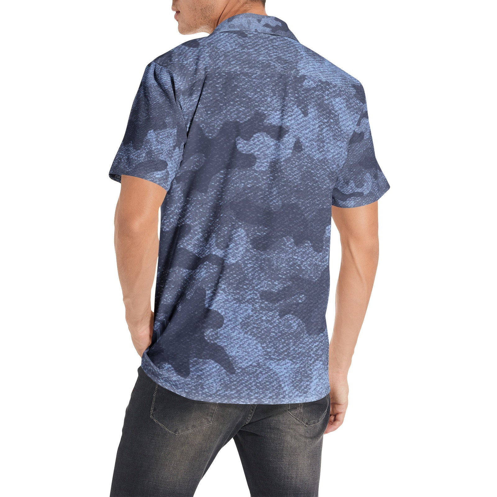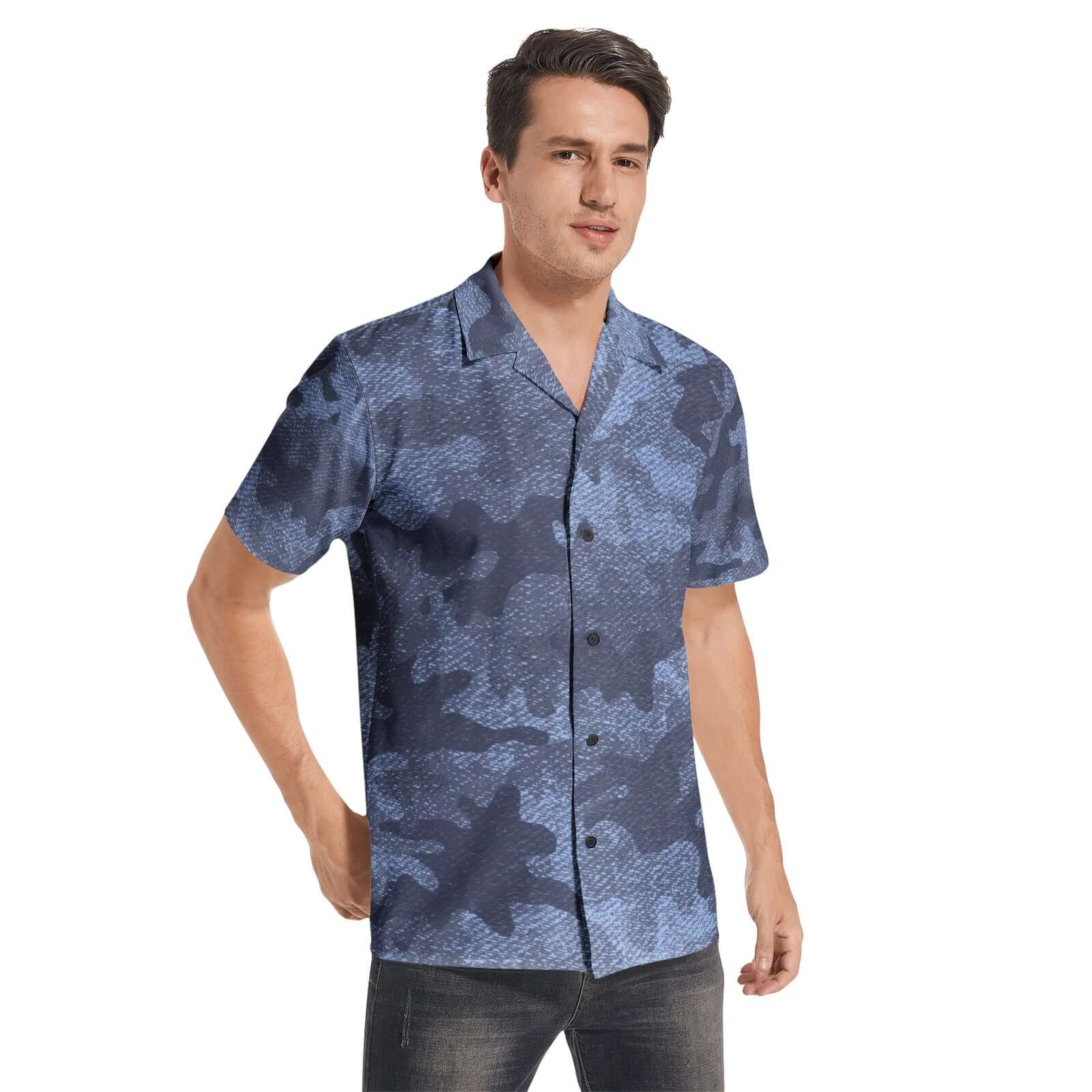 This Cotton Camo Shirt For Men in Denim Blue is both stylish and comfortable. Made from high-quality cotton, it features a unique camouflage pattern and short-sleeves for a cool and casual look. Perfect for any occasion, it provides the perfect blend of fashion and comfort.
