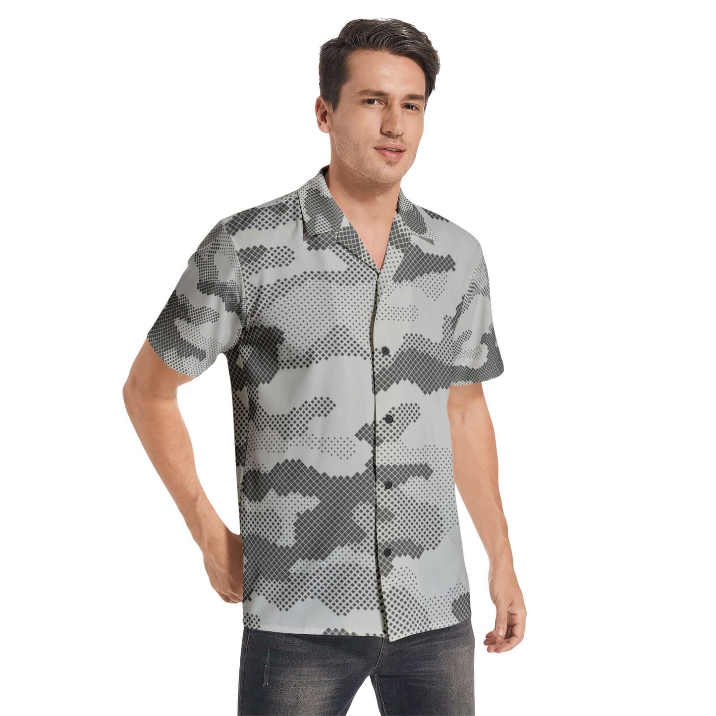 This Cotton Camo Shirt For Men features a stylish Gray Digital Short-Sleeve design, made from soft and breathable cotton fabric. Perfect for any casual occasion, this shirt offers both comfort and style, making it a must-have for any man's wardrobe. Stay cool and on-trend with this versatile piece.