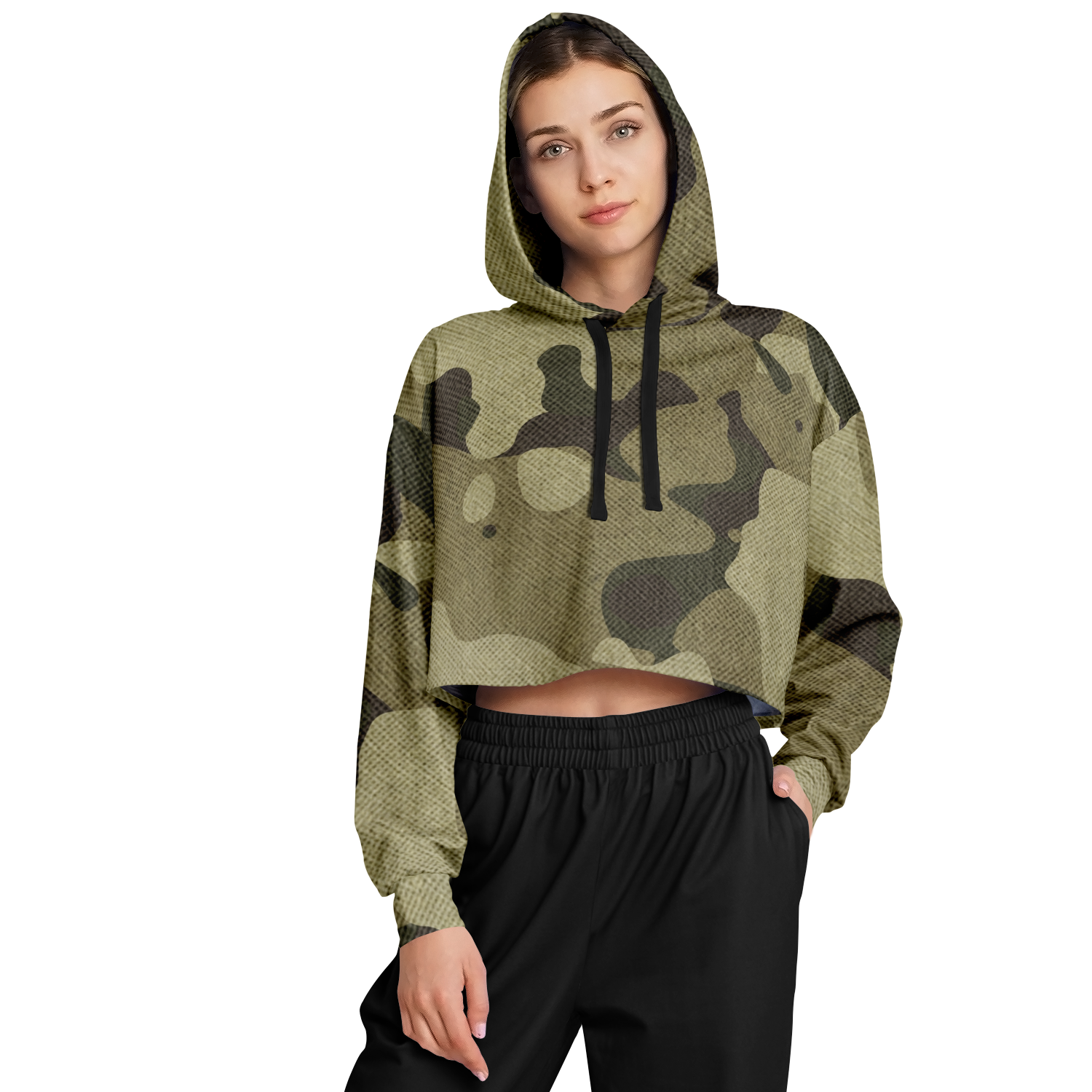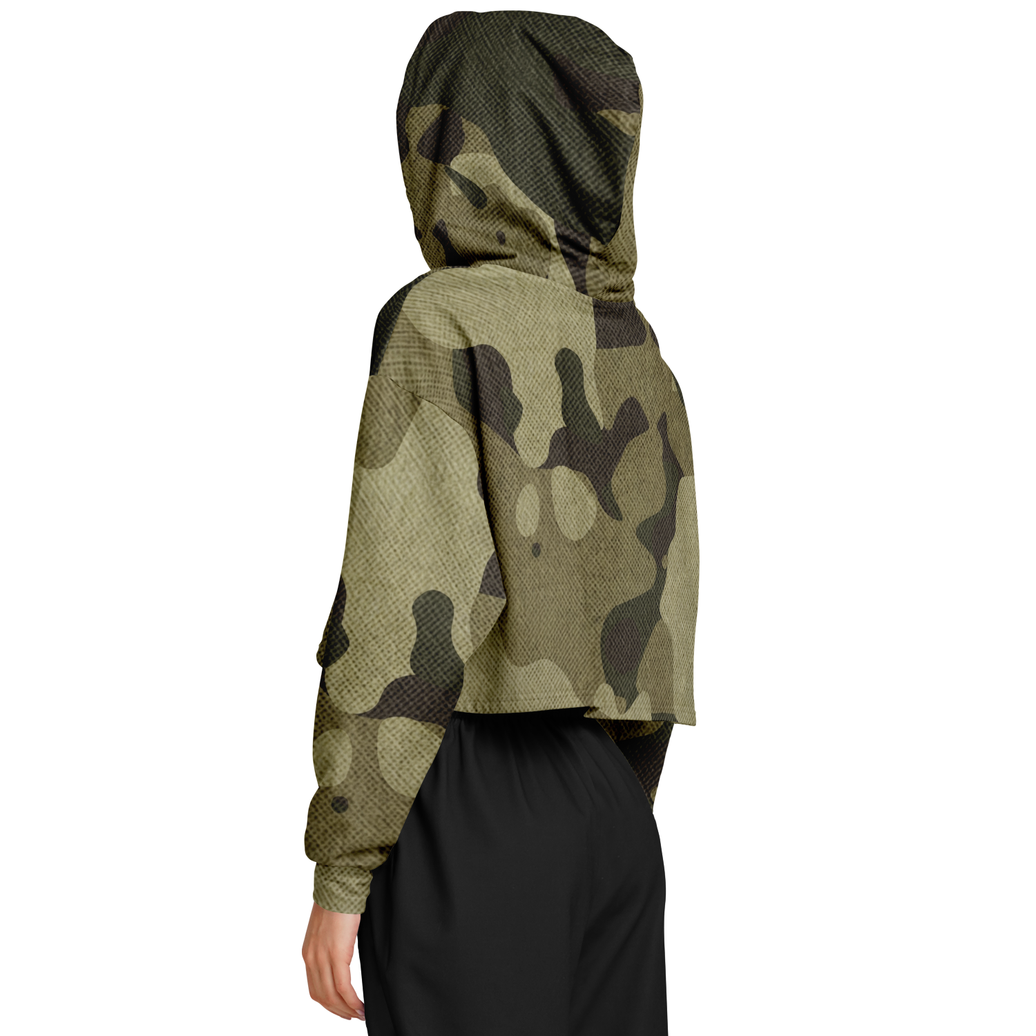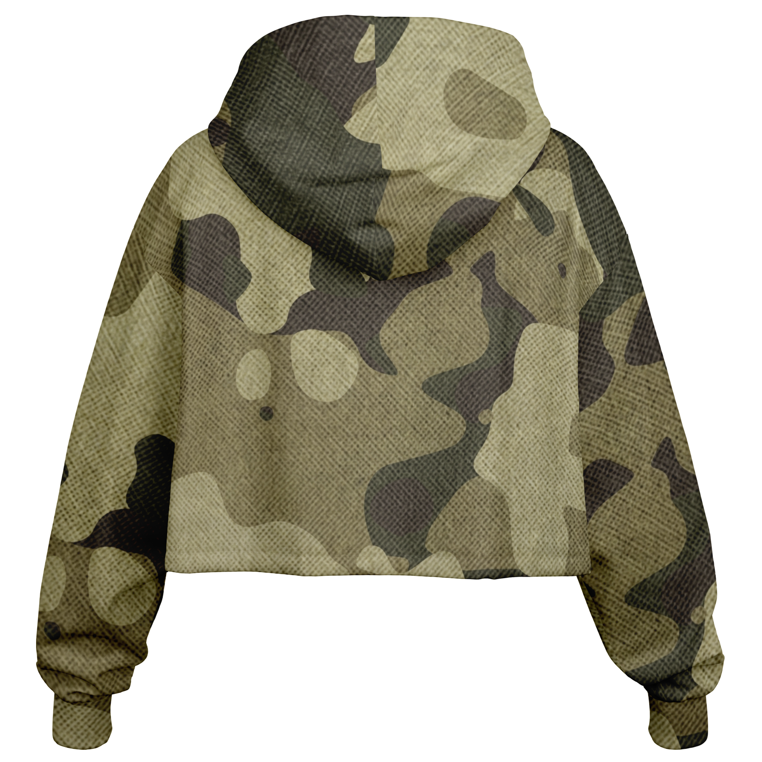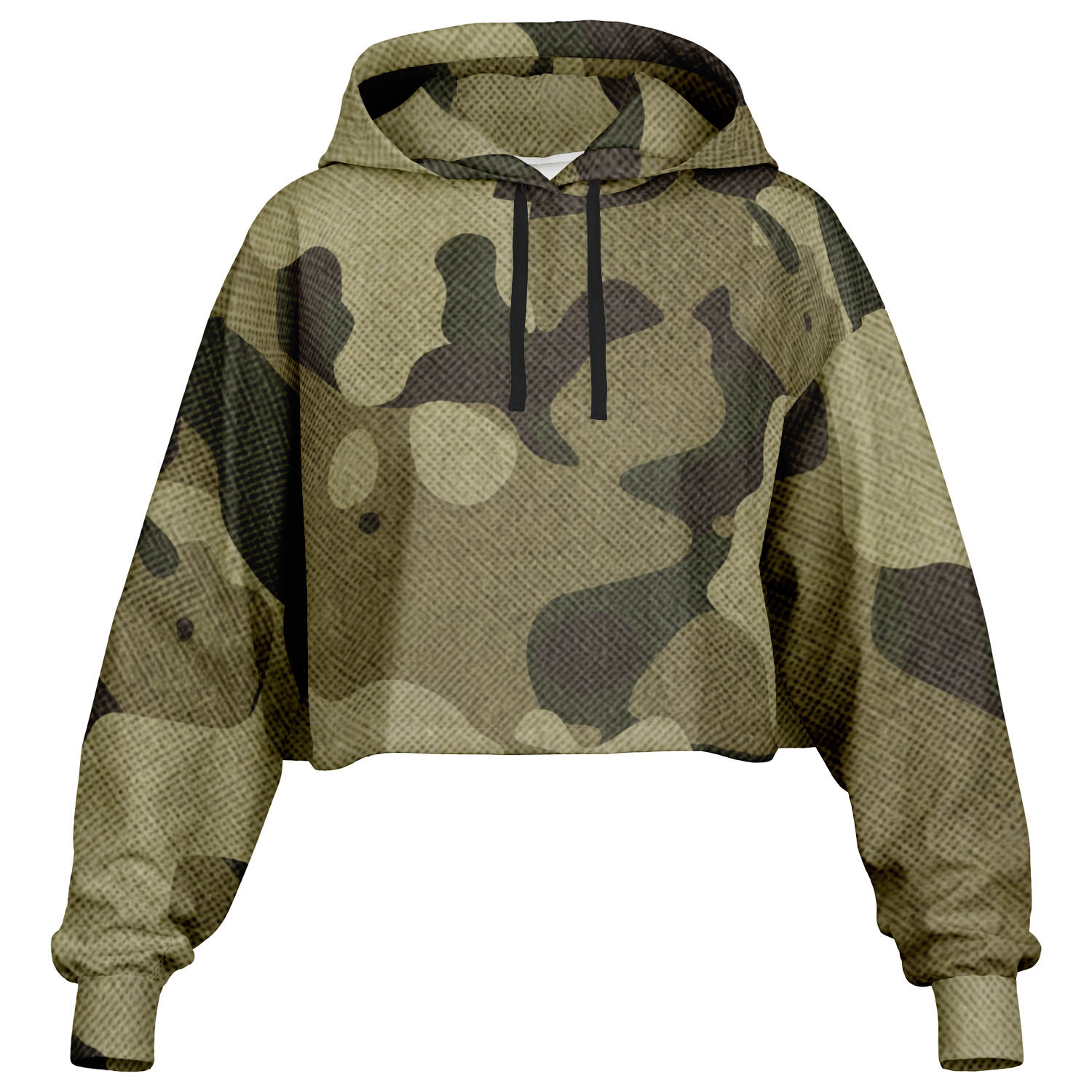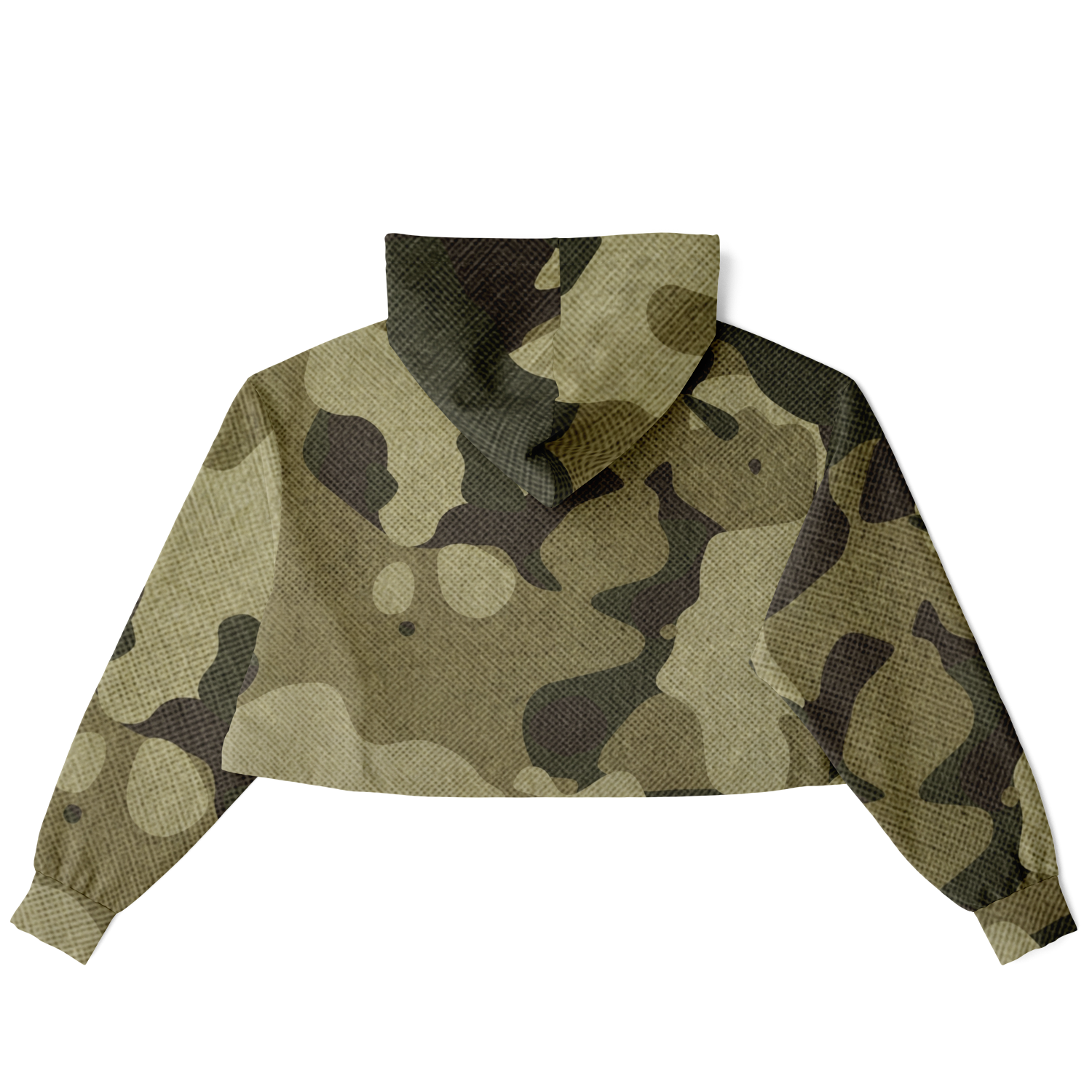 Cropped Hoodie For Women | Green Fabric Camouflage