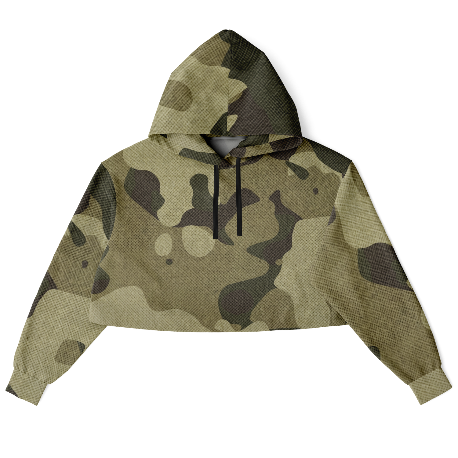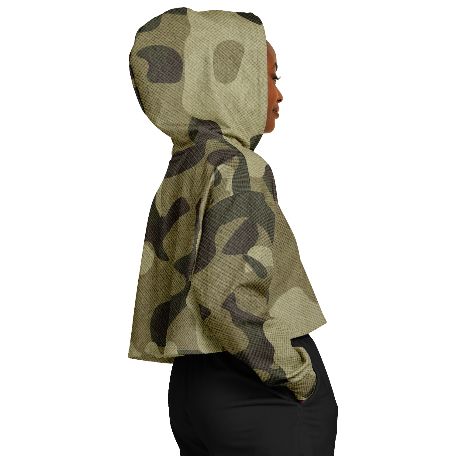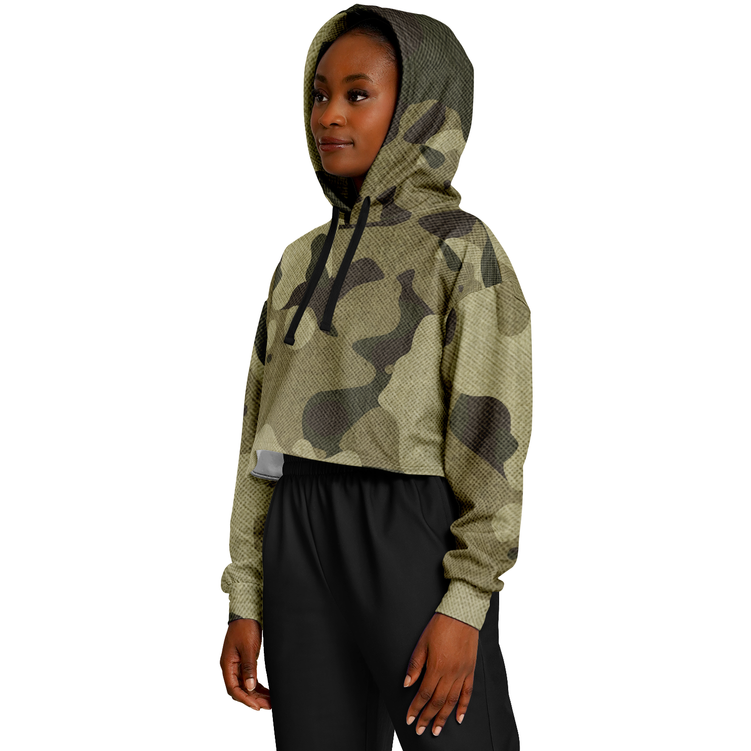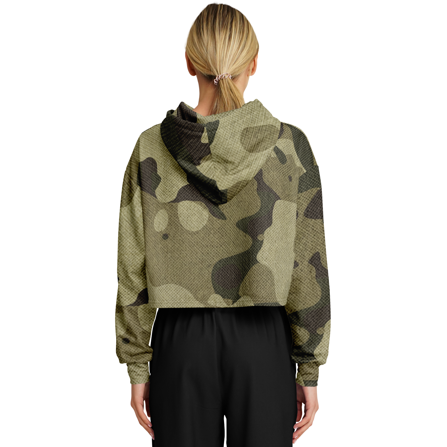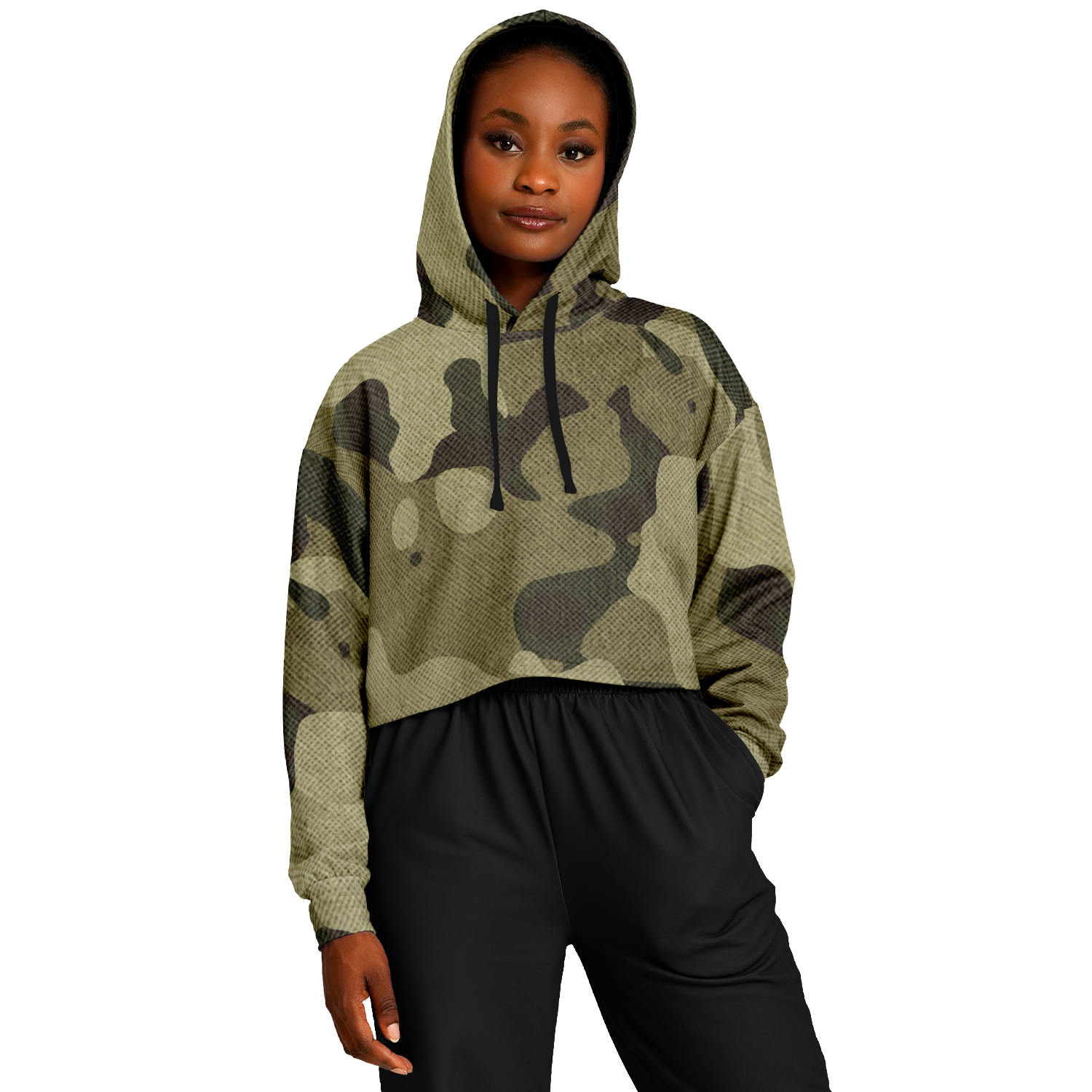 Cropped Hoodie For Women | Green Fabric Camouflage