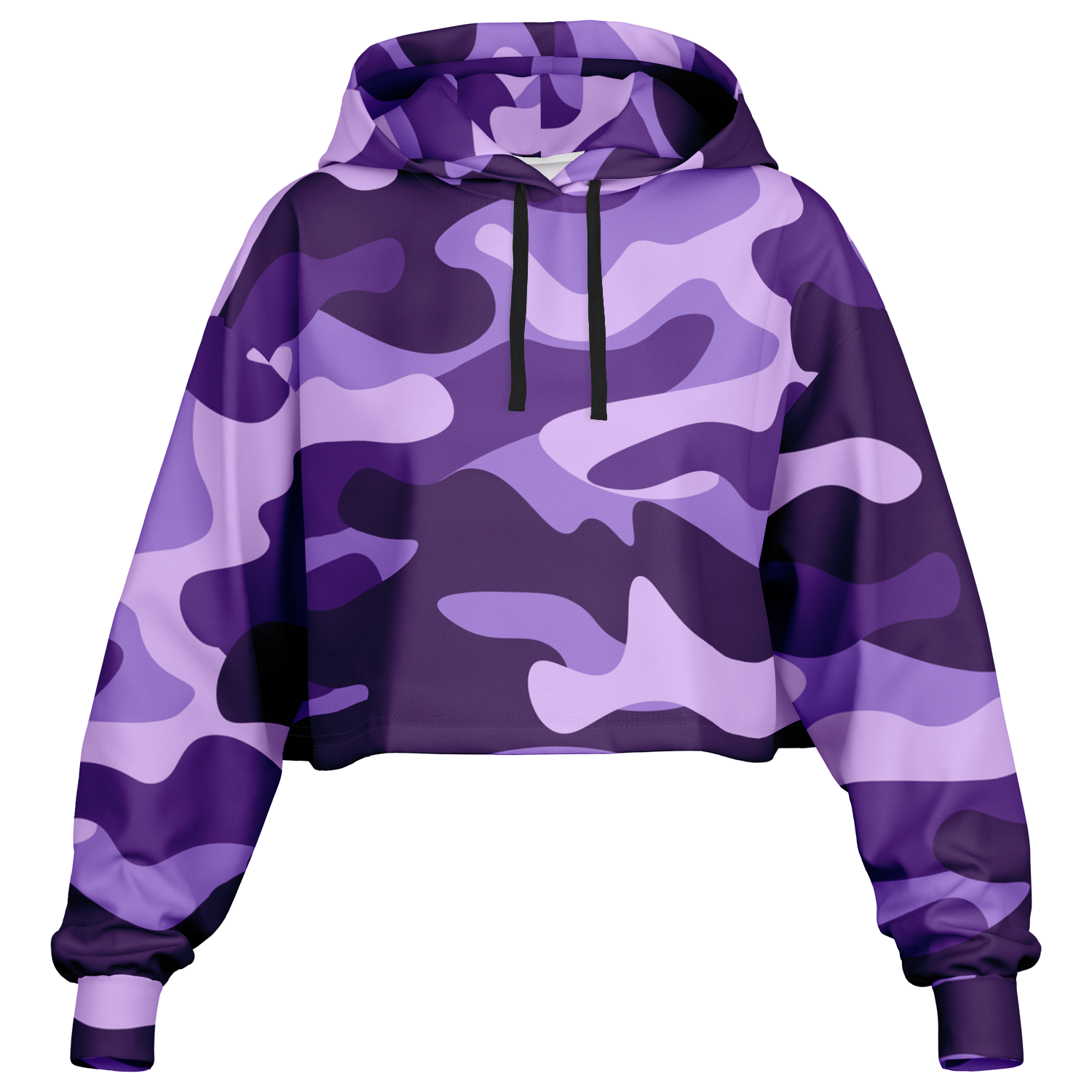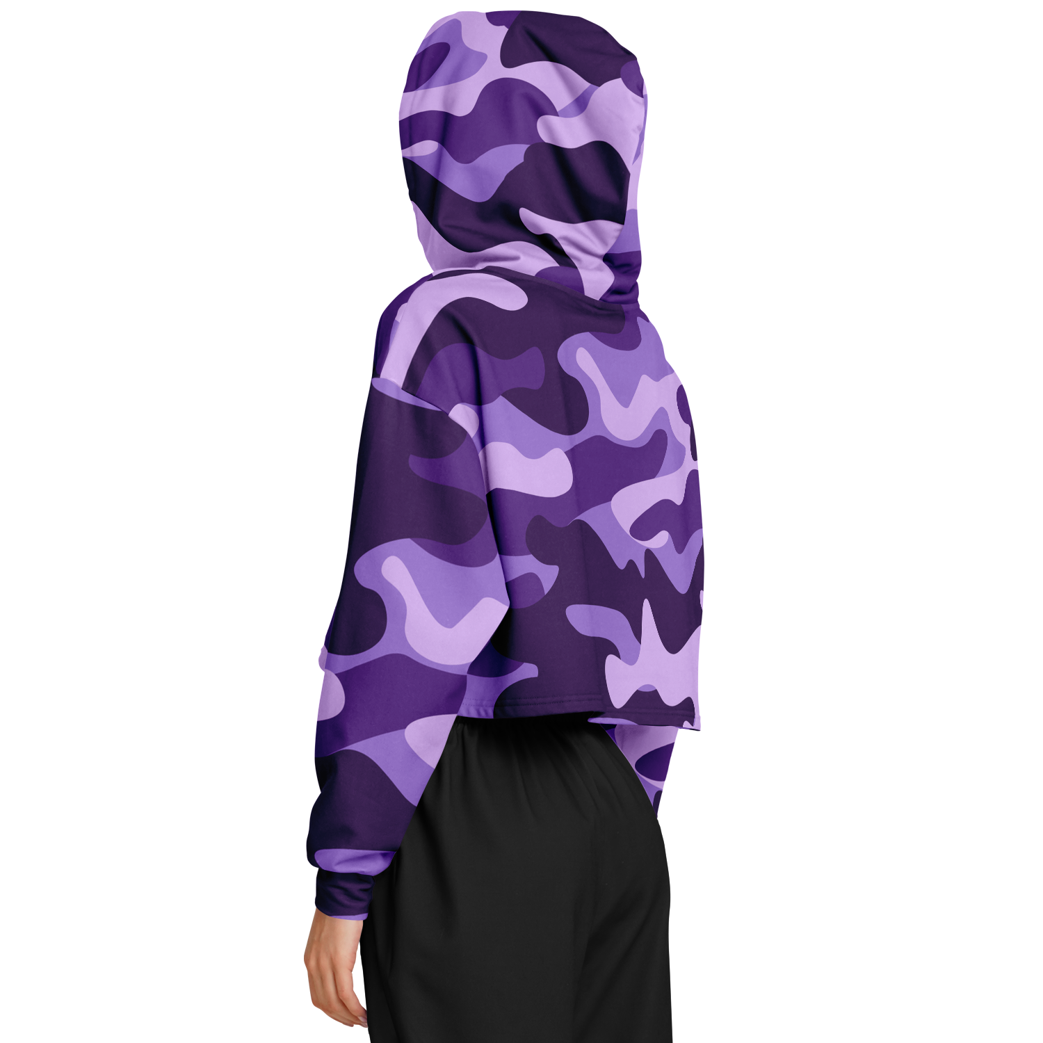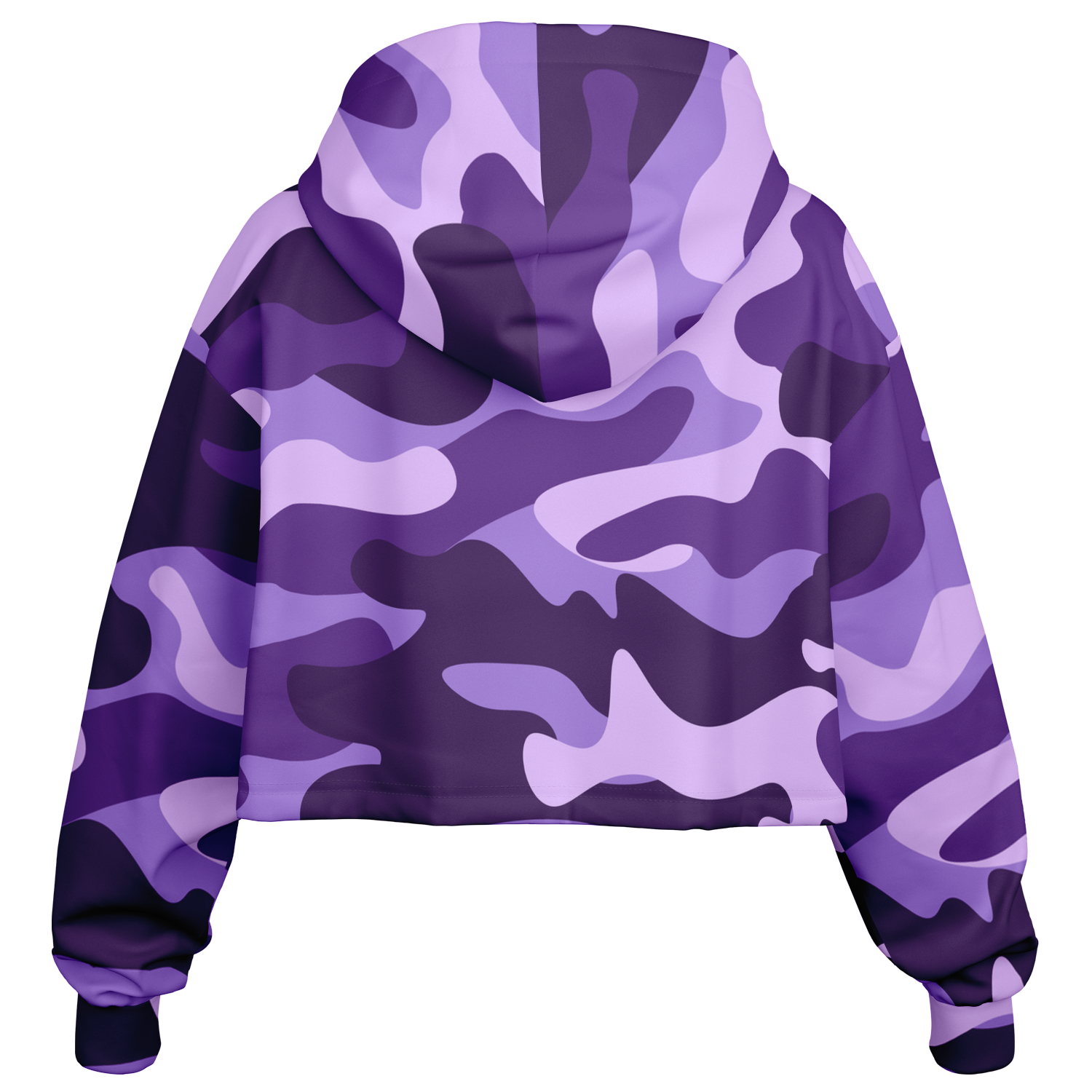Cropped Hoodie For Women | Purple, Blue and Mauve Camouflage