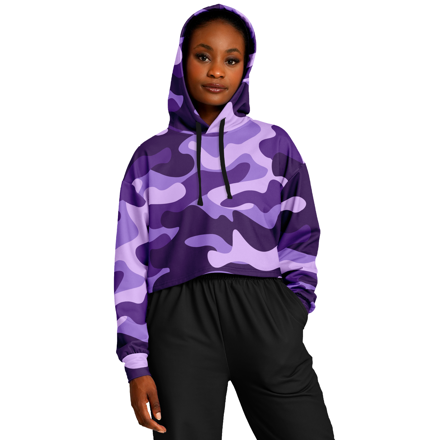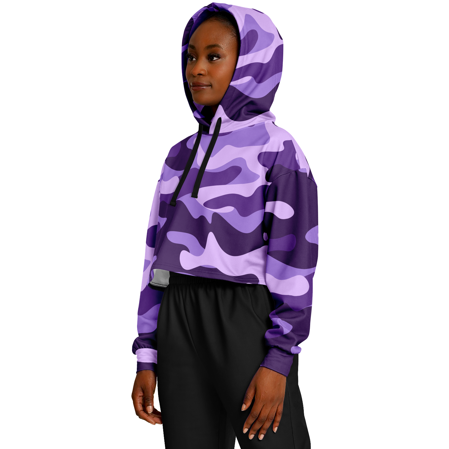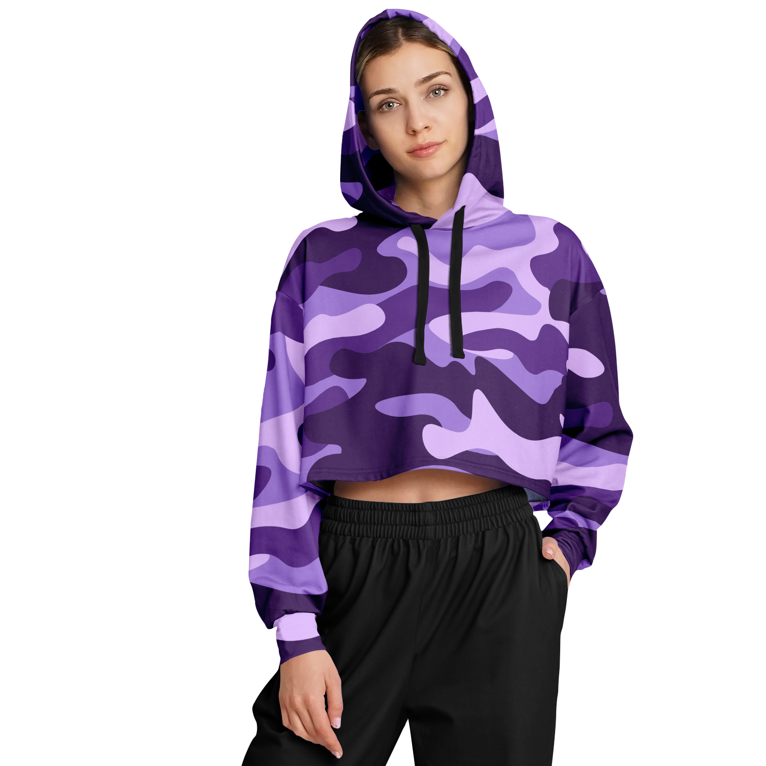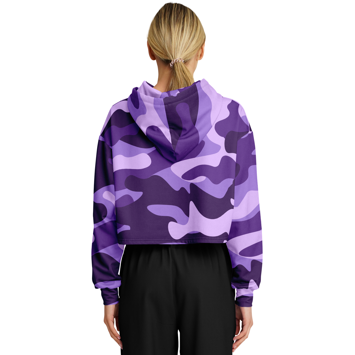 Cropped Hoodie For Women | Purple, Blue and Mauve Camouflage