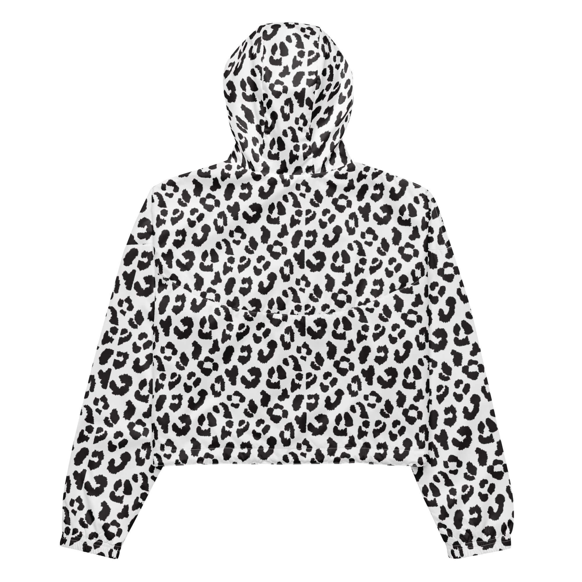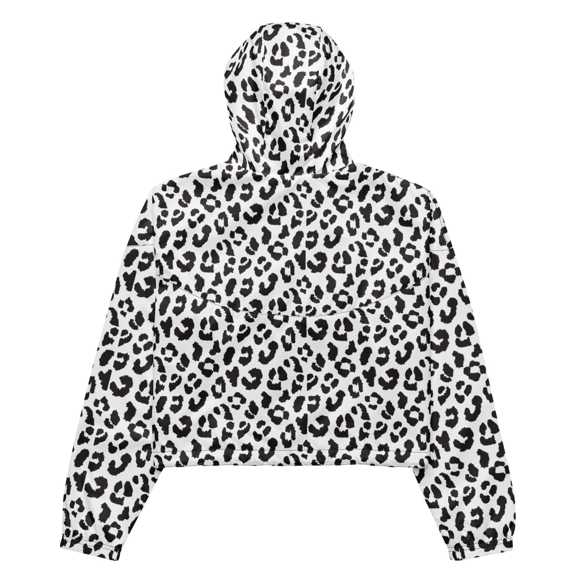 This cropped windbreaker features a bold black and white leopard pattern, adding a fierce touch to any outfit. Designed for style and function, it offers protection from the wind while flattering your figure. Embrace the trend and make a statement with this statement piece.