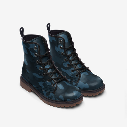 The Dark Blue Camo Boots are the perfect combination of style and functionality. Made with lightweight leather, they offer a comfortable and durable option for everyday wear. The unique dark blue camo design adds a touch of individuality to any outfit. Upgrade your footwear game with these lightweight boots.