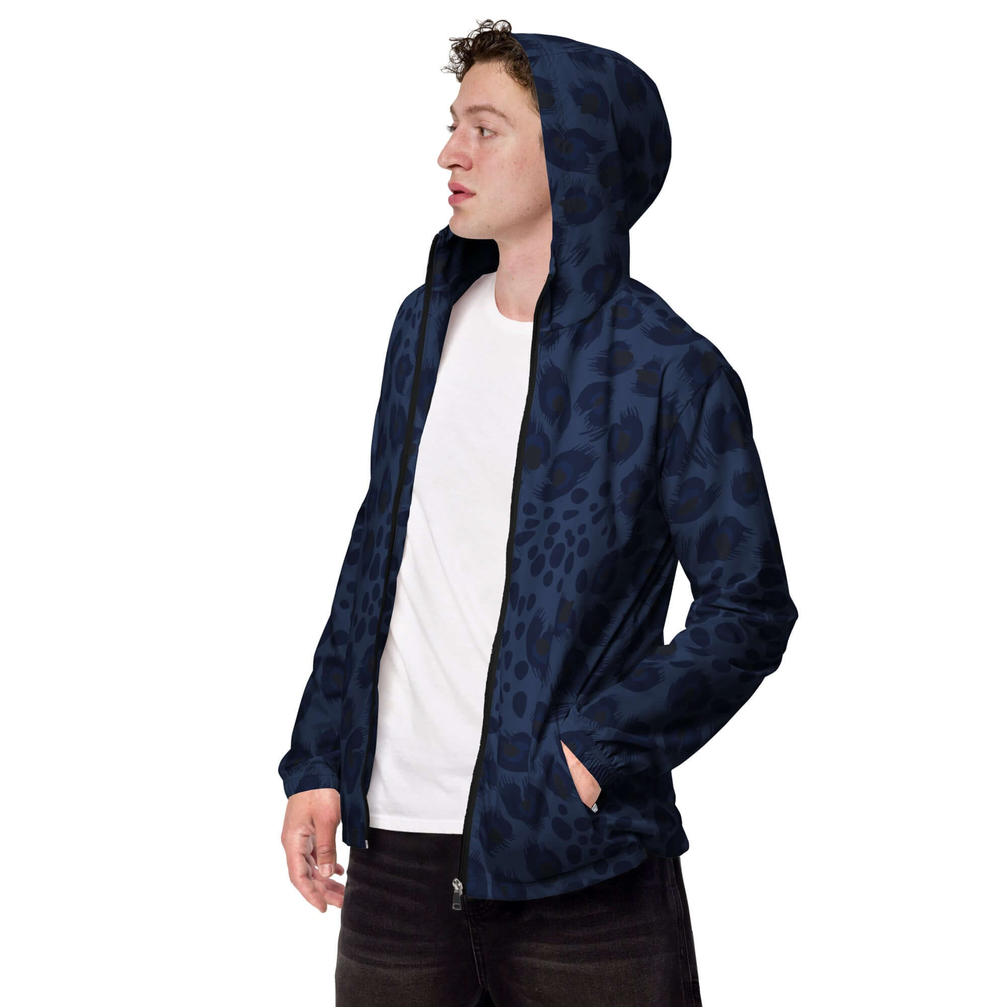 Introducing our Deep Blue Leopard Print Windbreaker for Men. Made from durable materials, this stylish windbreaker is perfect for any outdoor adventure. The bold leopard print adds a touch of flair to this functional piece. Stay protected and fashionable at the same time with our windbreaker.