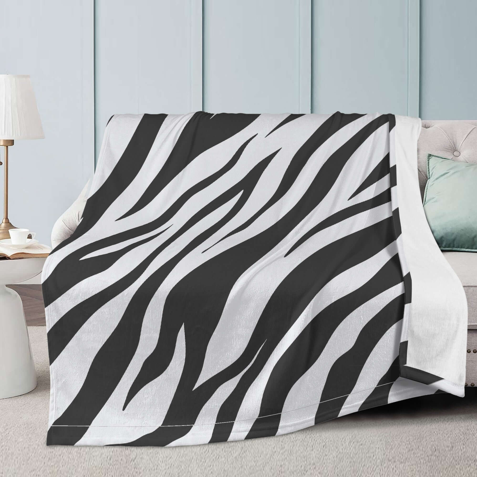 Double-sided Stitched Blanket | Black & White Zebra Print