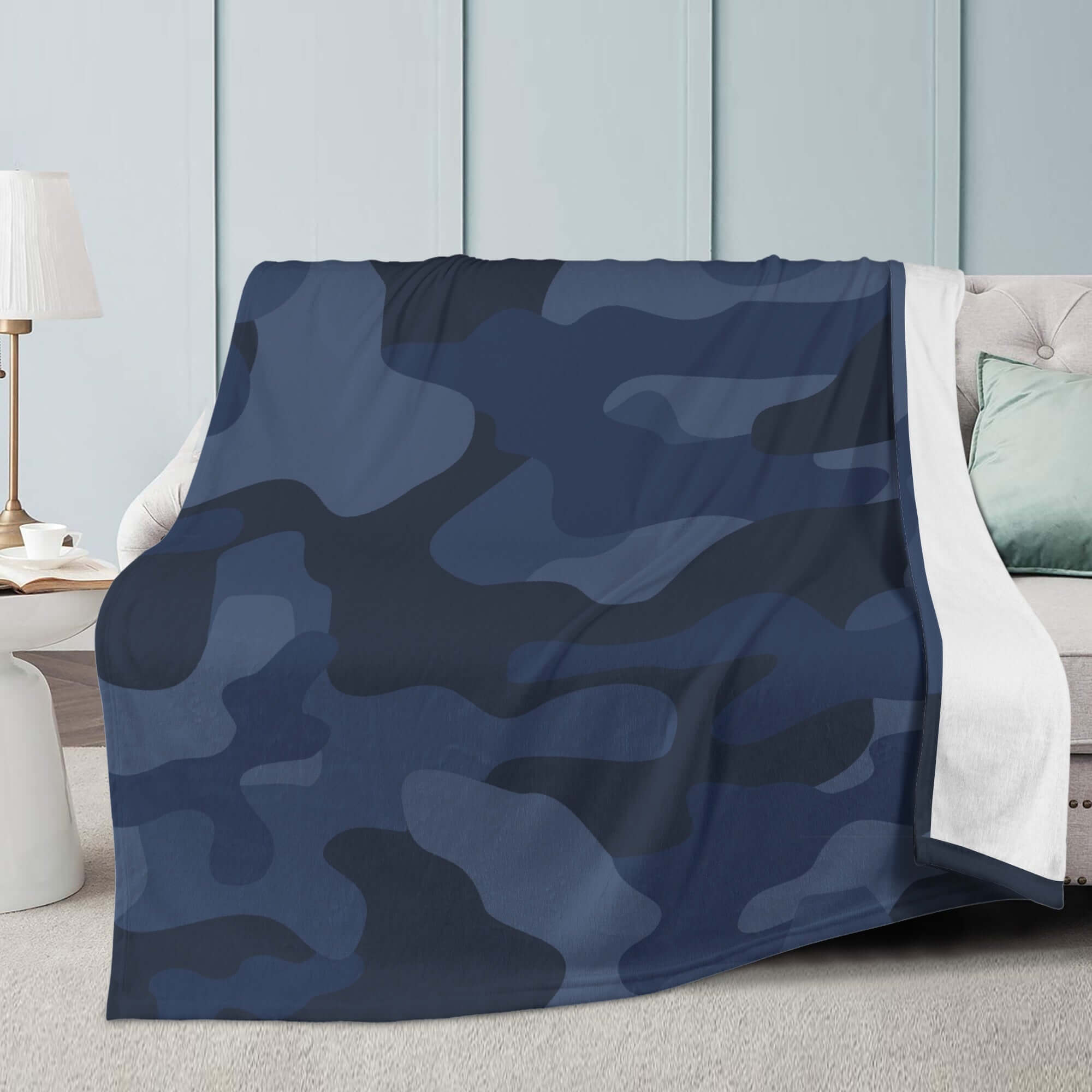 Double-sided Stitched Blanket | Deep Blue Camouflage