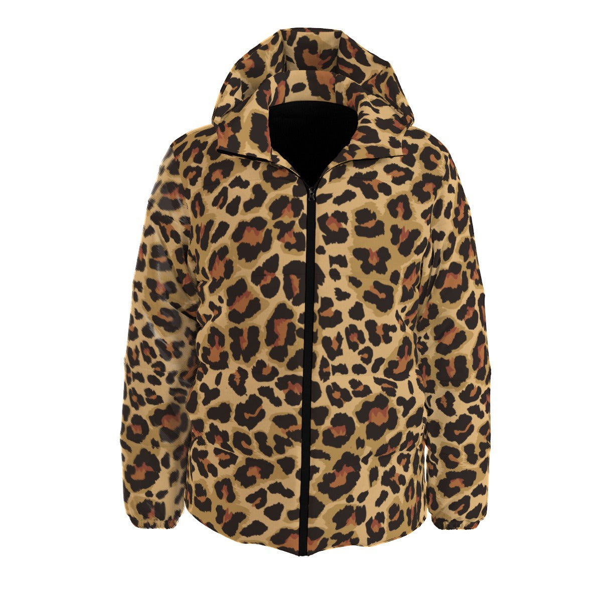 Experience ultimate warmth and style with our Down Jacket in a bold Leopard Brown and Black Print. Featuring genuine down filling, this hooded puffer jacket offers superior insulation for colder temperatures. Stay fashionably cozy while tackling the elements.