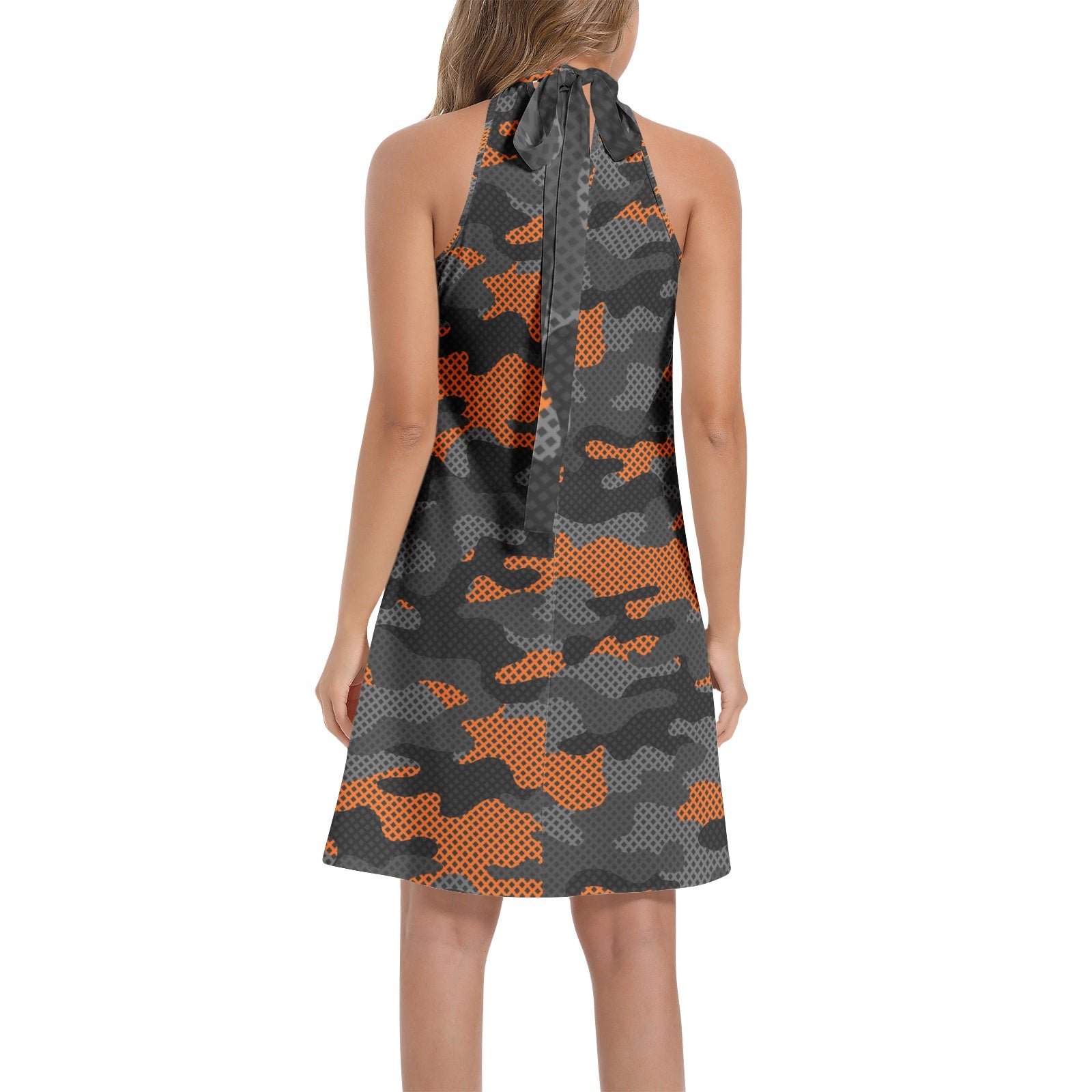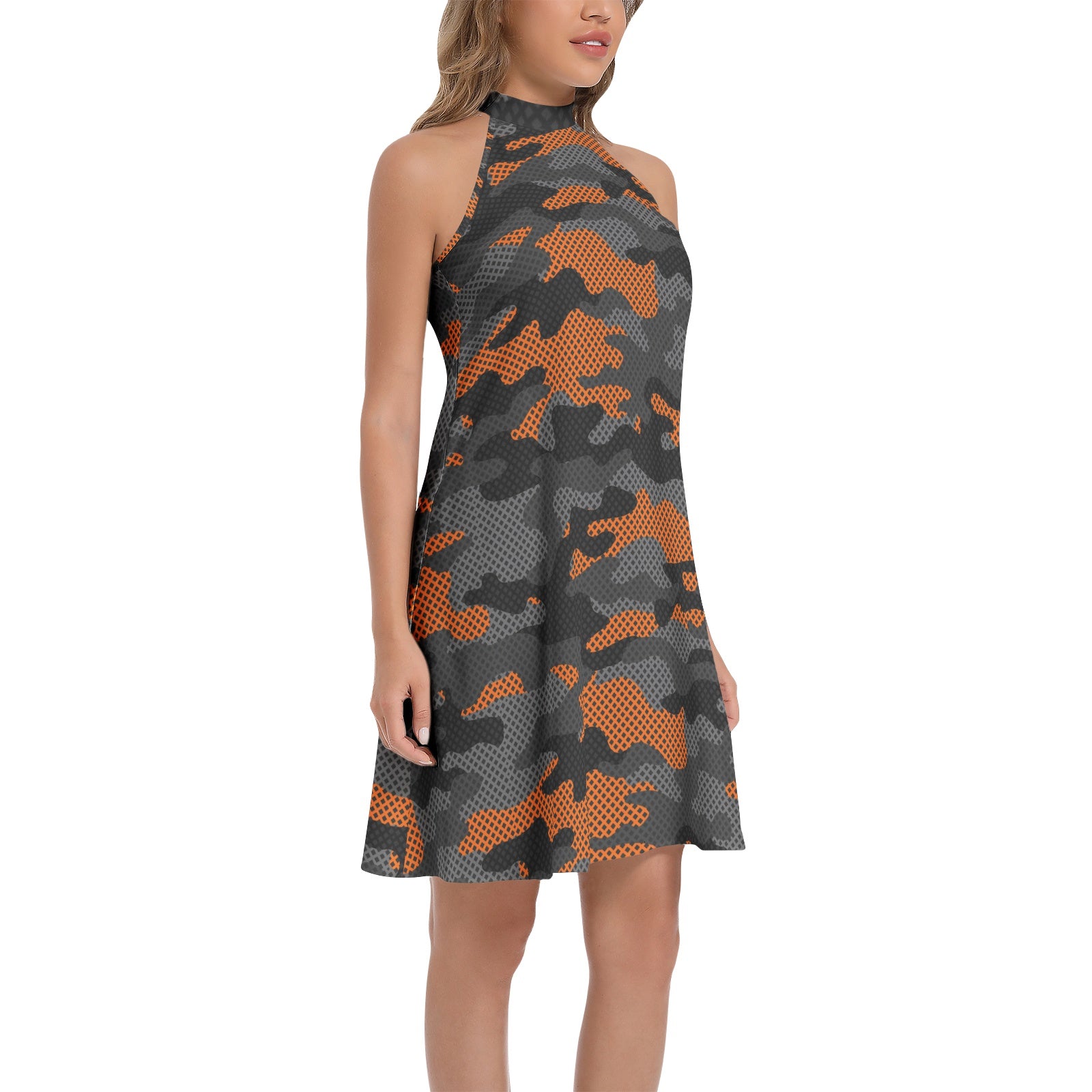 Flared Camo Dress | Halter Neck | Black and Orange Pixel