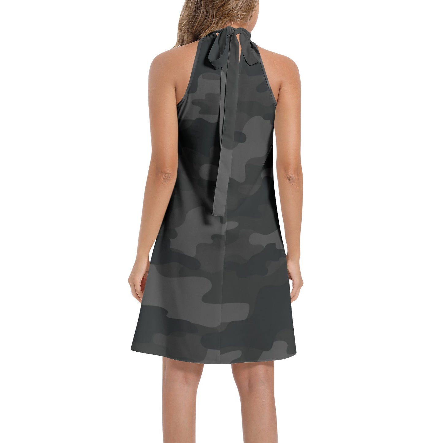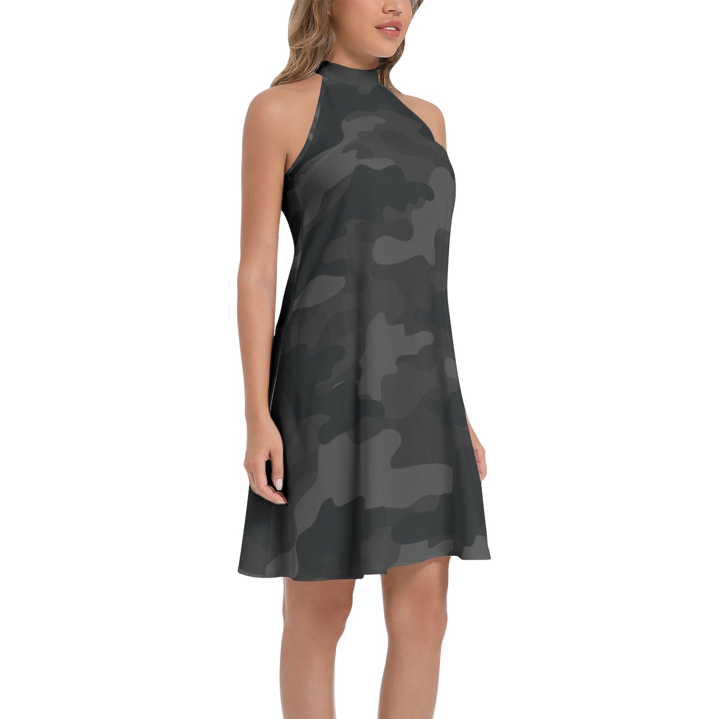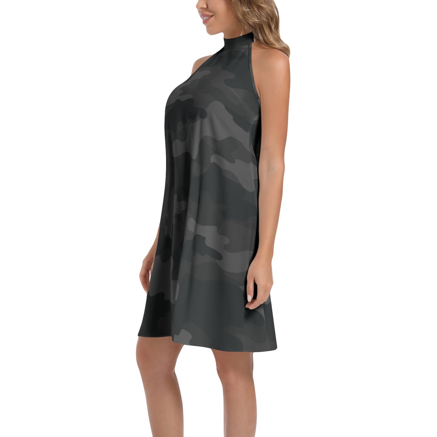 Flared Camo Dress | Halter Neck | Black Camouflage