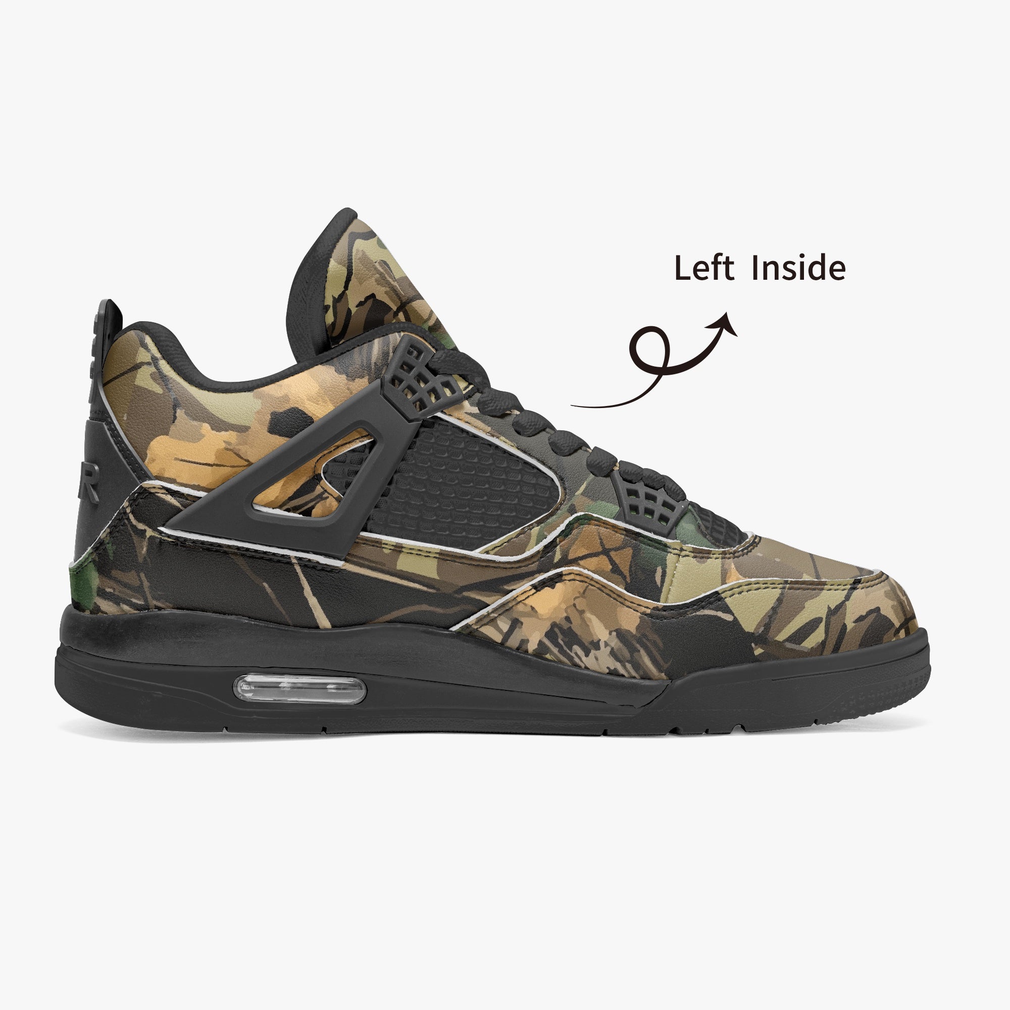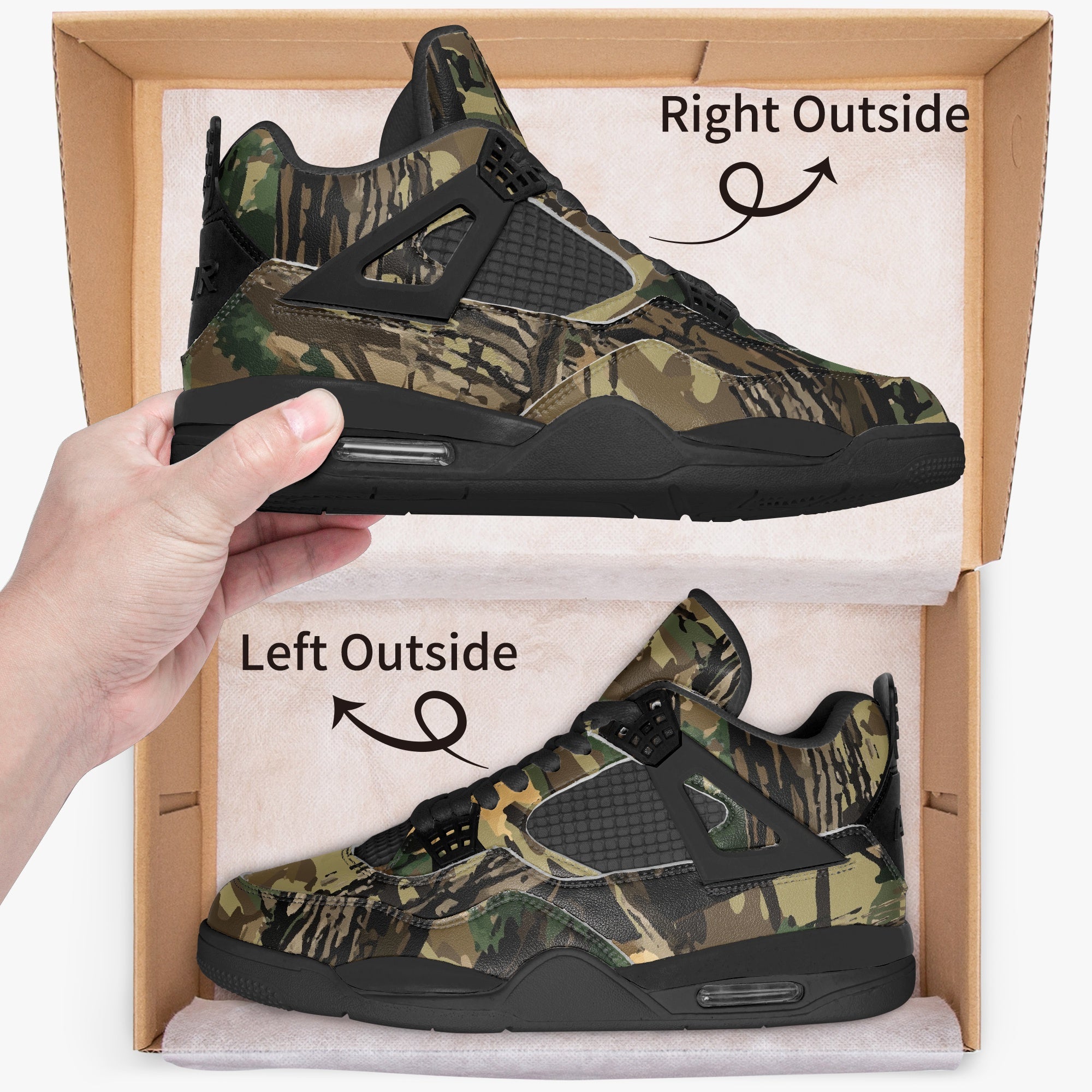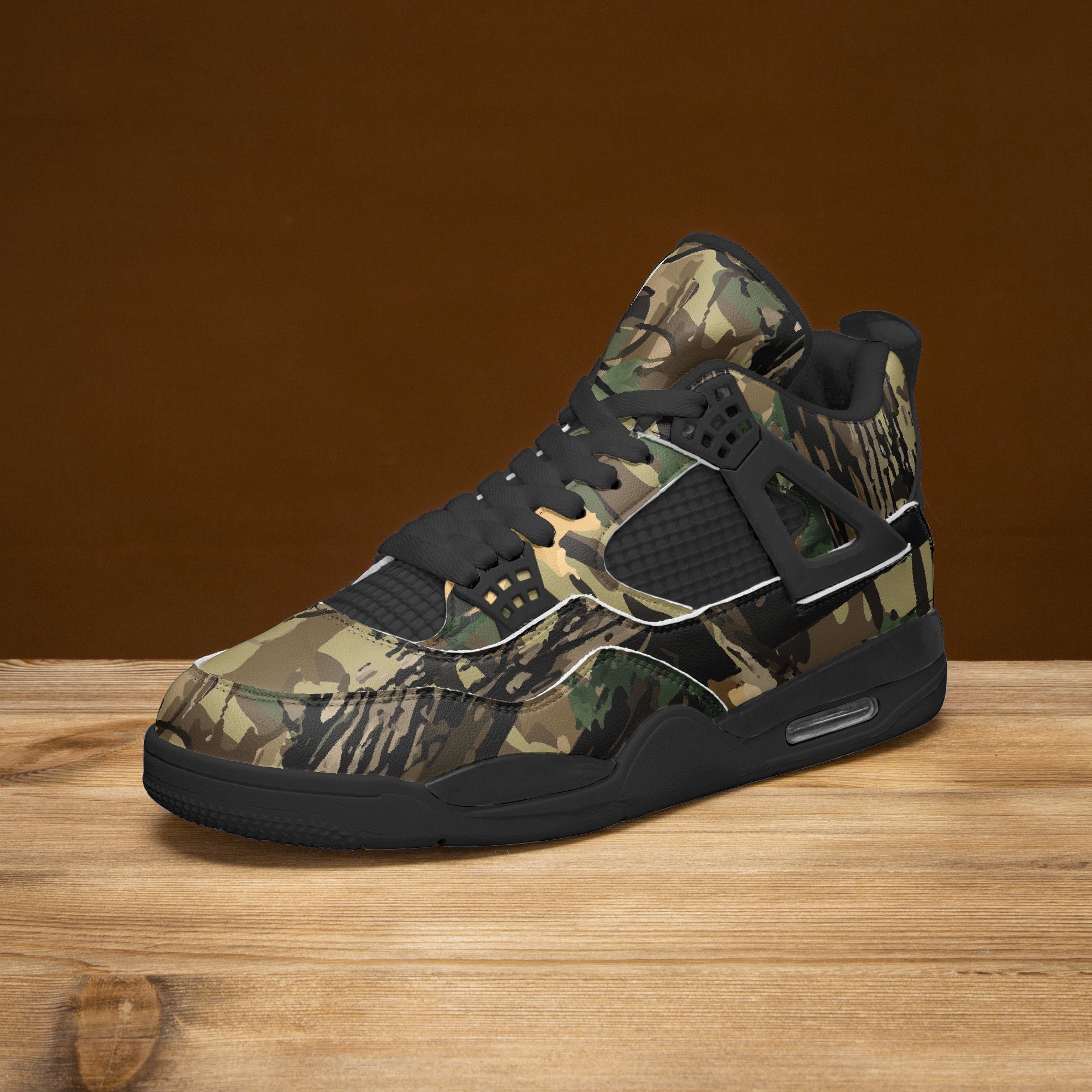 These Forest Green Sneakers boast an AJ4 style and feature a unique Hunting Camouflage design. Made for both fashion and function, these sneakers are perfect for any outdoor enthusiast. The striking forest green color and camo pattern make a statement while providing grip and durability for any terrain.