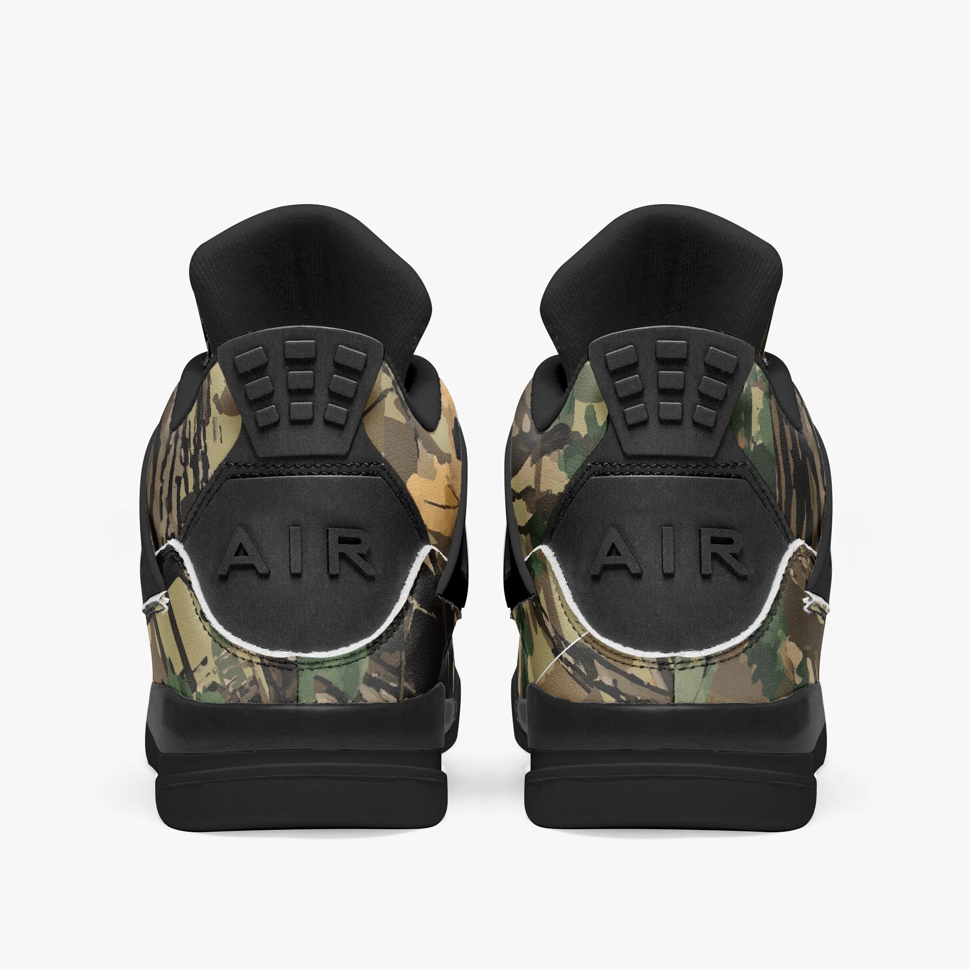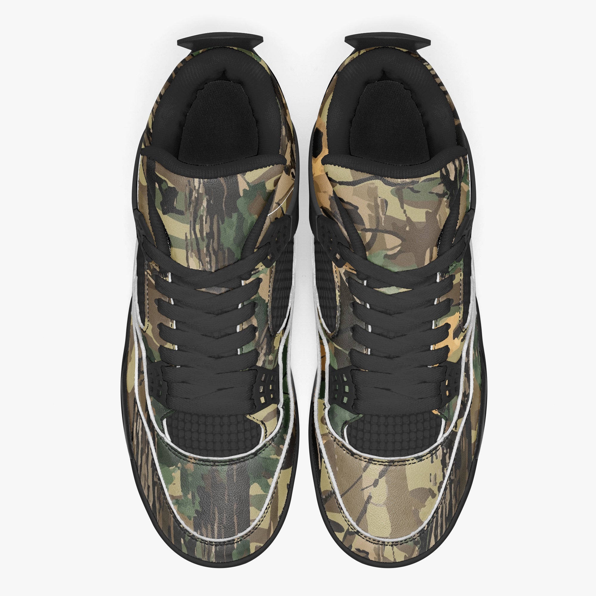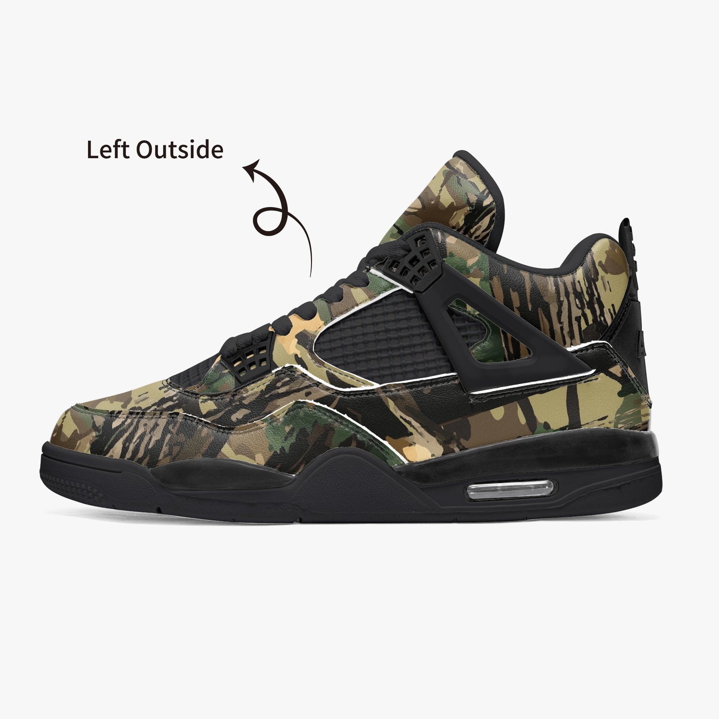 These Forest Green Sneakers boast an AJ4 style and feature a unique Hunting Camouflage design. Made for both fashion and function, these sneakers are perfect for any outdoor enthusiast. The striking forest green color and camo pattern make a statement while providing grip and durability for any terrain.
