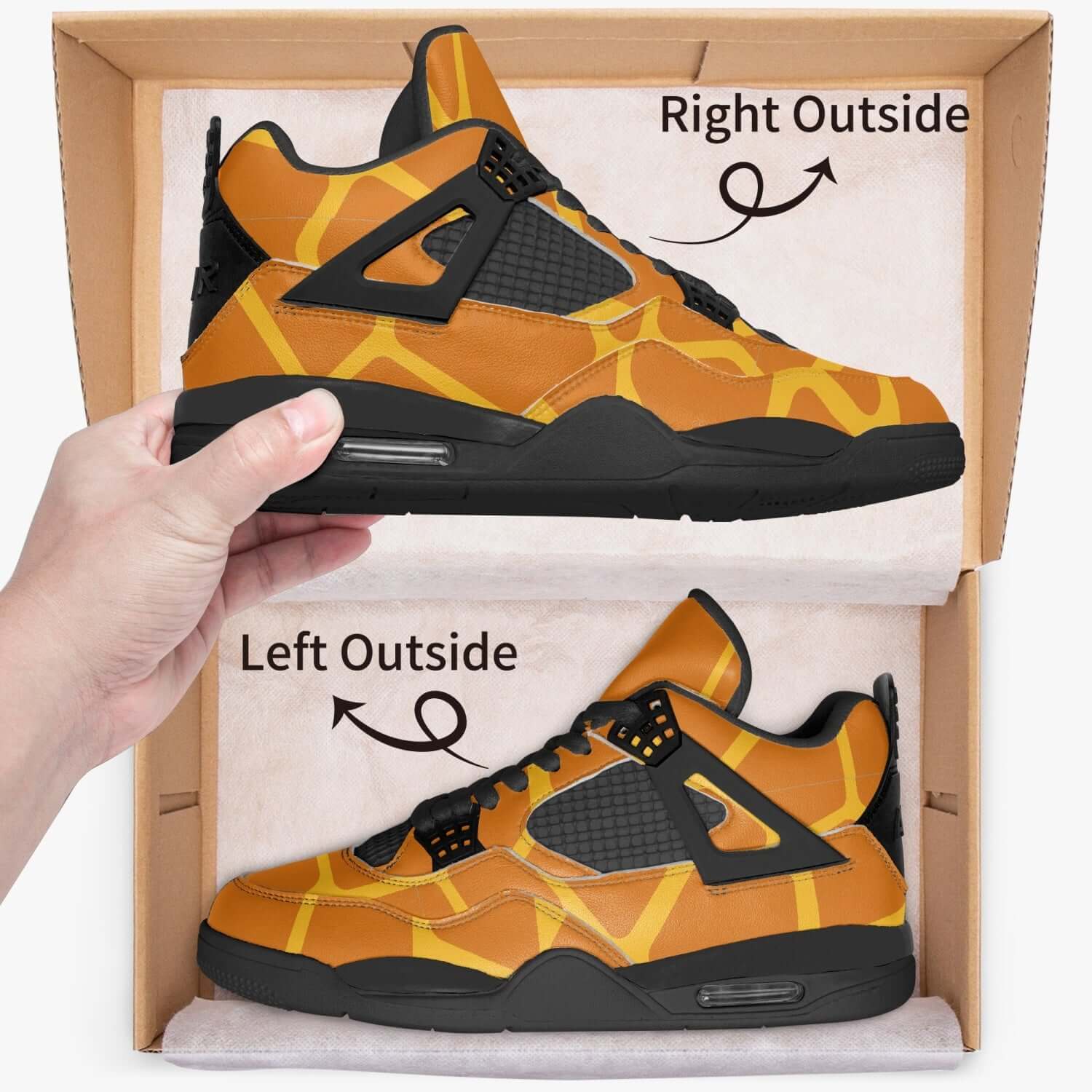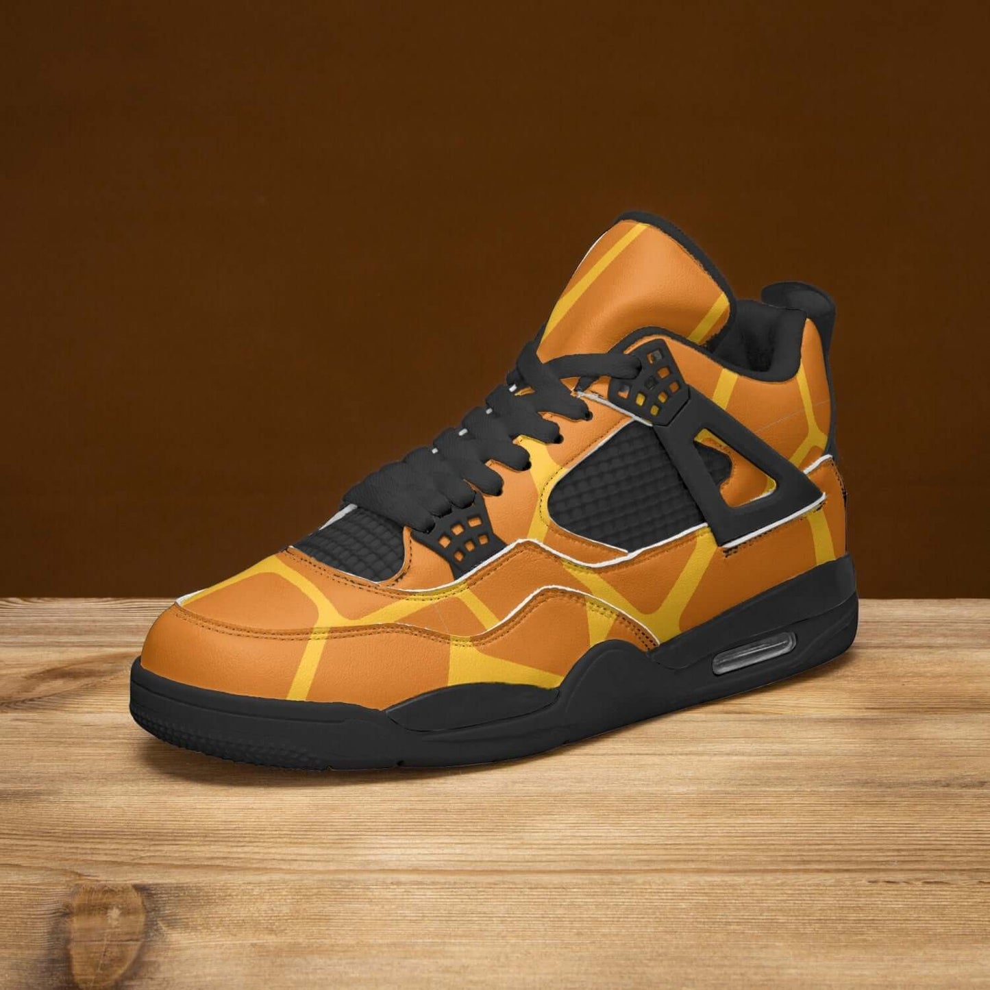 Expertly crafted with the unique style of the AJ4 design, these Giraffe Sneakers feature a bold combination of brown and yellow colorways. Made with high-quality materials, these sneakers offer both durability and eye-catching style. Perfect for any fashion-forward individual looking to make a statement.