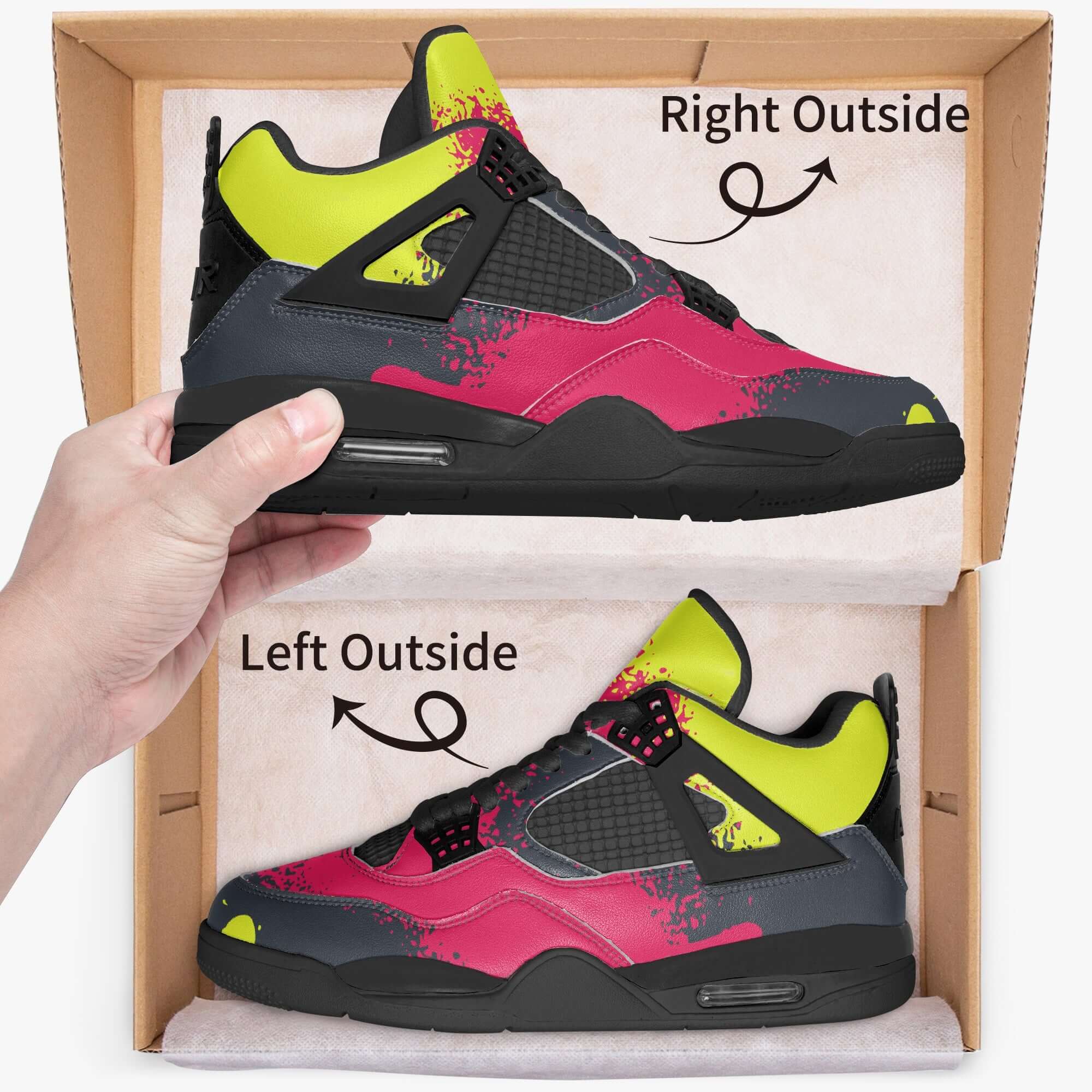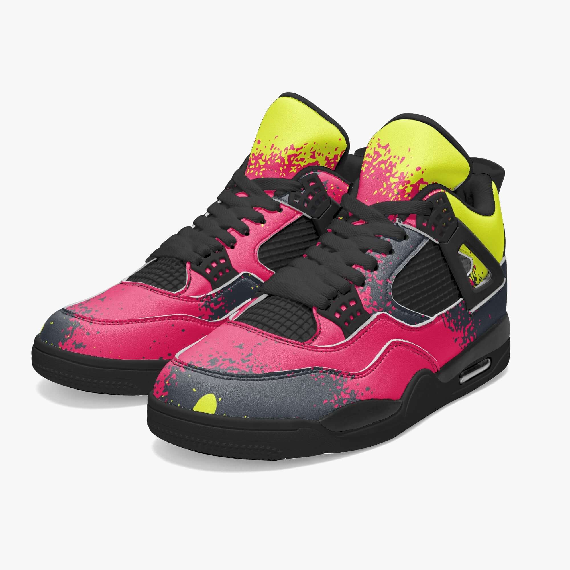 Step up your sneaker game with our Graffiti Spray Sneakers. Featuring the iconic AJ4 Style in bold red, black, and yellow colors, these shoes are sure to turn heads. With their unique graffiti spray design and comfortable fit, these sneakers are perfect for anyone looking to make a statement while still staying on-trend. Elevate your style with these must-have sneakers.