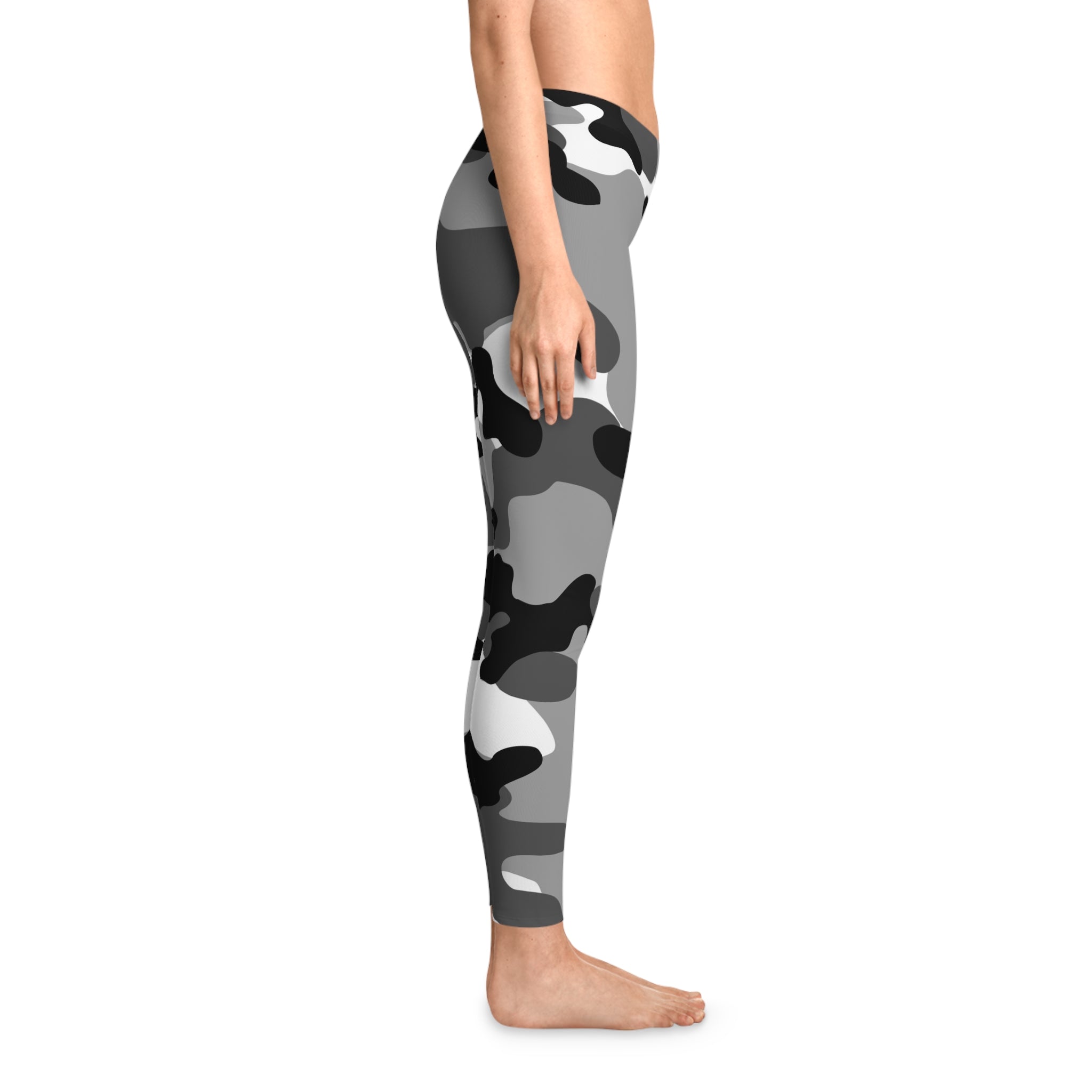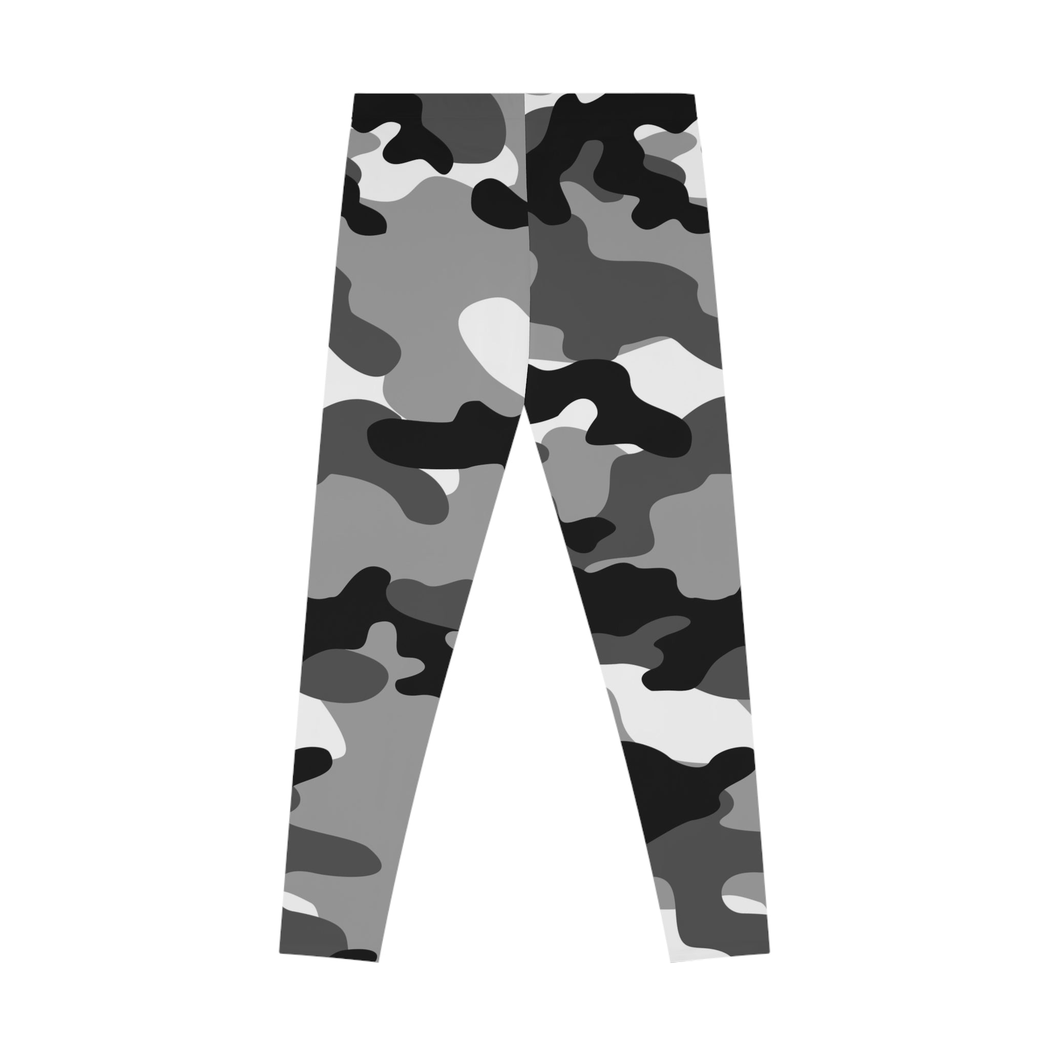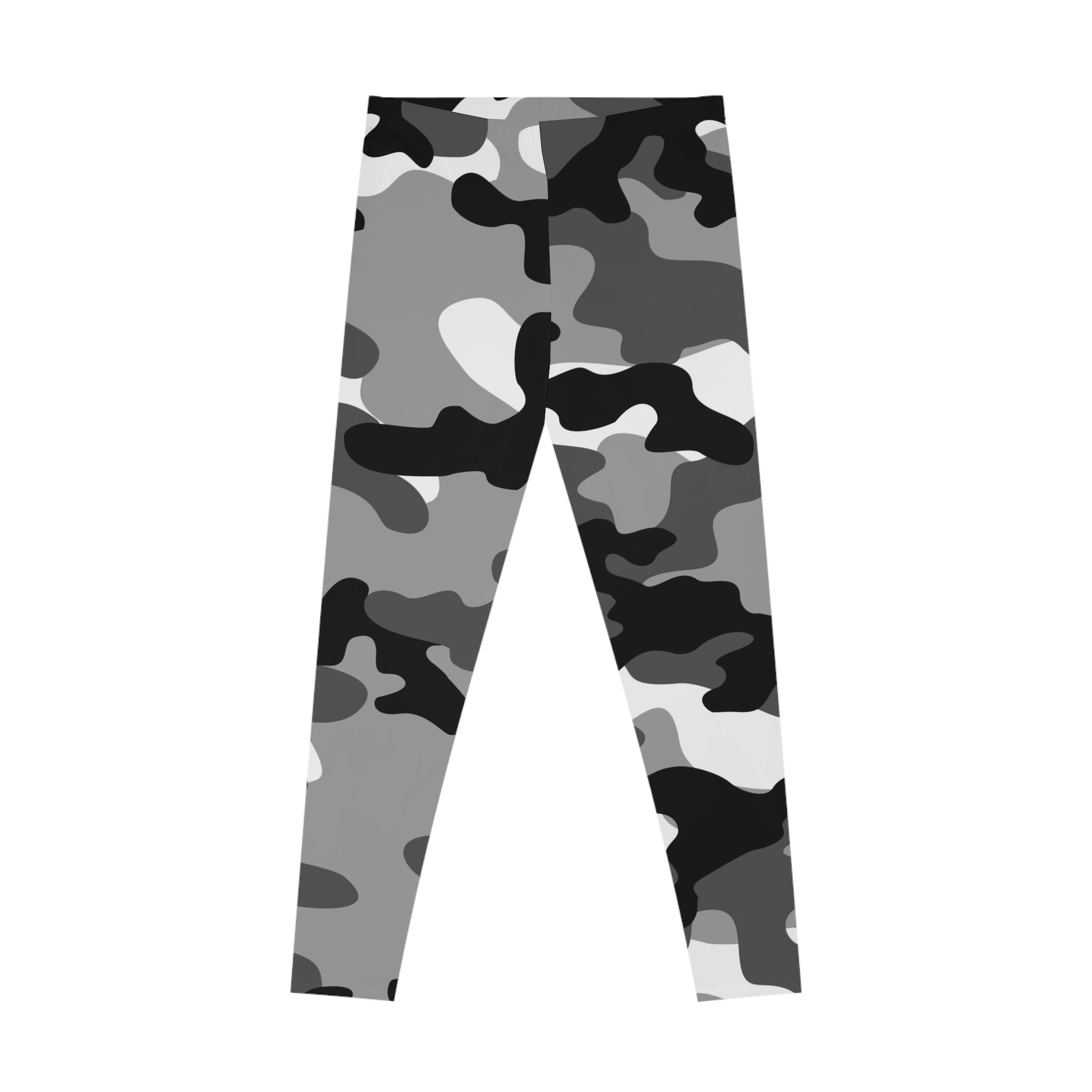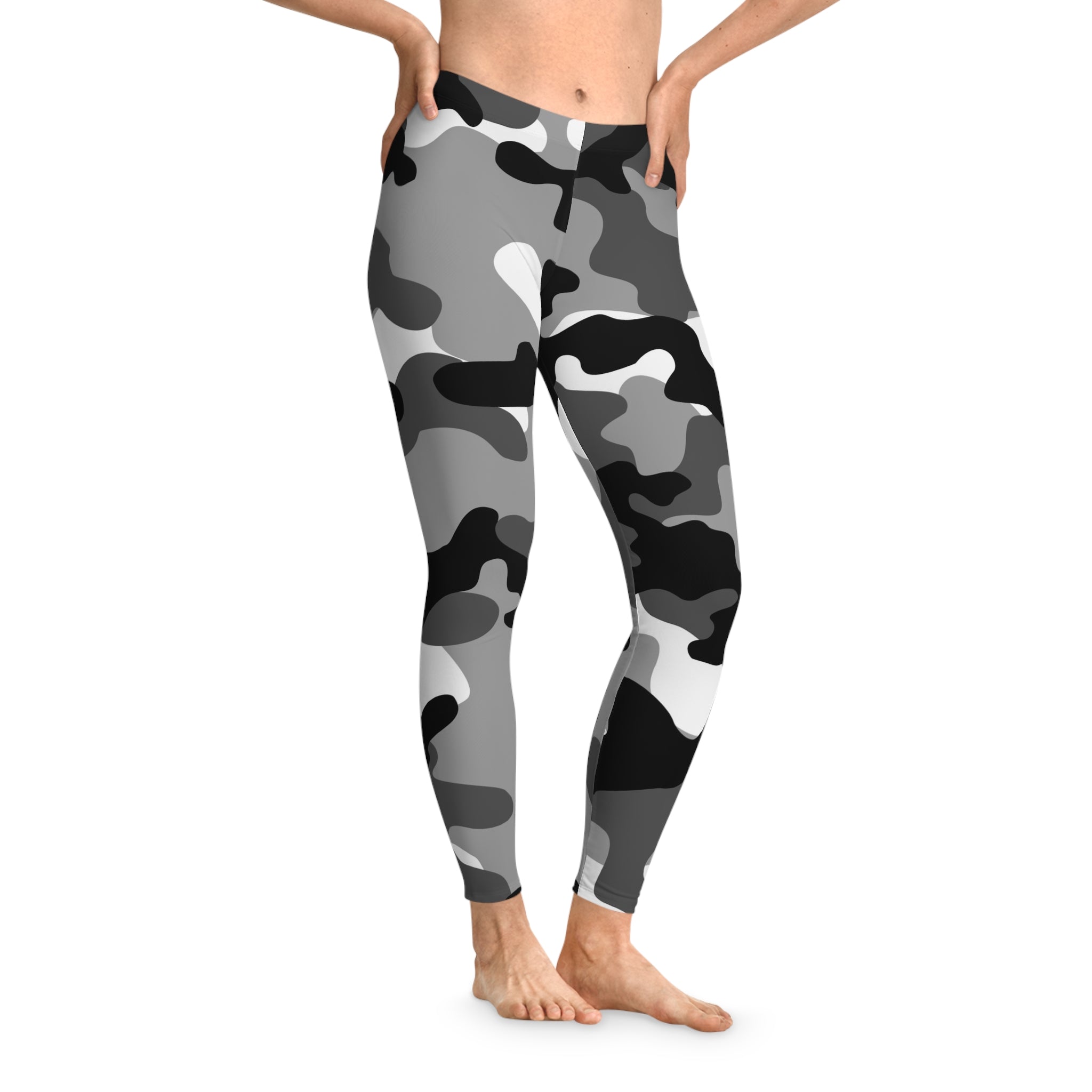Upgrade your workout wardrobe with our Gray, Black, and White Camo Leggings for Women. Made with durable, camo-print fabric, these leggings provide both comfort and style. Perfect for any active lifestyle, these leggings are sure to make a statement while keeping you supported and trendy.