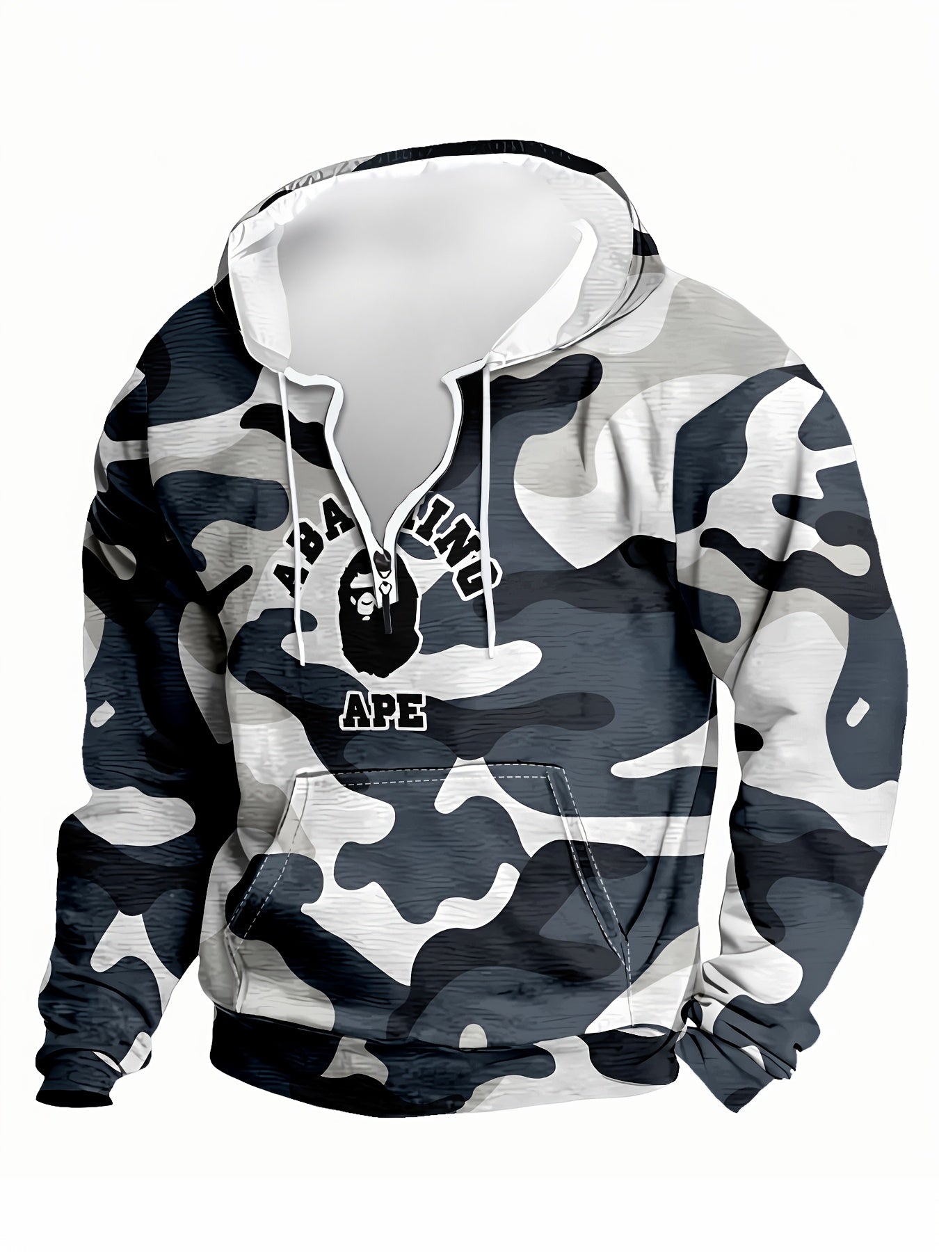 Expertly crafted for comfort and style, our Gray Camo Hoodie for Men features a convenient front zipper, perfect for layering on chilly days. Made from a lightweight, breathable fabric with a slight stretch, it's ideal for casual or outdoor activities. Hand wash or dry clean for best results.